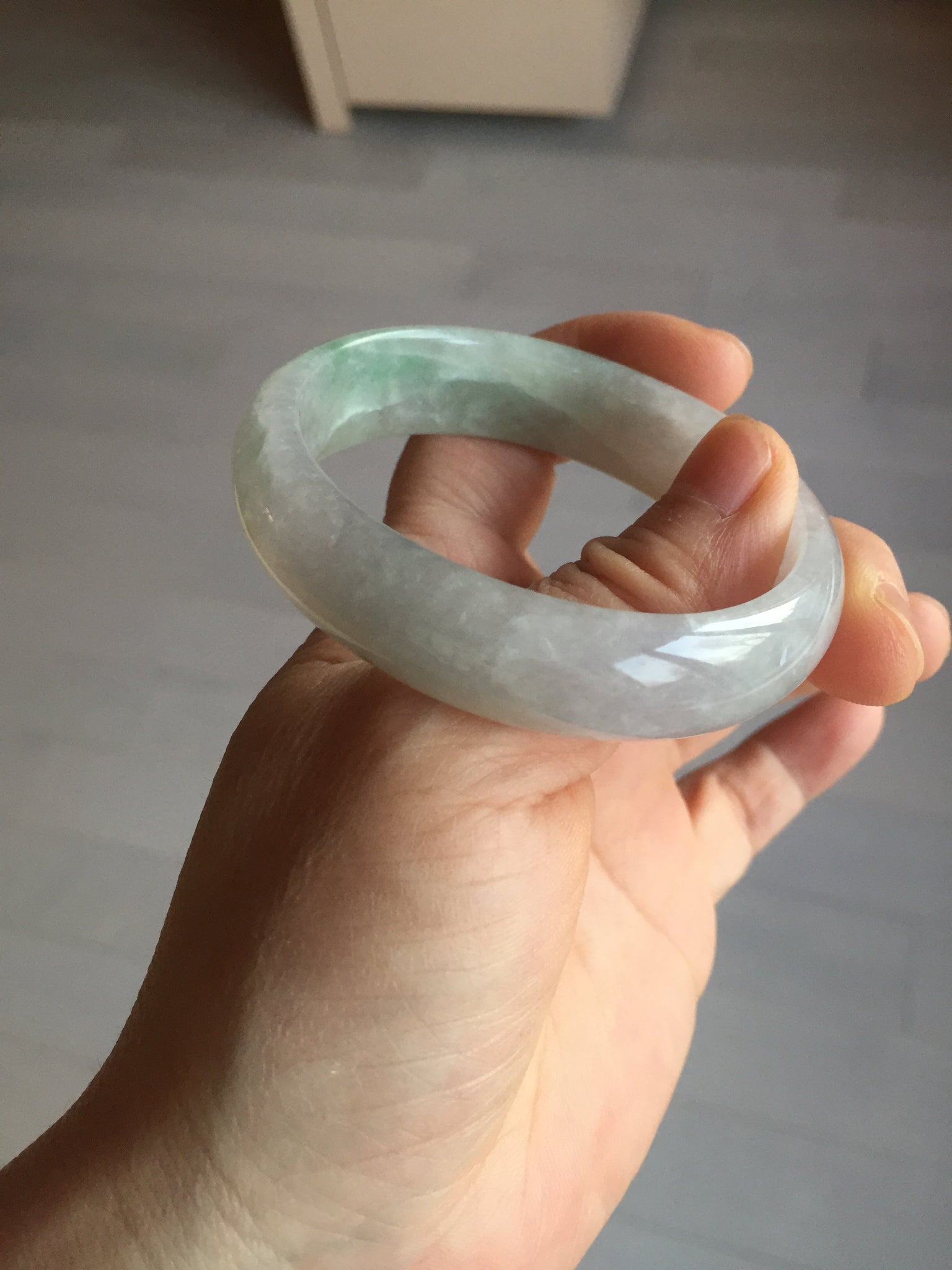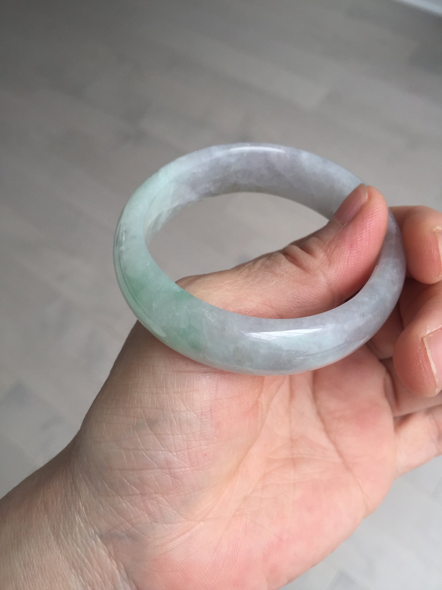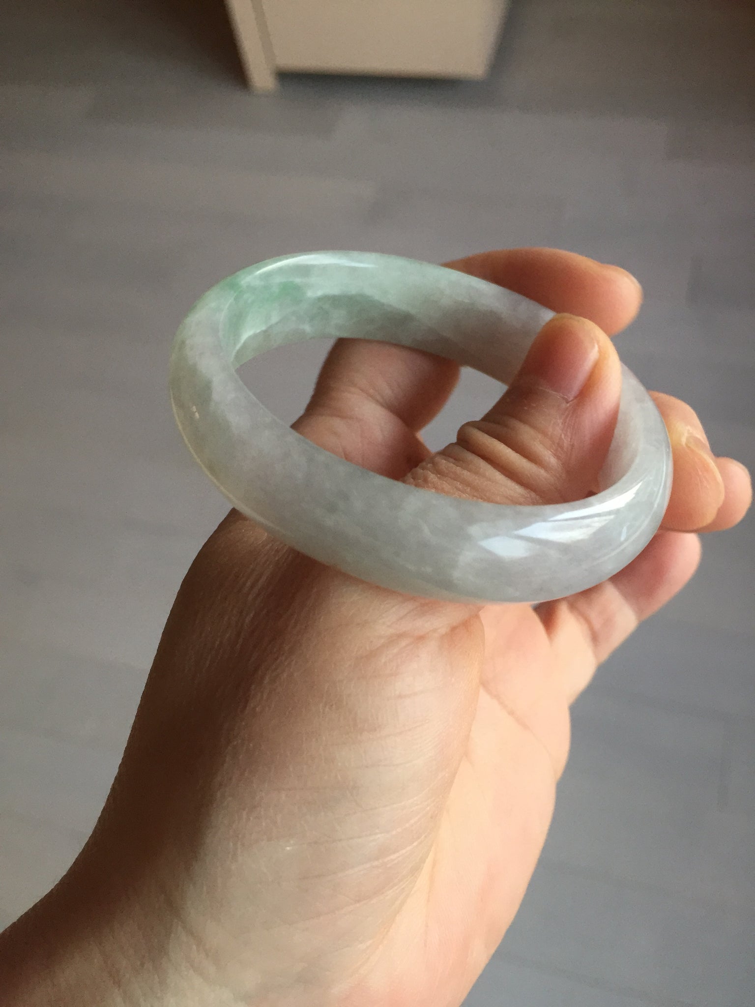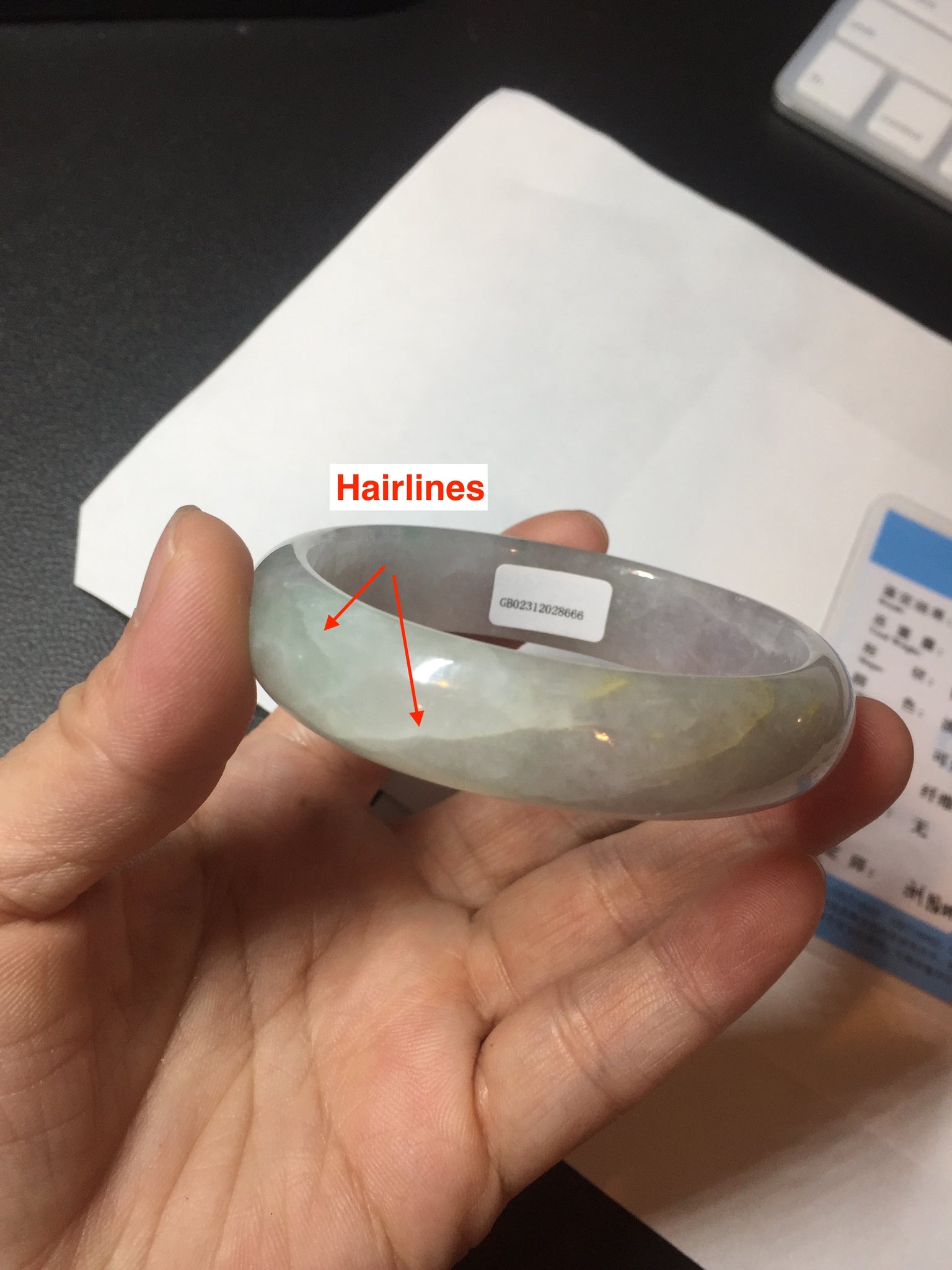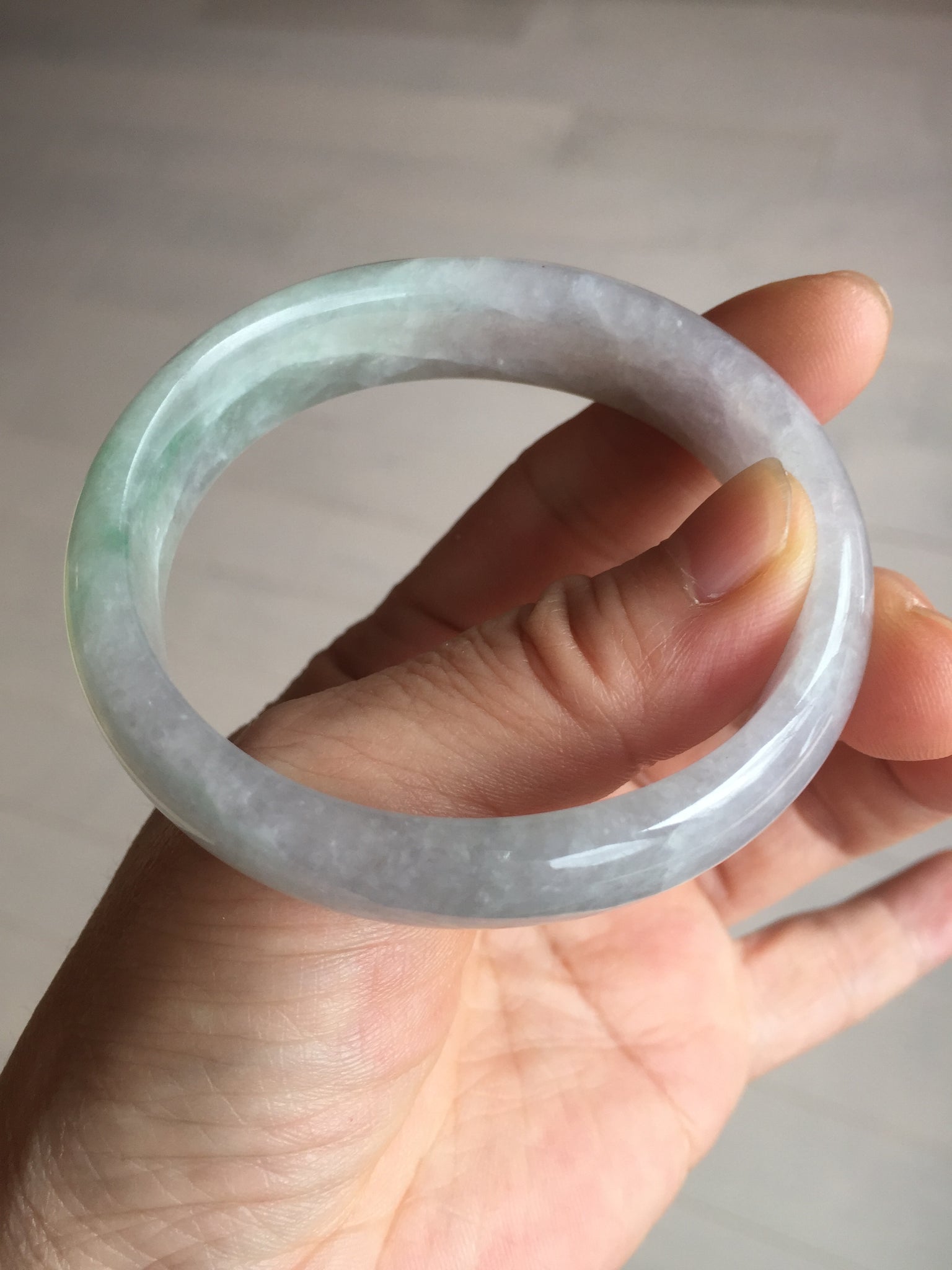 Some cracks and the bangle is solid (guaranteed!). Some hairlines or cotton lines, cotton spots, and cotton areas. The purple is lighter than in the photos due to the purple color always being more camera-friendly.