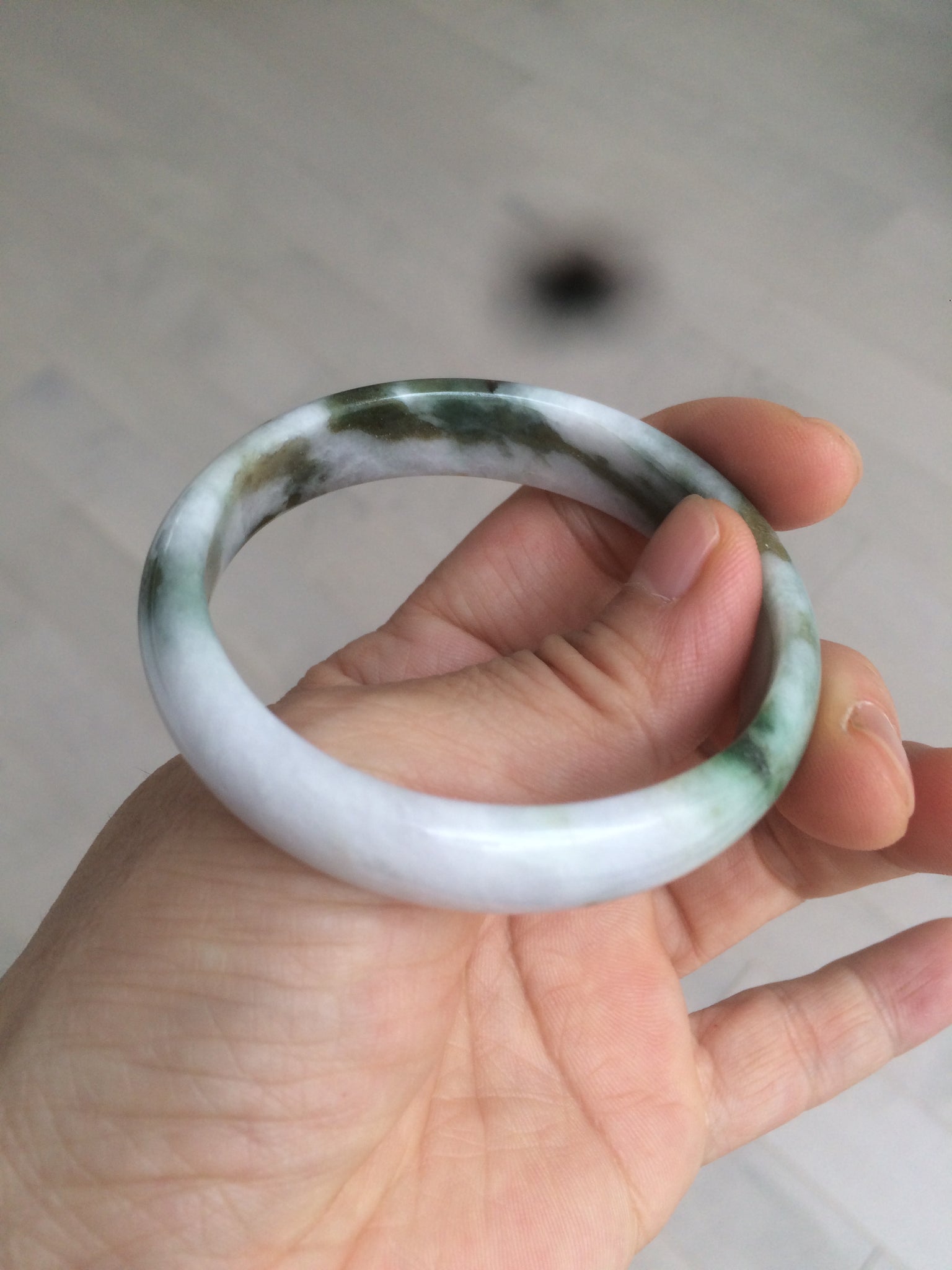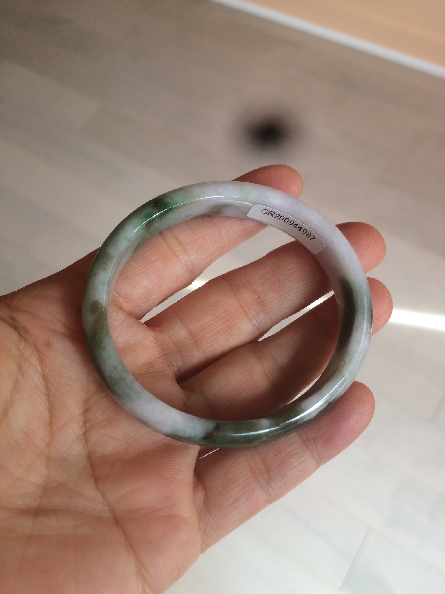 50mm Certified Type A 100% Natural sunny green purple brown oval shape Jadeite Jade bangle AM12-4987