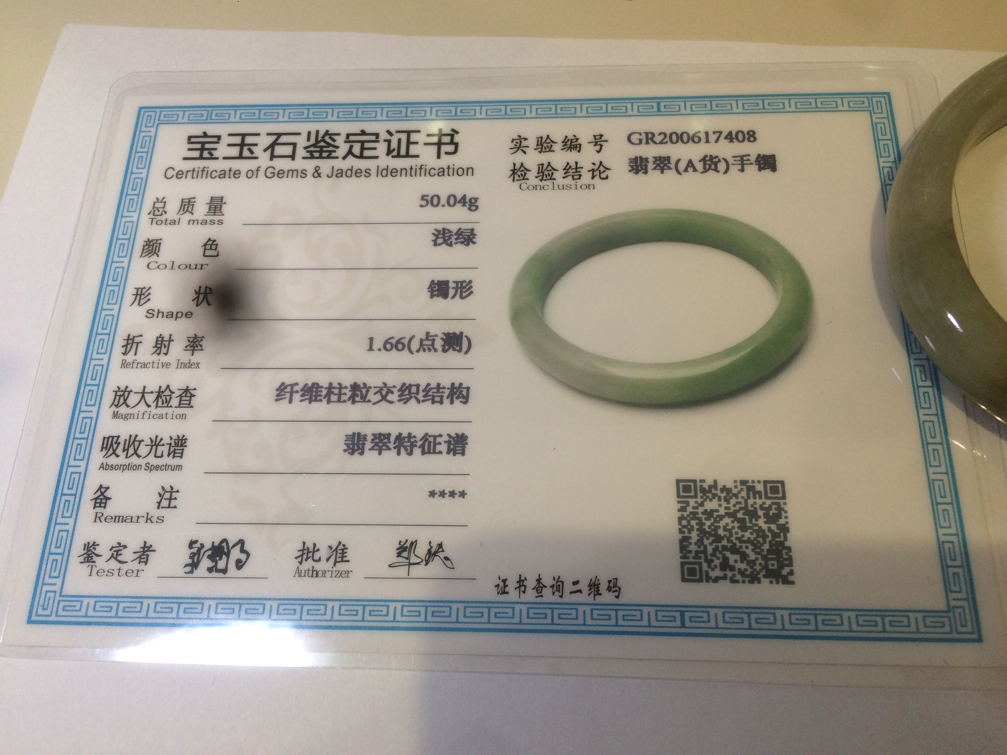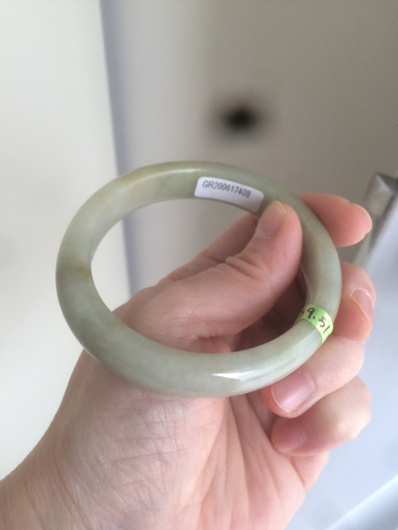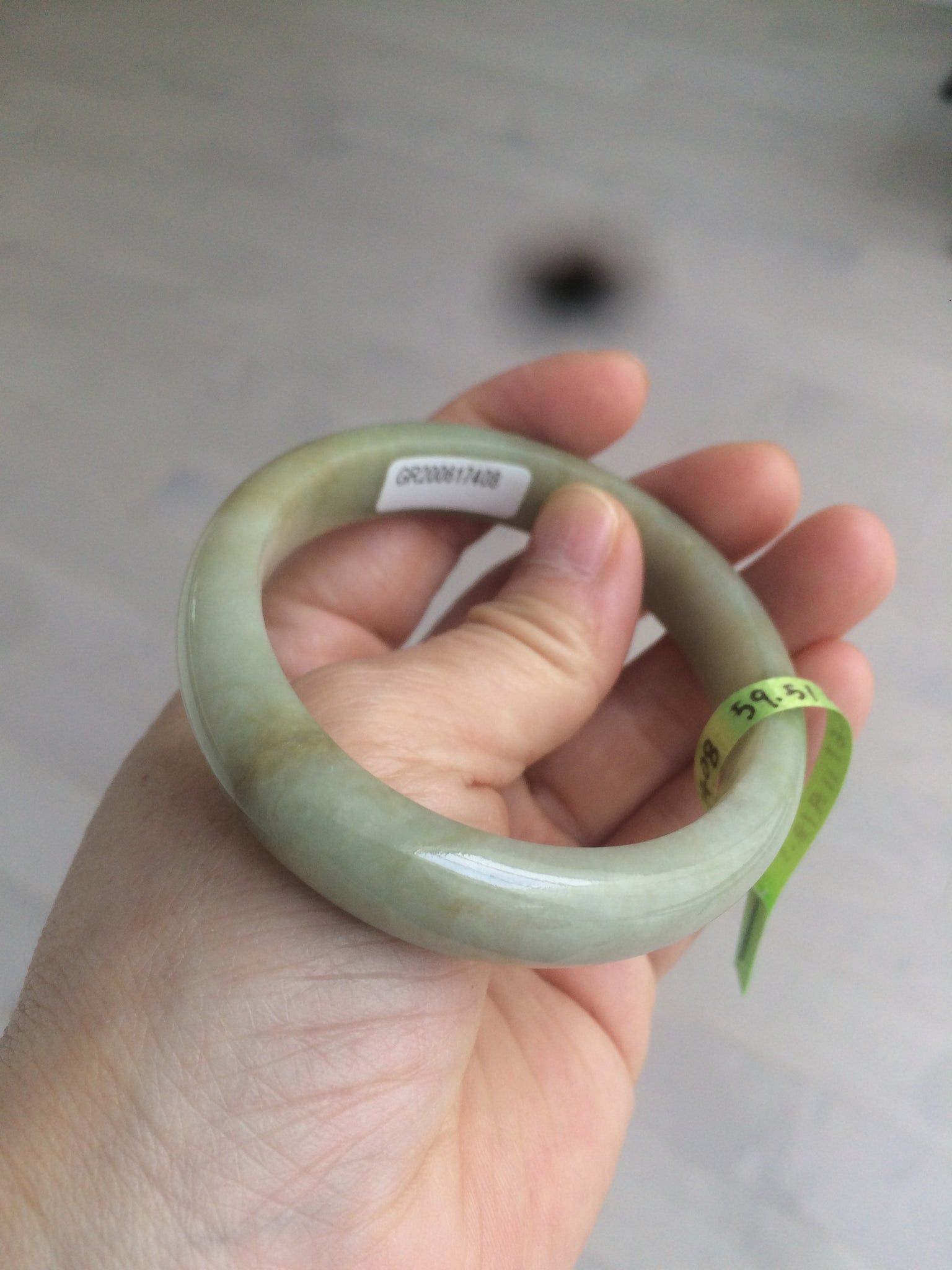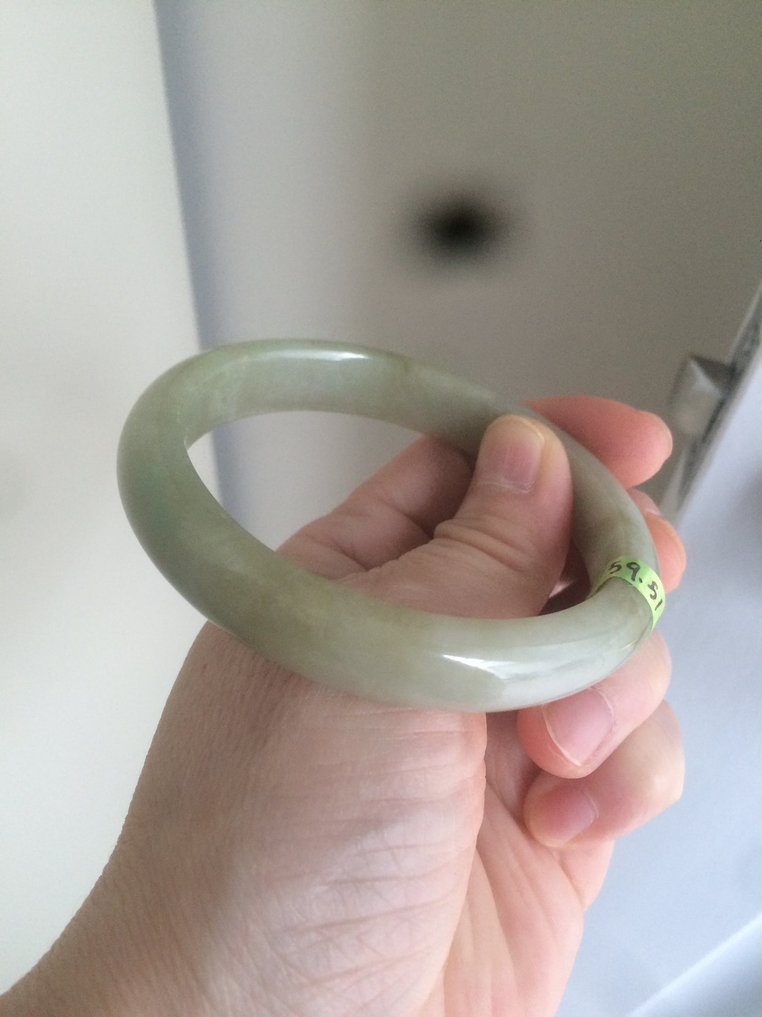 One surface scratch crack. one tiny surface scratch. Won't influence the firmness. 水汪汪的瓜油青翡翠手镯.