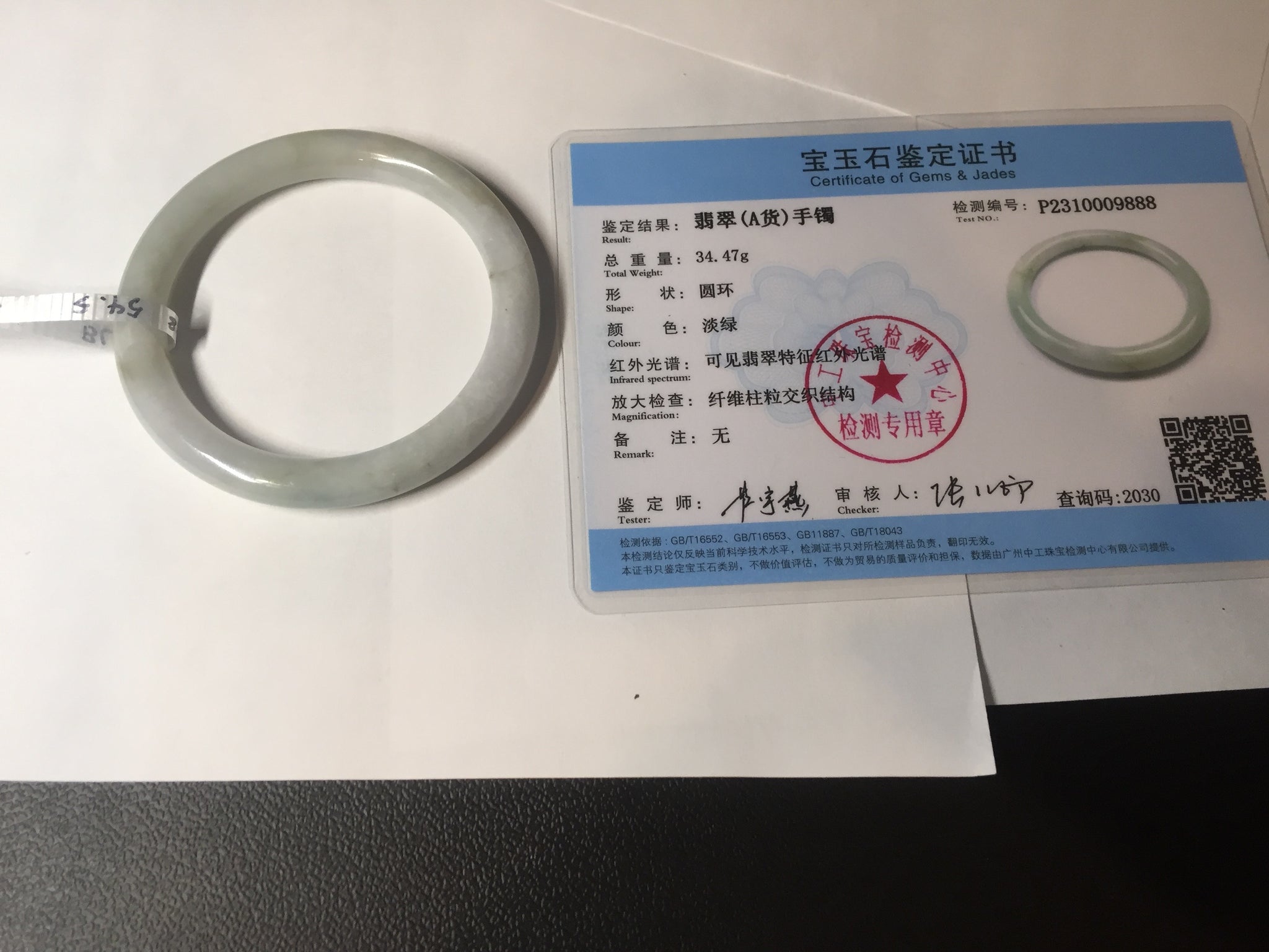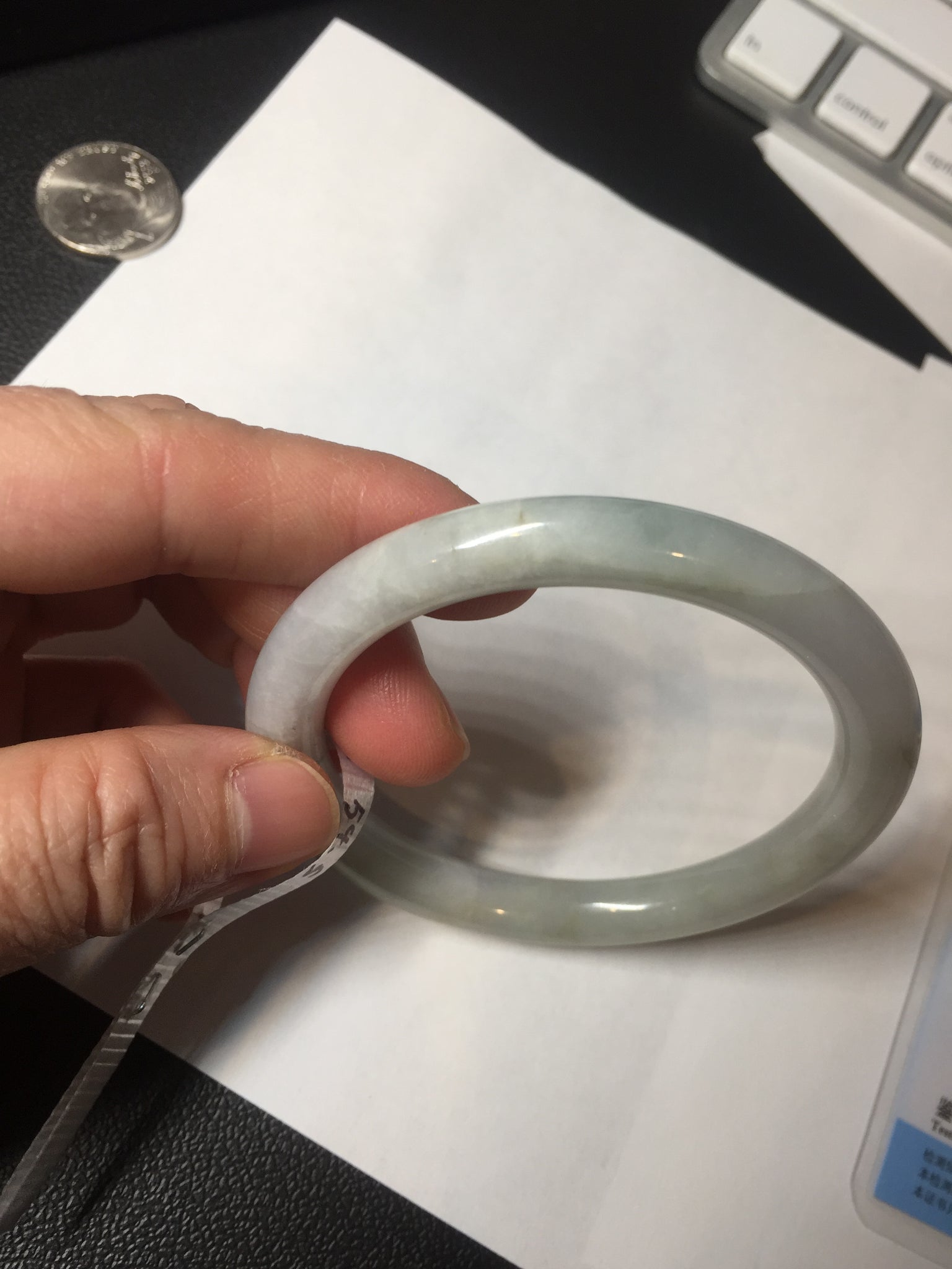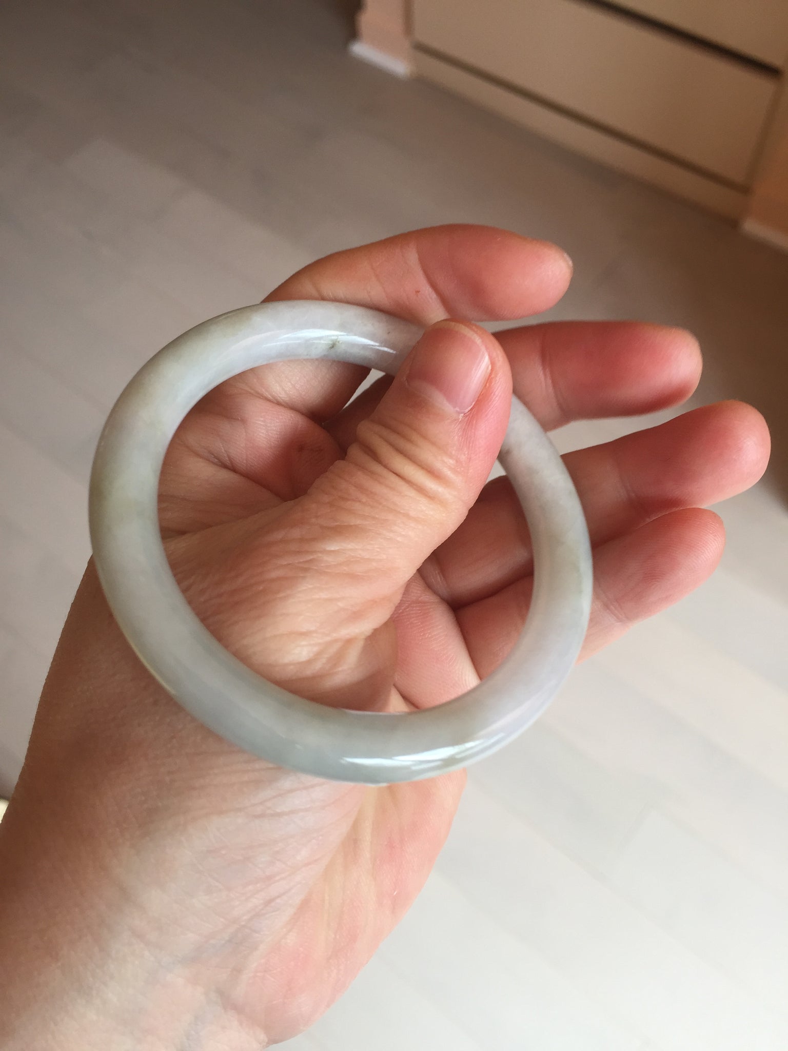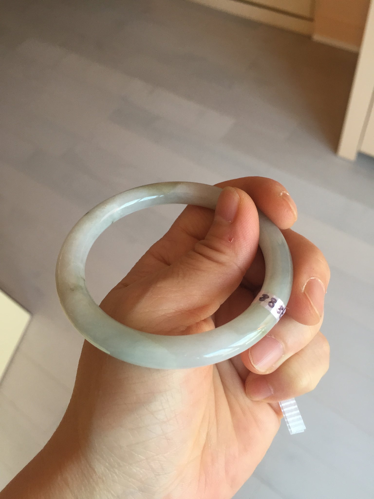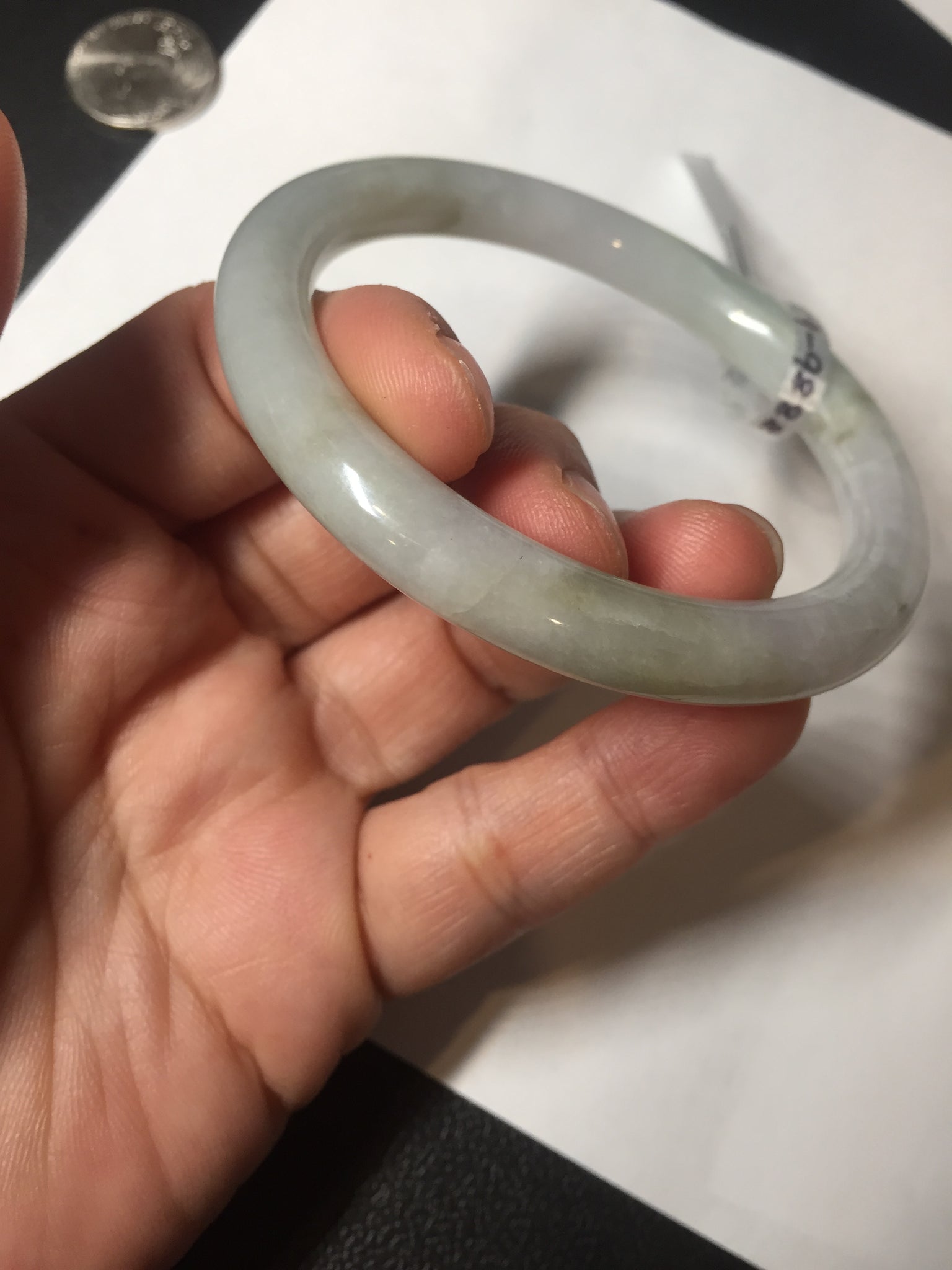 Some surface cracks and hairlines. The bangle is solid and it makes a high-pitched sound when clicked. Cotton spot and cotton lines. It has some gray color.