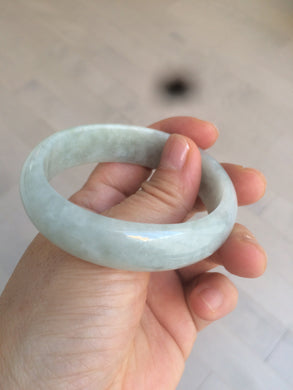 52.5 mm Certified Type A 100% Natural light green/gray Jadeite Jade oval bangle AZ70-0363