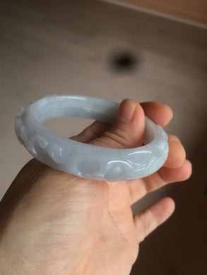 51mm Certified Type A 100% Natural light purple white vintage style Jadeite Jade oval bangle AM38-0157