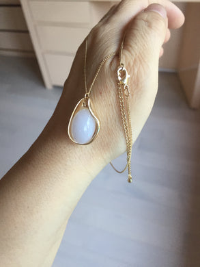 100% natural Type A white light purple Jadeite pendant and Faux Pearl Necklace PD168