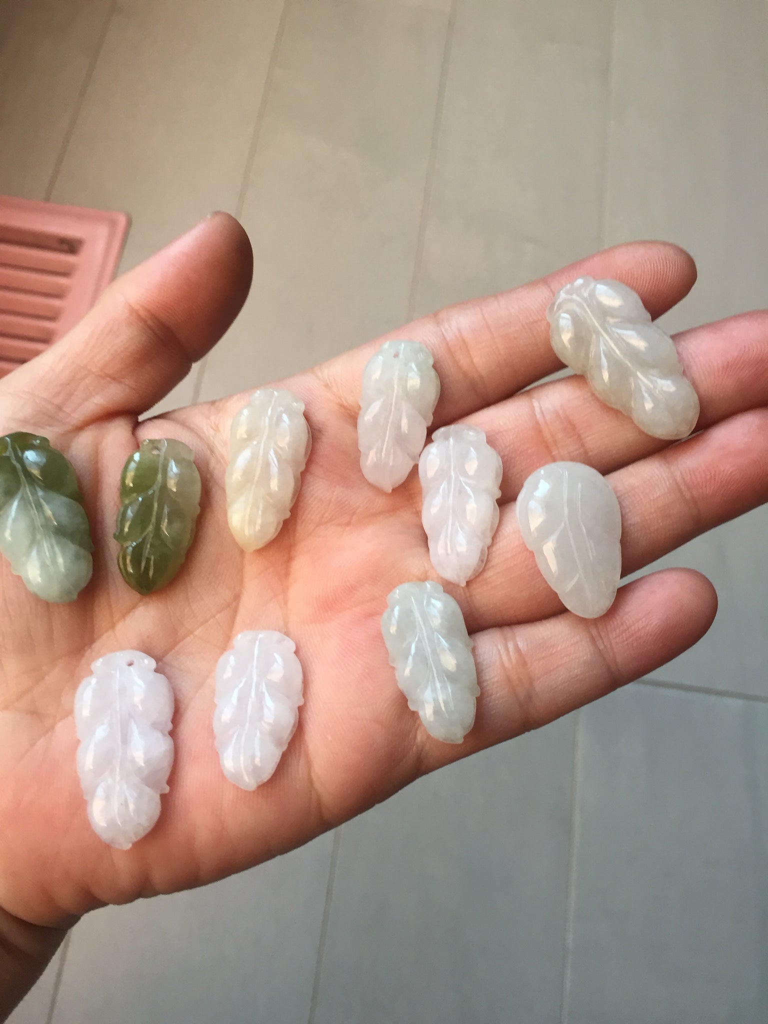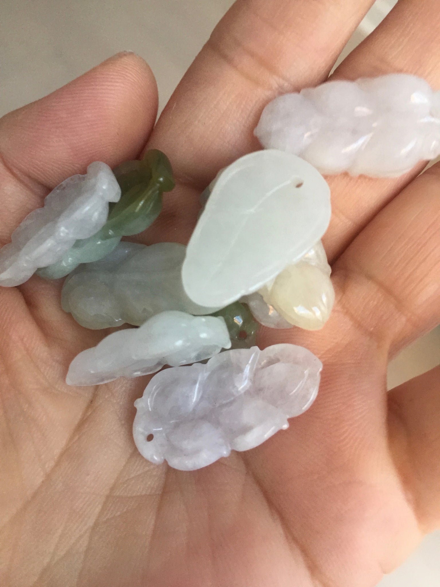 100% natural type A icy watery white purple green jadeite jade  leaf pendant group F157