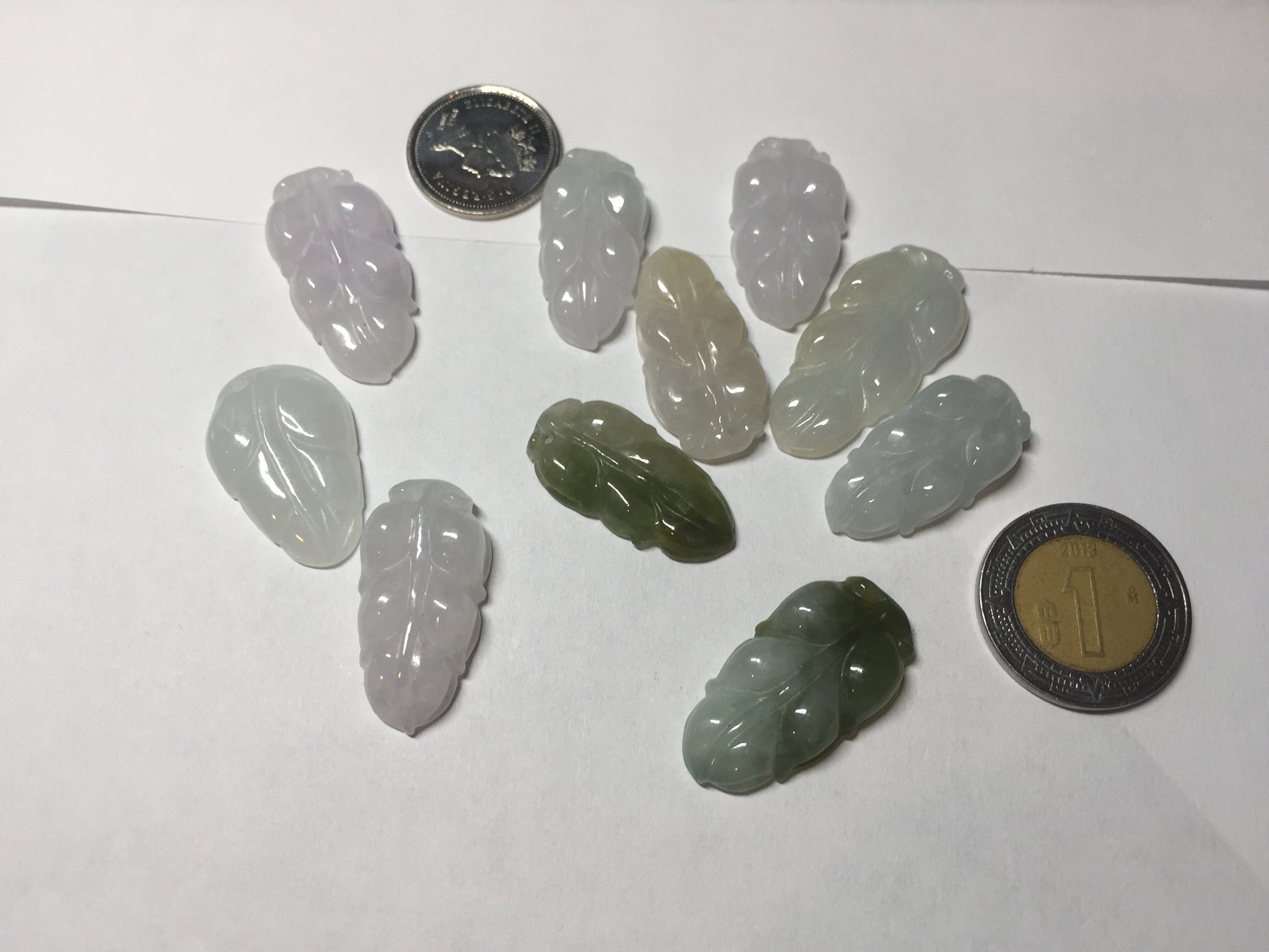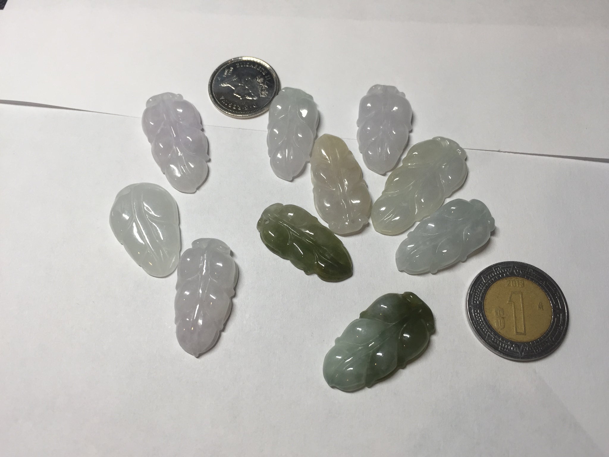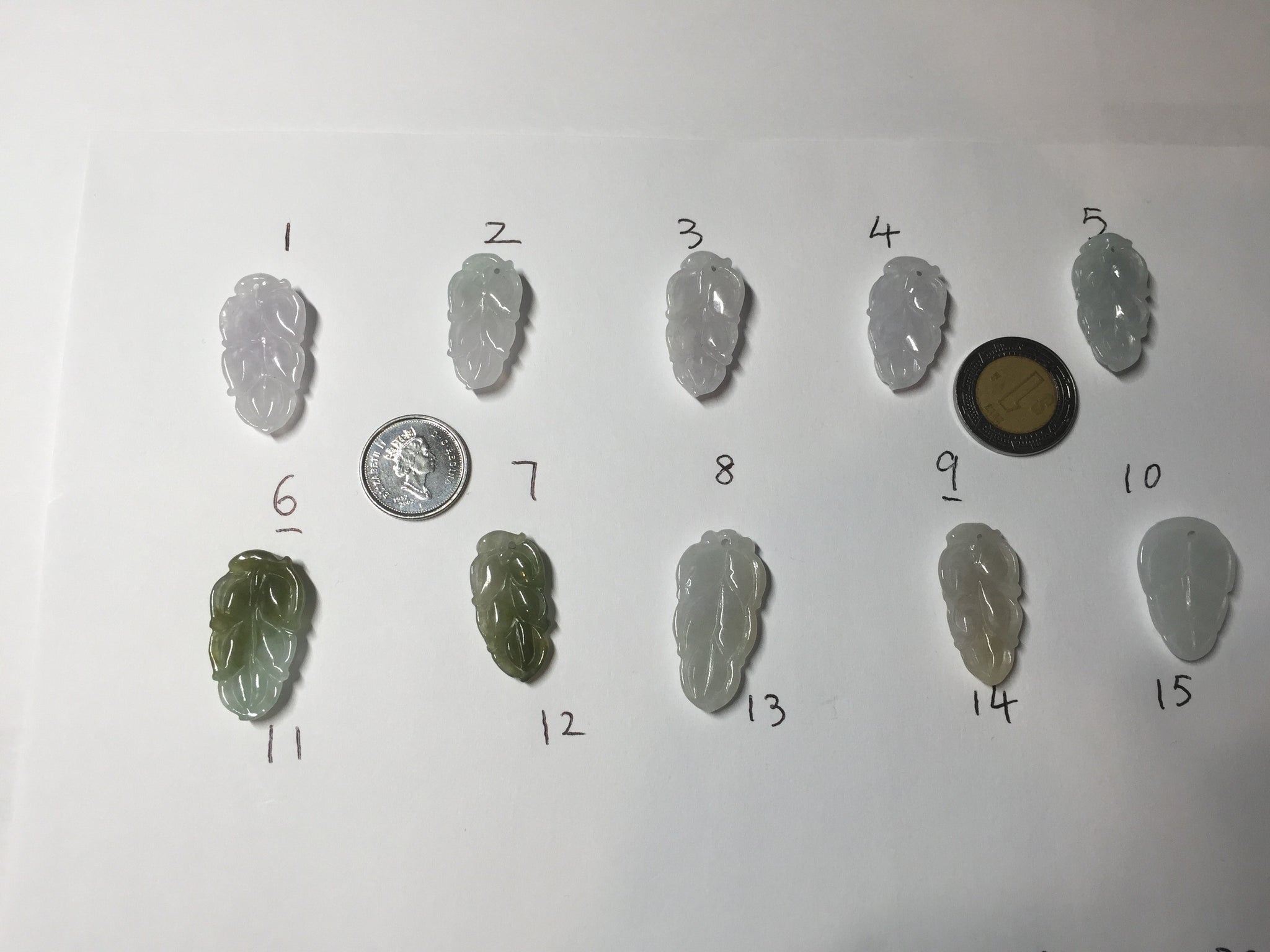 100% natural type A icy watery white purple green jadeite jade leaf pendant group F157