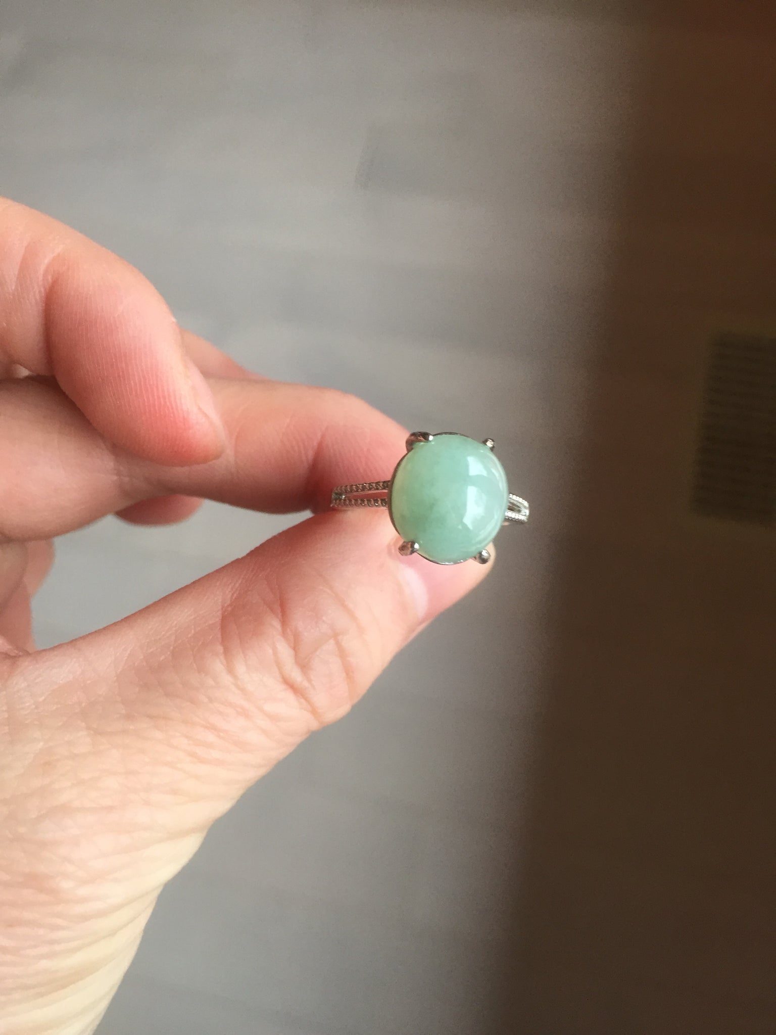Note: its base (the part that sits on the ring setting) may not match the shape of the ring setting with 100% precision. As a result, in some areas, the jade may slightly extends beyond the setting, and in other areas, the setting may extend beyond the jade. Please don't order if you feel this is unacceptable. Thank you for your under standing.
