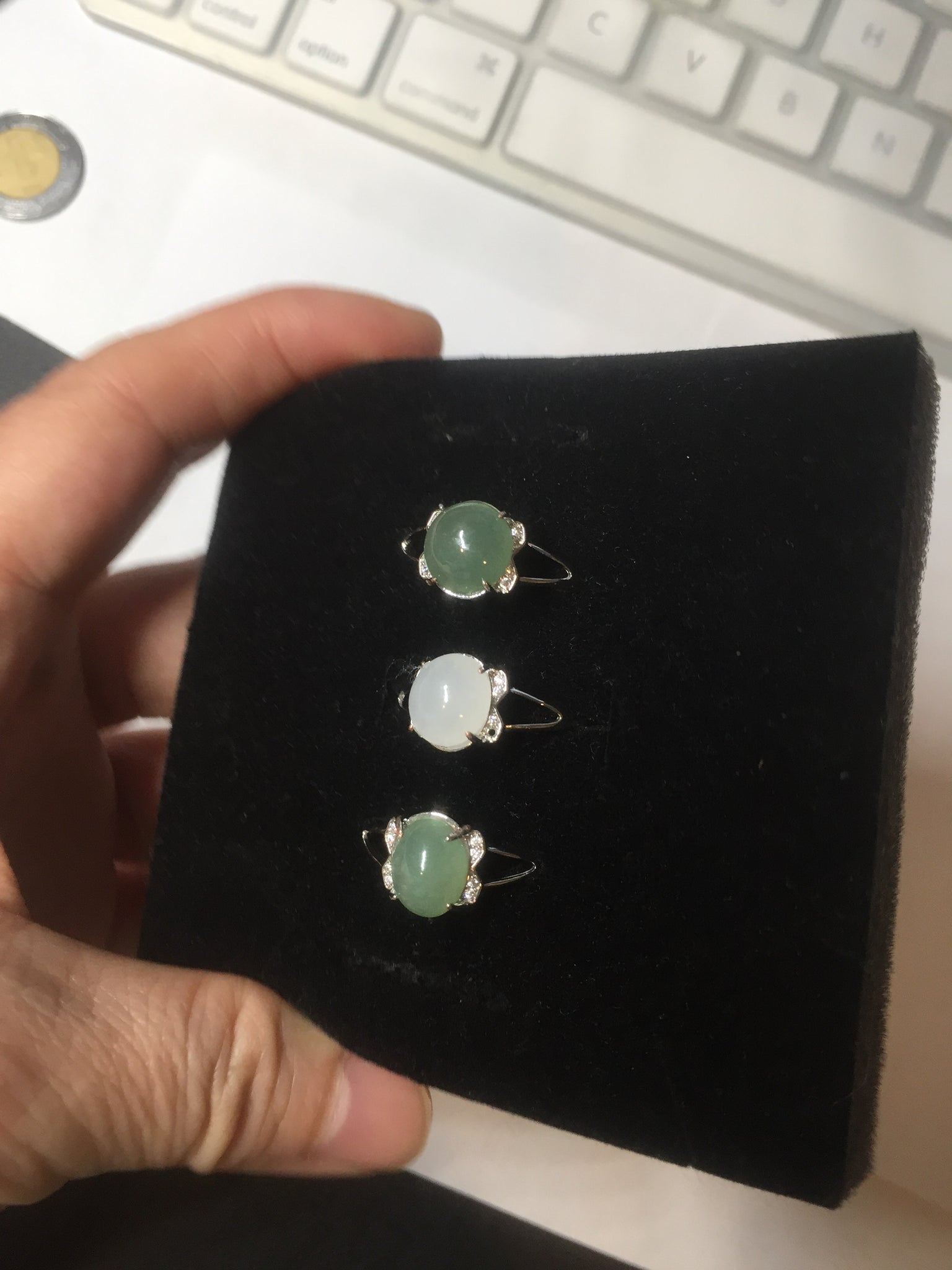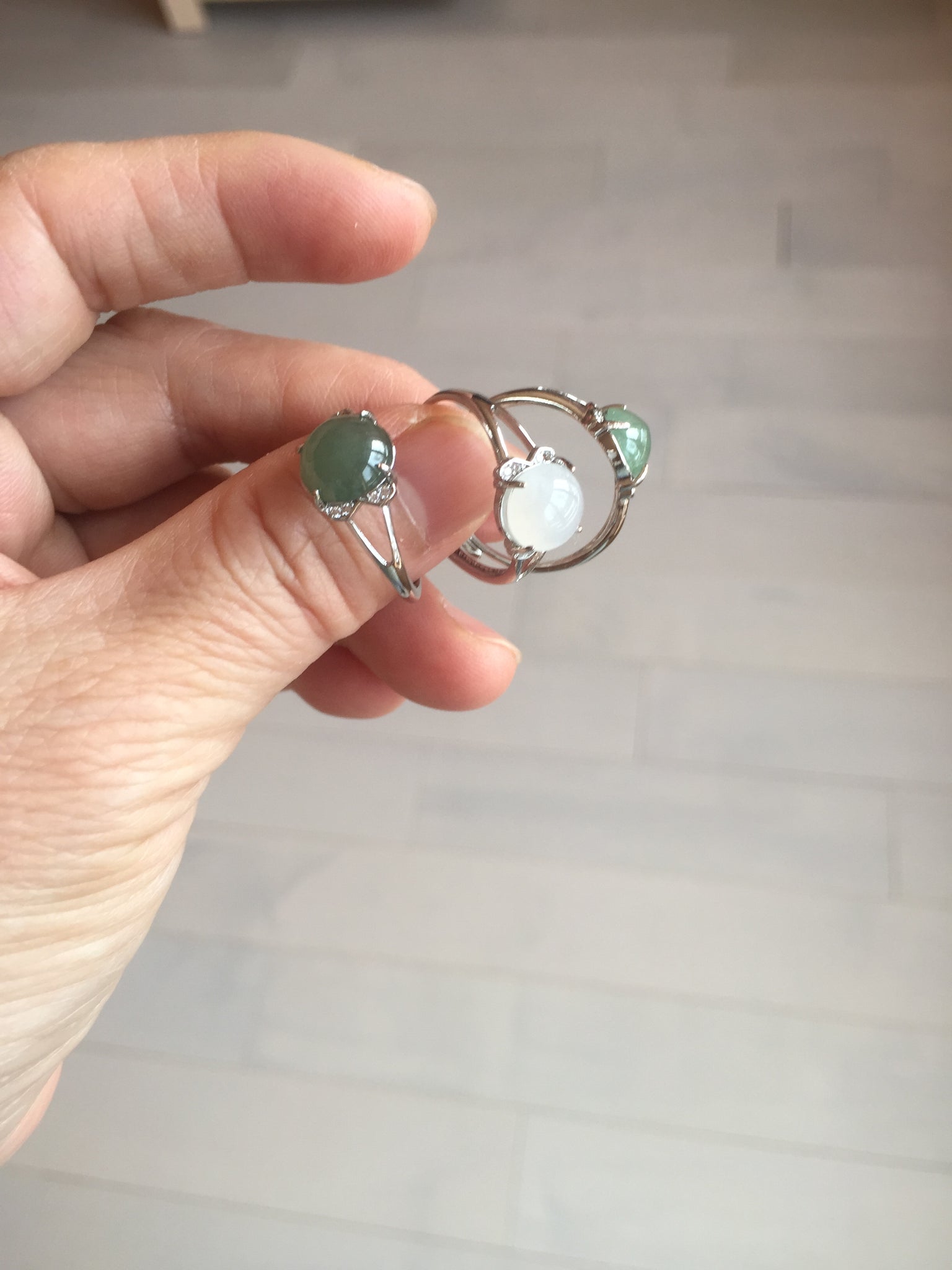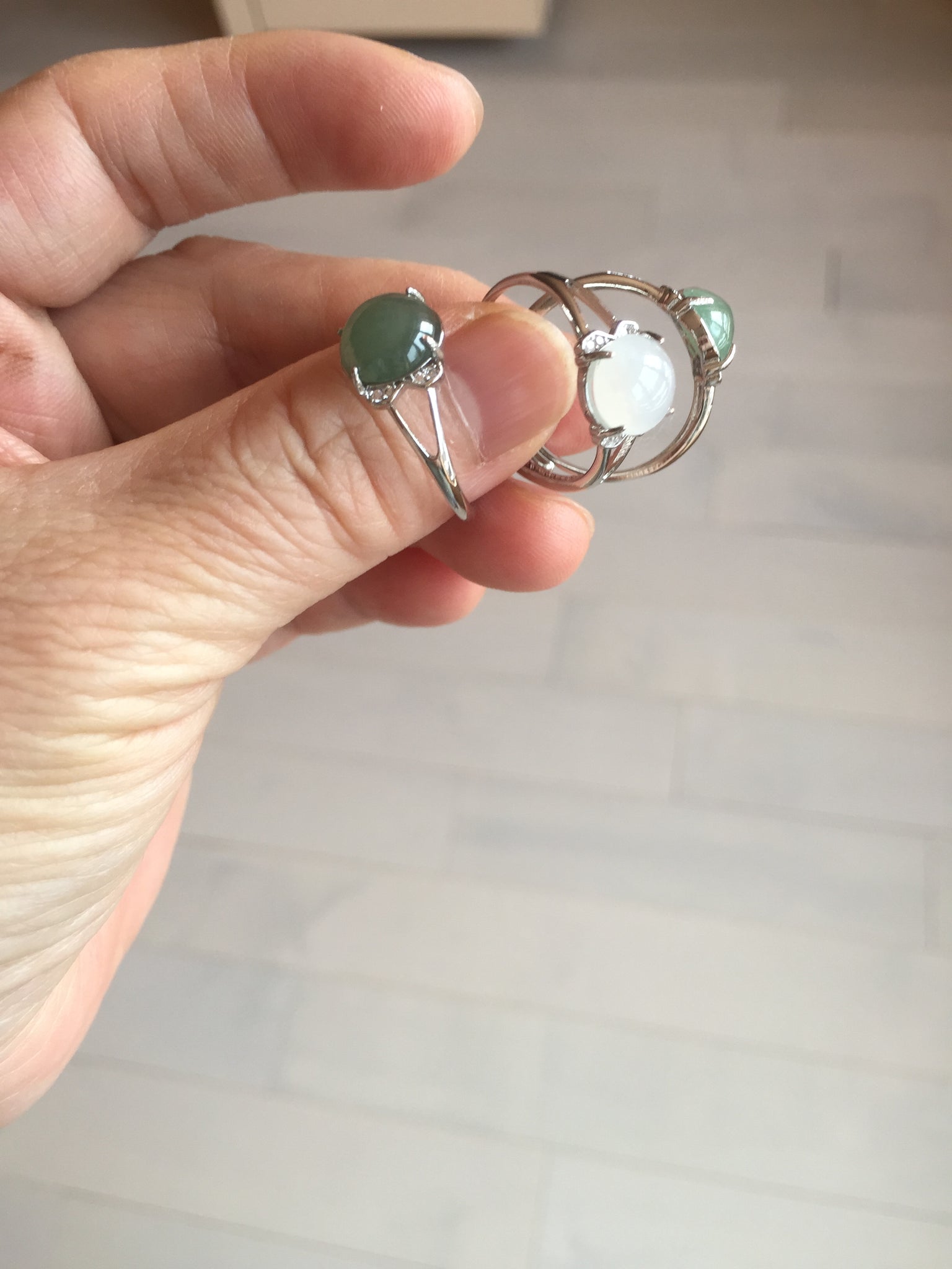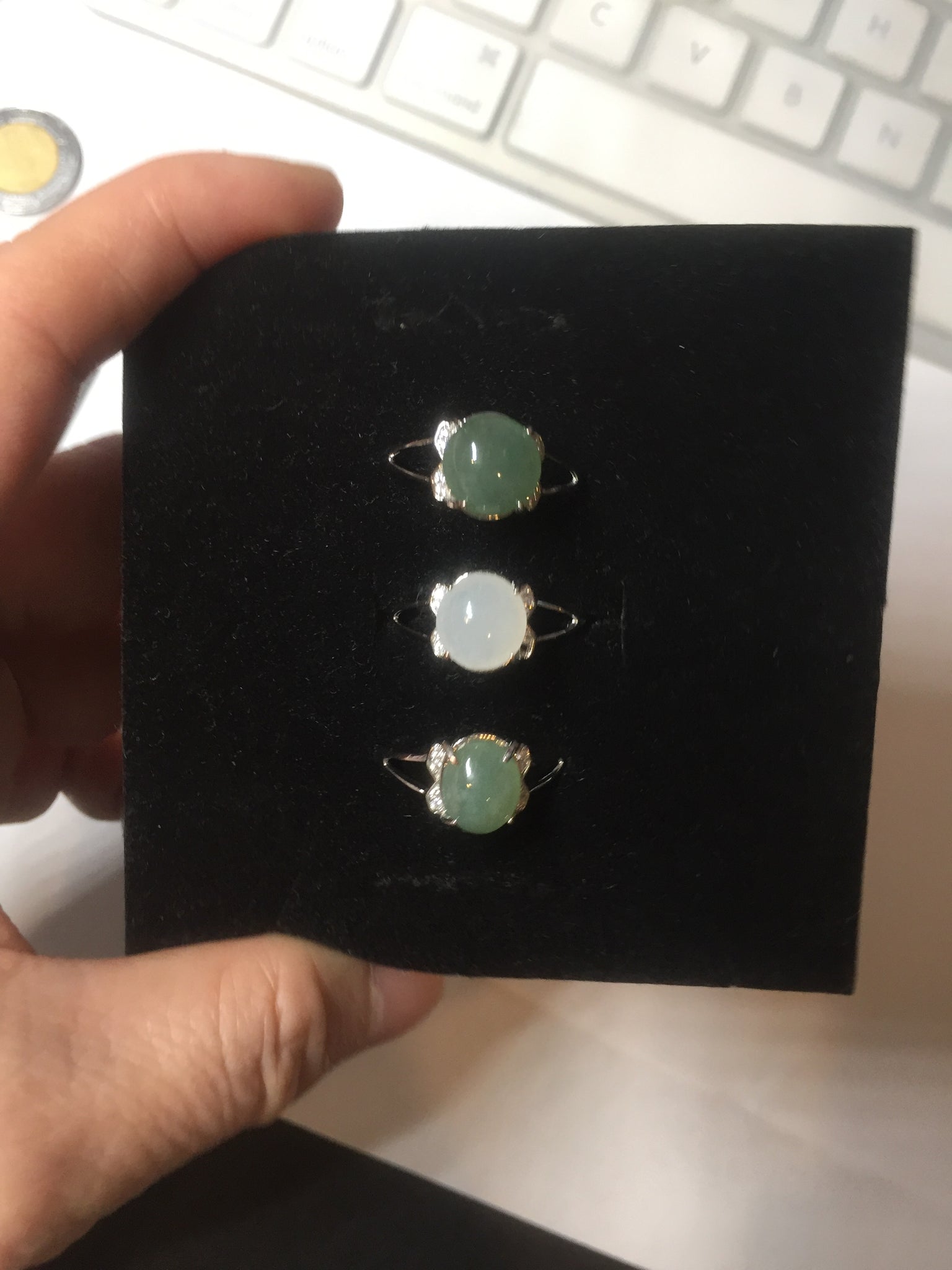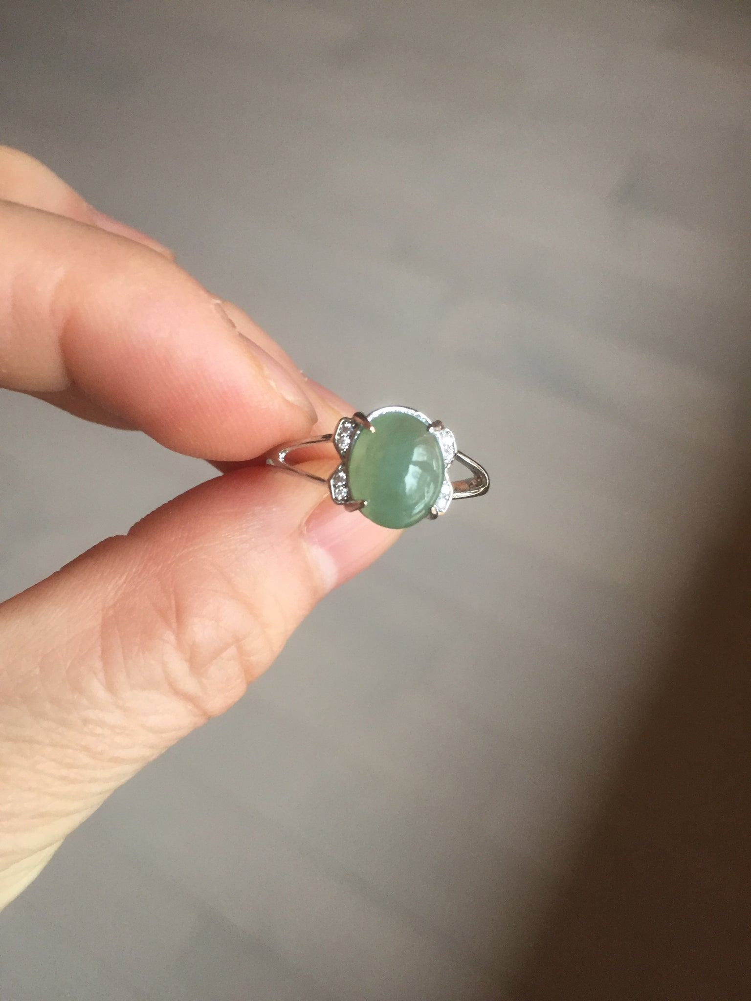 Note: its base (the part that sits on the ring setting) may not match the shape of the ring setting with 100% precision. As a result, in some areas, the jade may slightly extends beyond the setting, and in other areas, the setting may extend beyond the jade. Please don't order if you feel this is unacceptable. Thank you for your under standing.