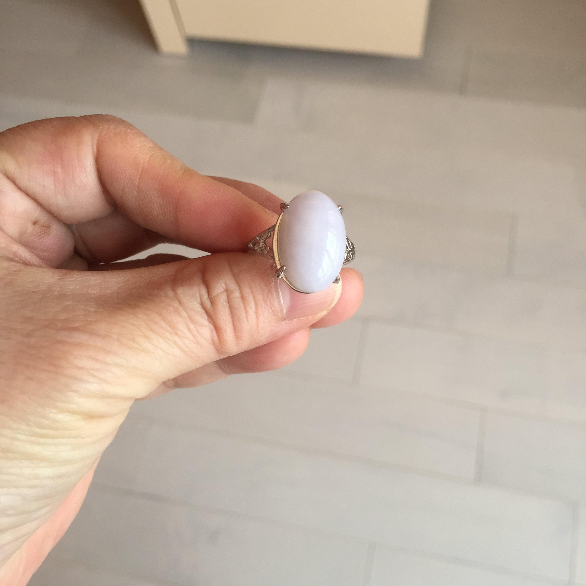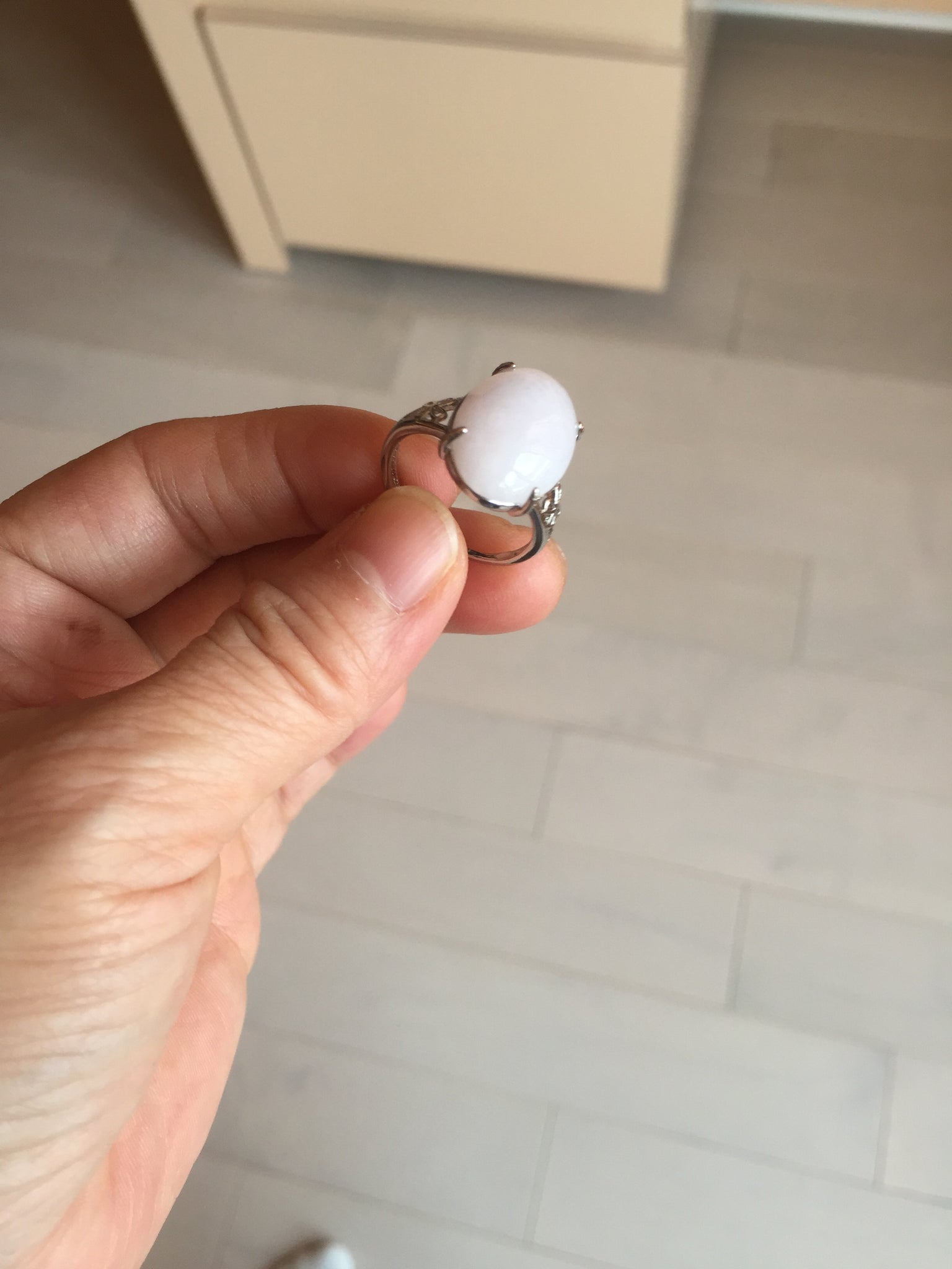 Ring metal base and arms: Alloy.Note: its base (the part that sits on the ring setting) may not match the shape of the ring setting with 100% precision. As a result, in some areas, the jade may slightly extends beyond the setting, and in other areas, the setting may extend beyond the jade. Please don't order if you feel this is unacceptable. Thank you for your under standing.
