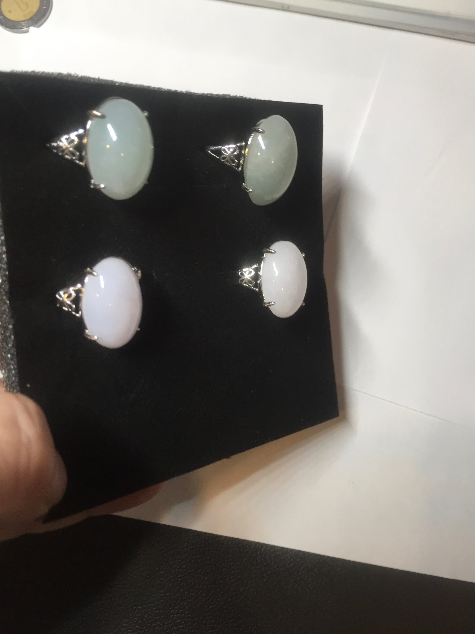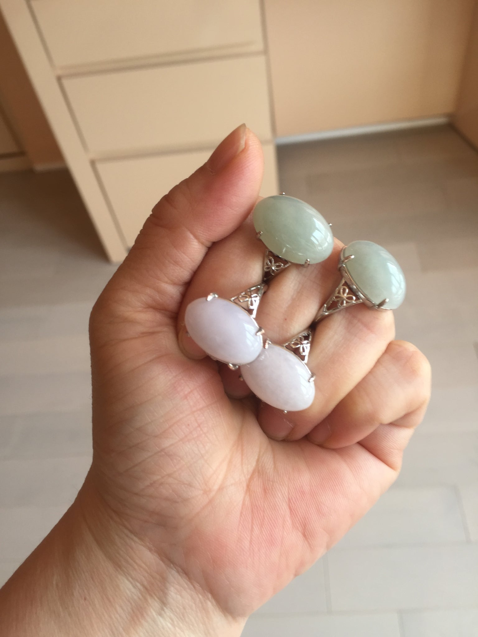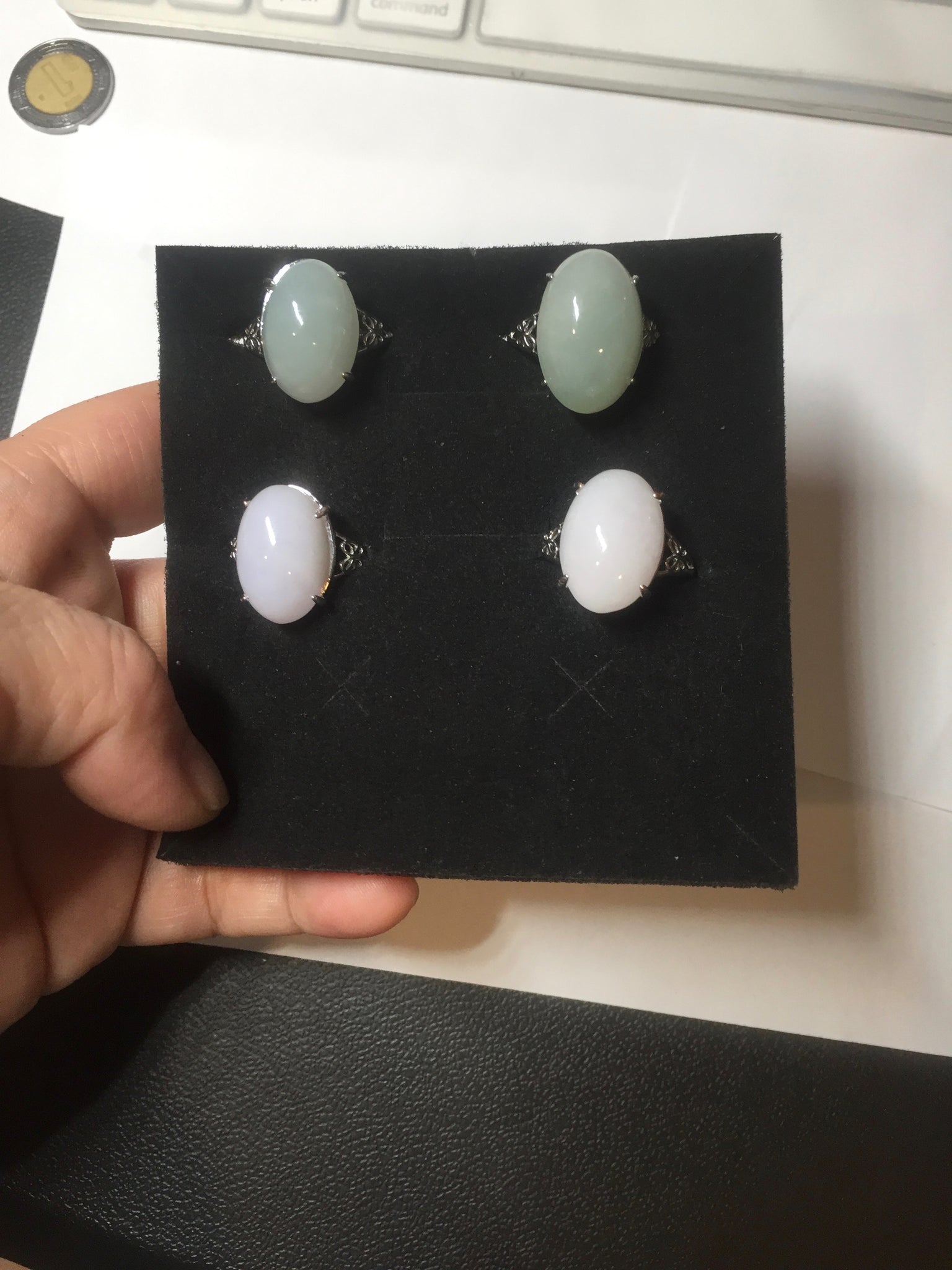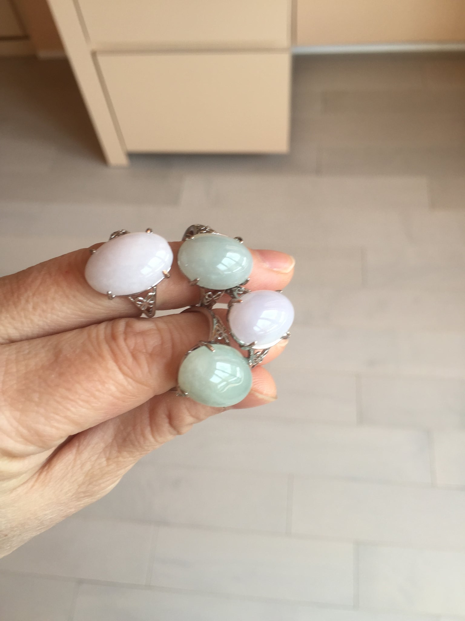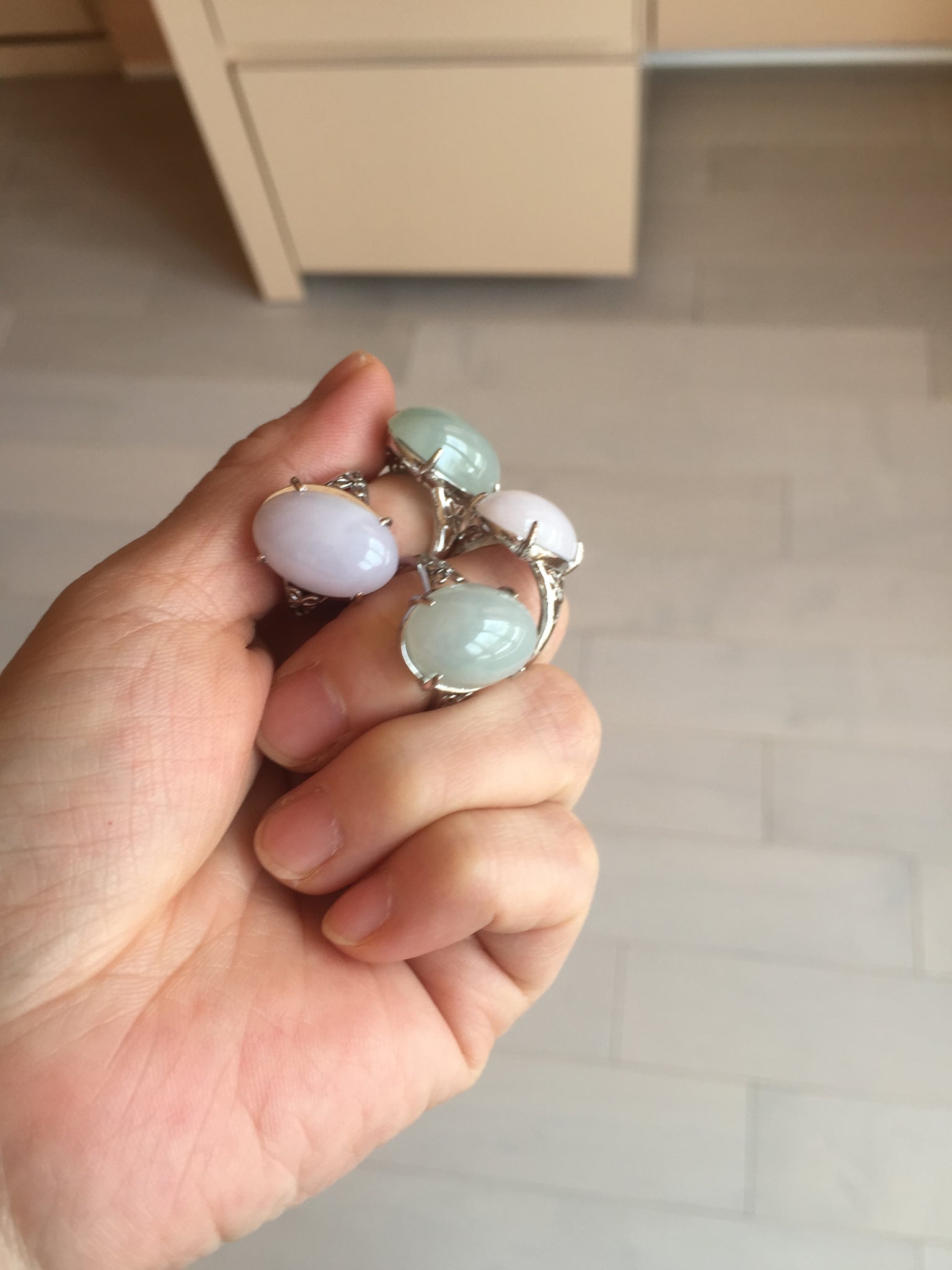 100% natural type A icy watery green dark green four-prong jadeite jade ring group AA91
