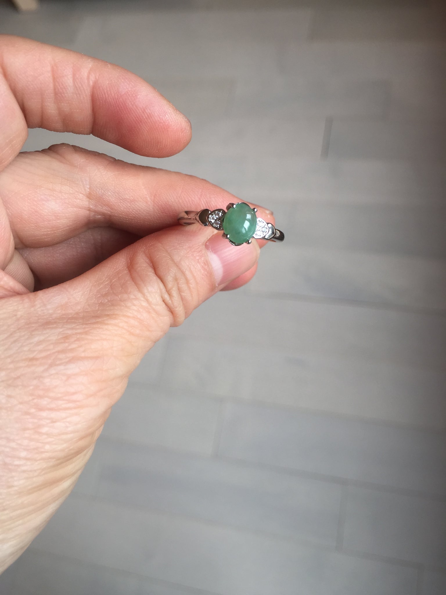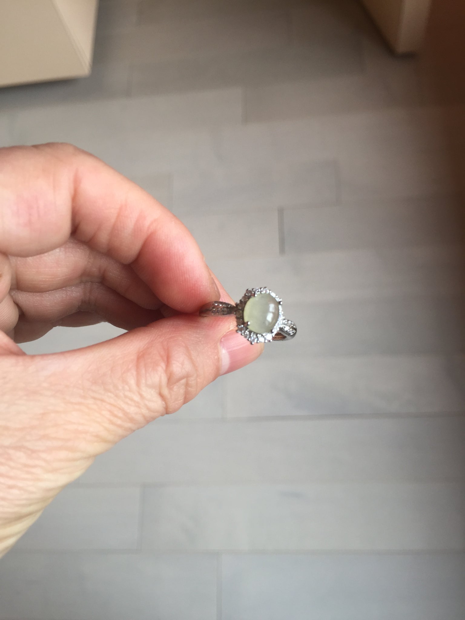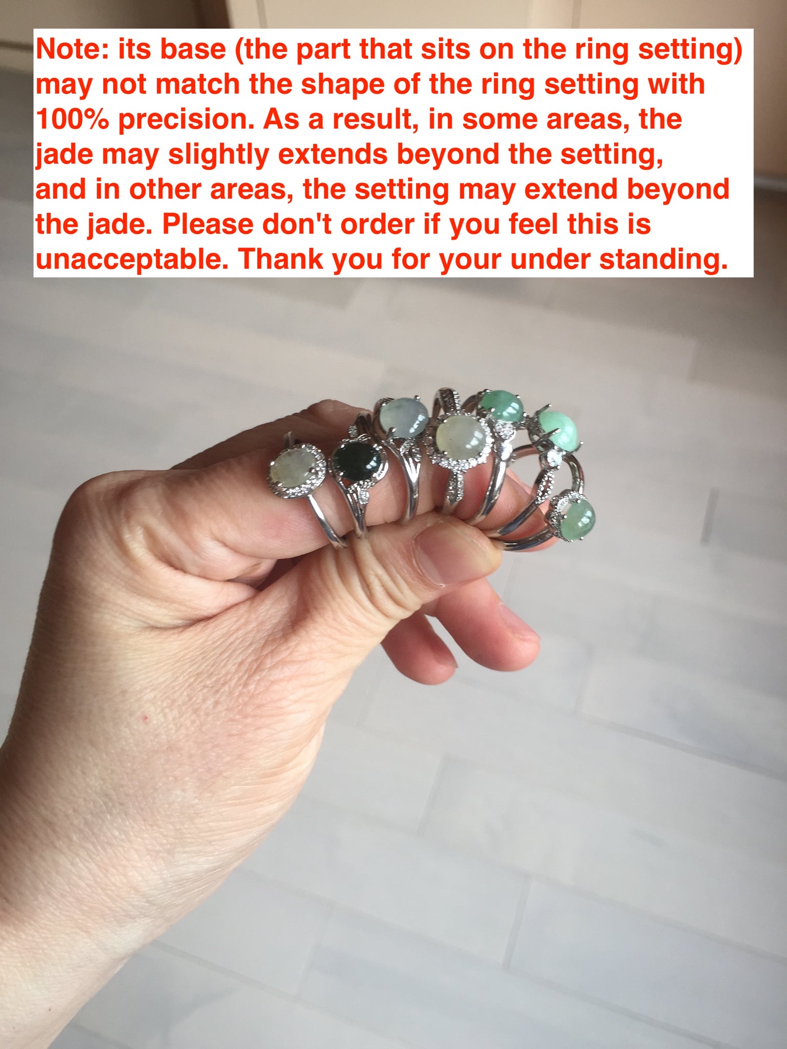 Note: its base (the part that sits on the ring setting) may not match the shape of the ring setting with 100% precision. As a result, in some areas, the jade may slightly extends beyond the setting, and in other areas, the setting may extend beyond the jade. Please don't order if you feel this is unacceptable. Thank you for your under standing.