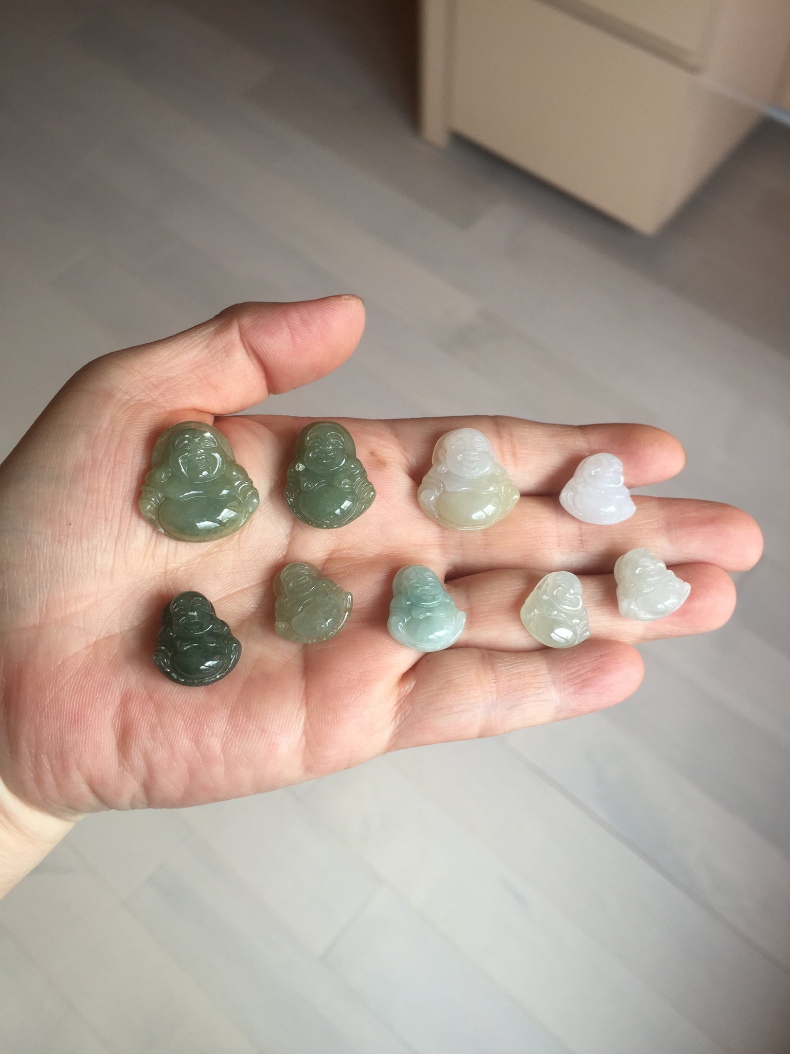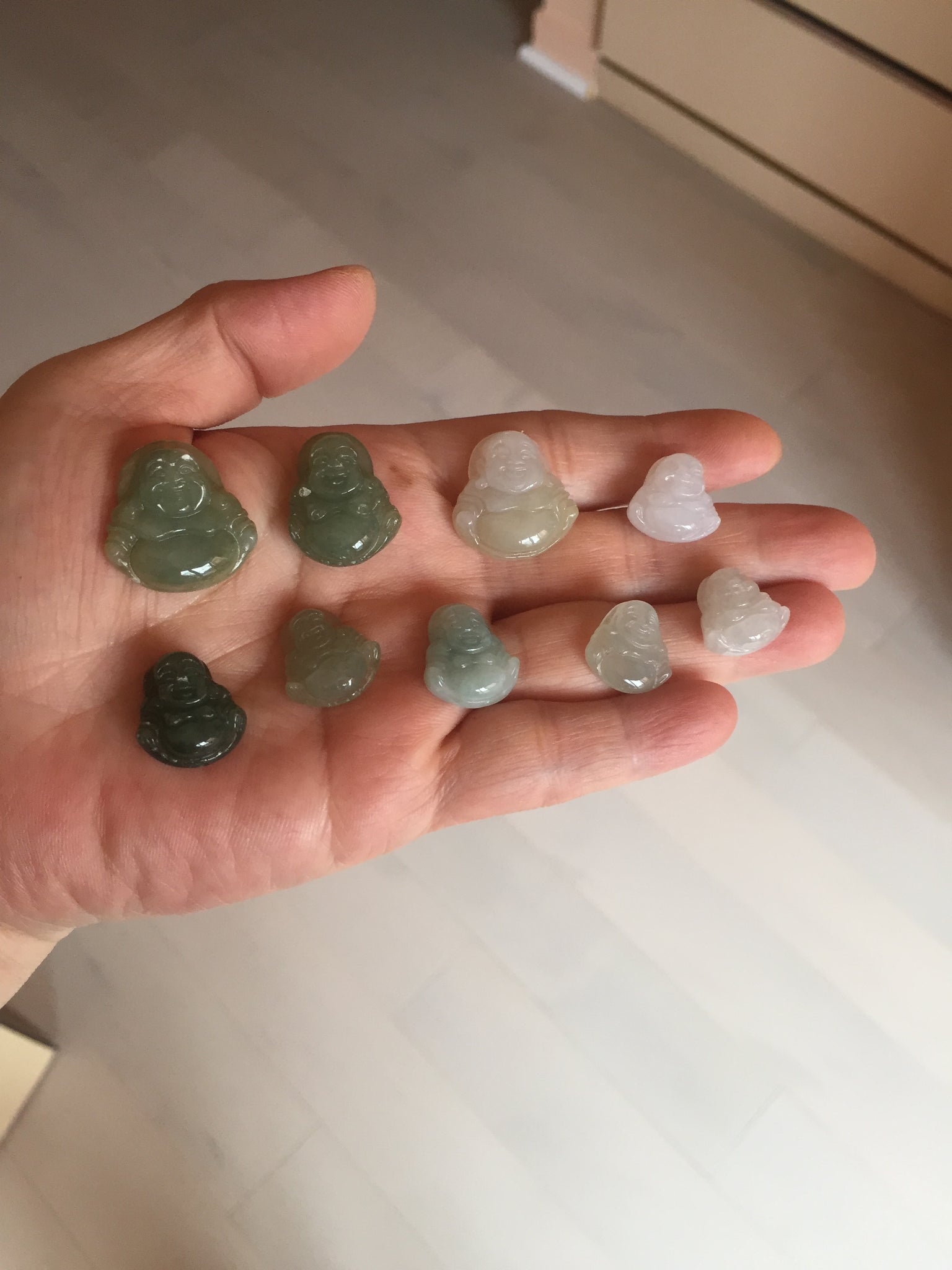 They may have cracks, notches, hairlines, color roots, small rough surfaces, black spots, cotton lines, cotton areas, and cotton spots. Some may not perfectly round or carved.