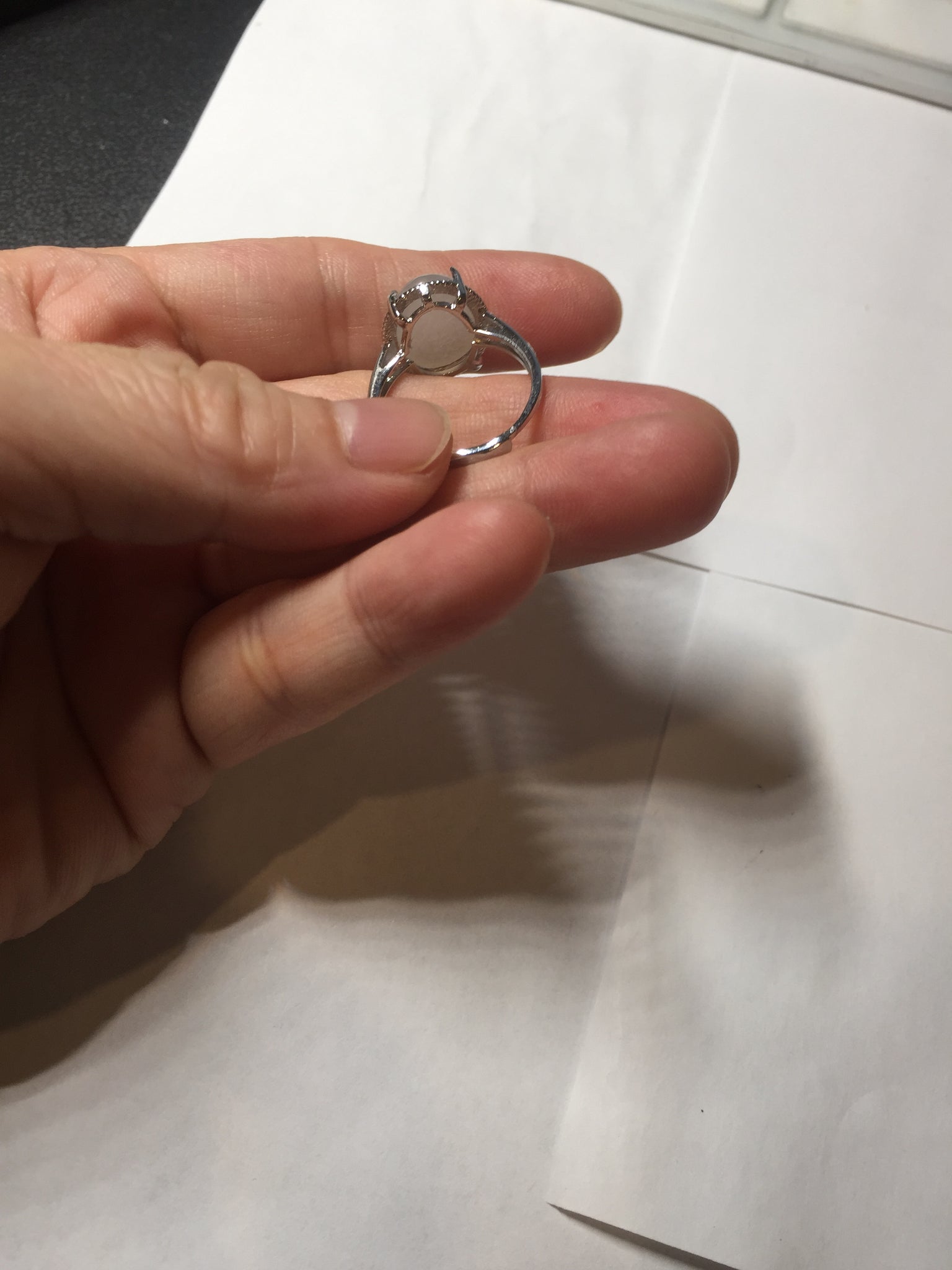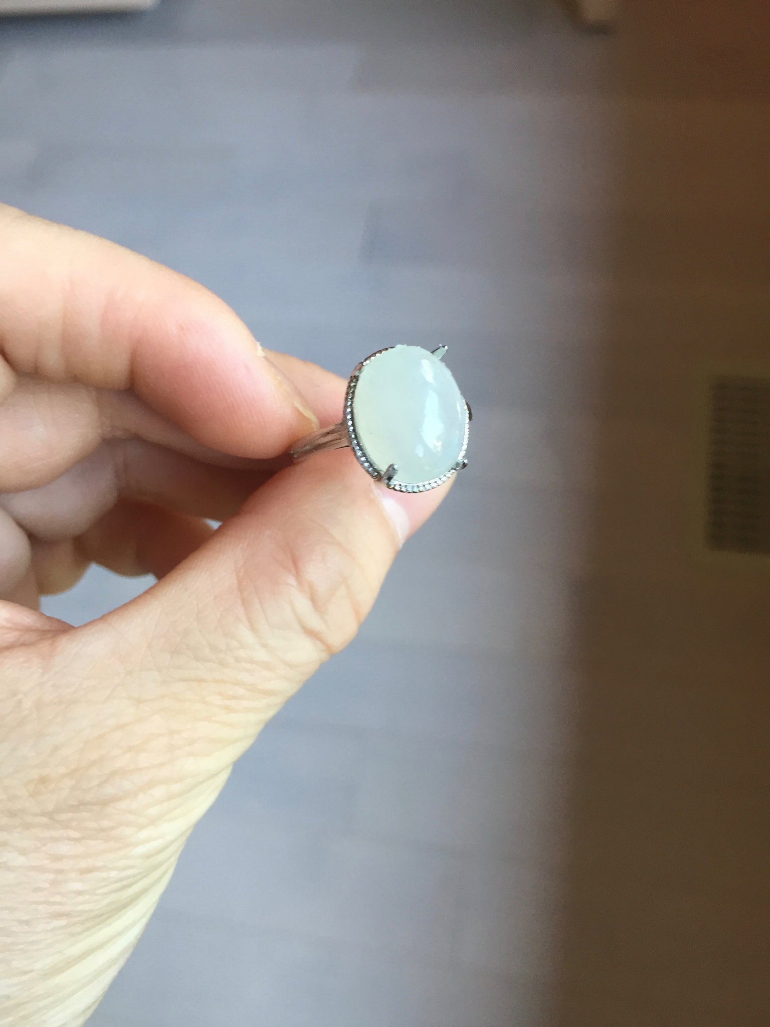 Note: its base (the part that sits on the ring setting) may not match the shape of the ring setting with 100% precision. As a result, in some areas, the jade may slightly extend beyond the setting, and in other areas, the setting may extend beyond the jade. Please don't order if you feel this is unacceptable. Thank you for your understanding.