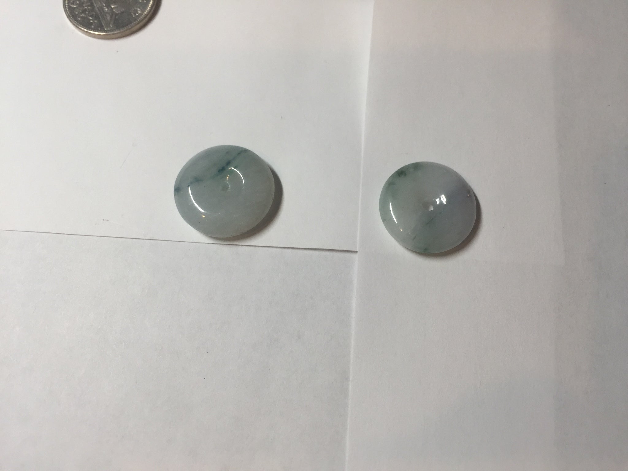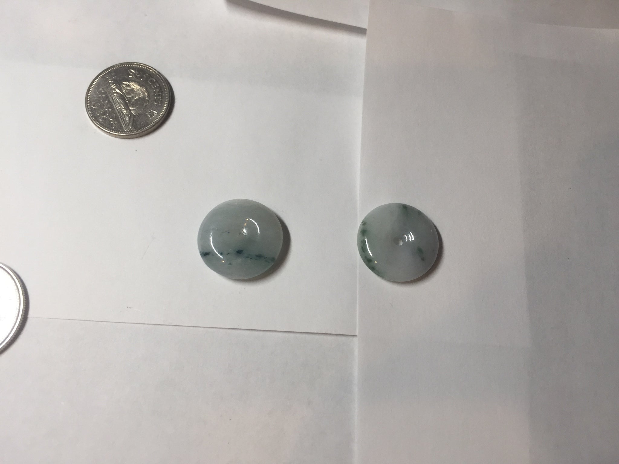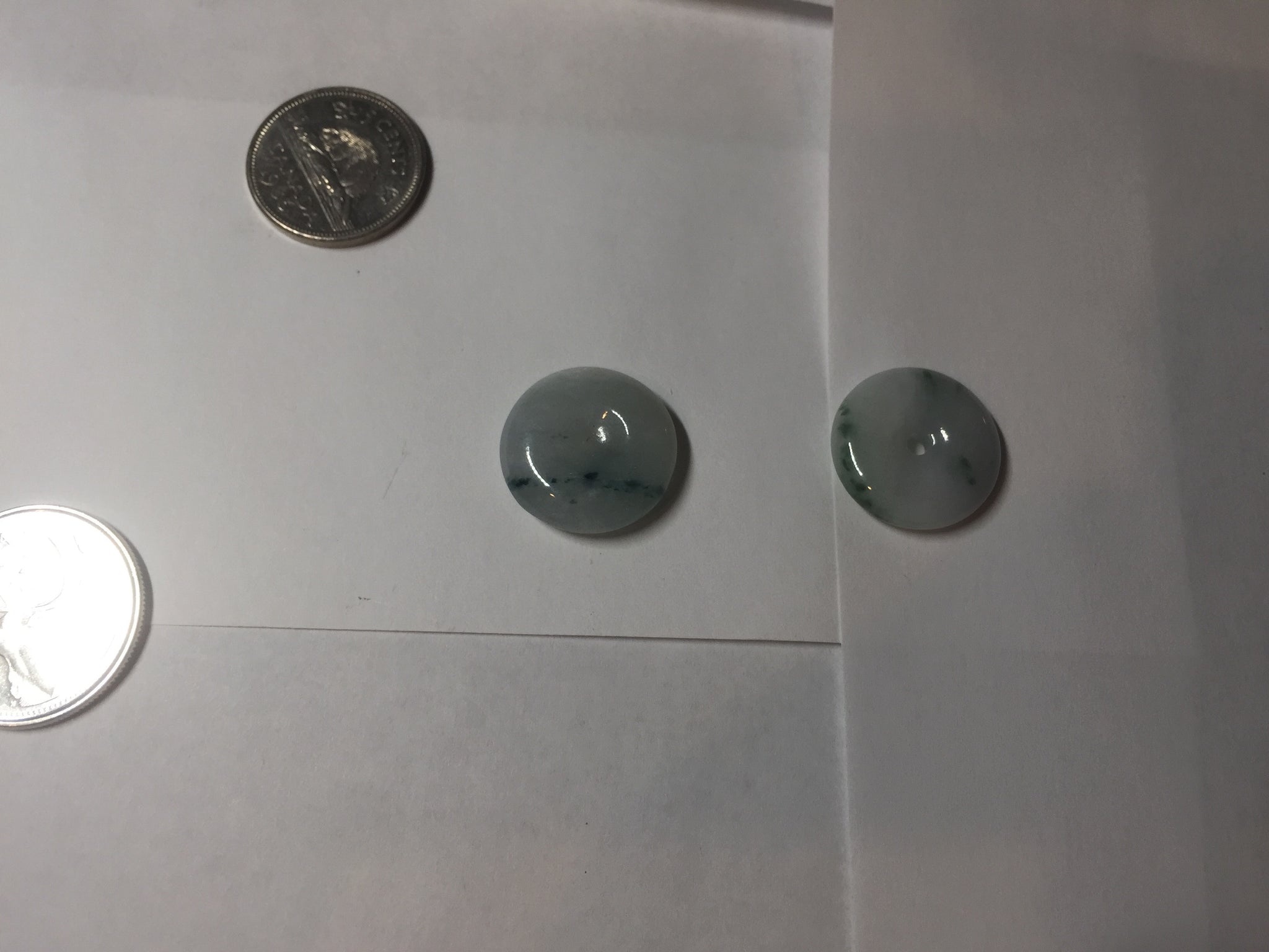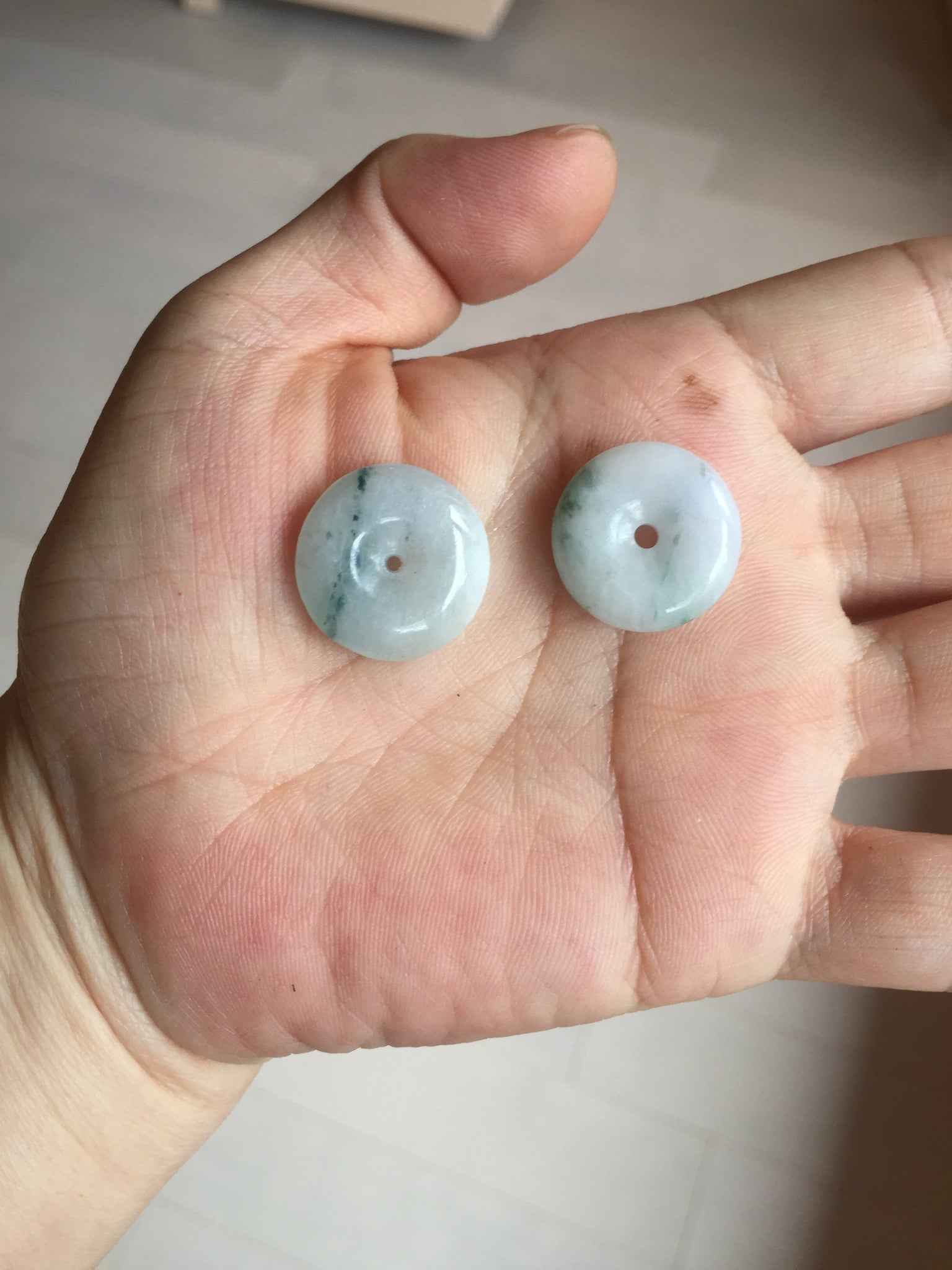 • Load image into Gallery viewer, 19mm Type A 100% Natural green white with green floating flowers Jadeite Jade Safety Guardian Button donuts Pendant group PC106