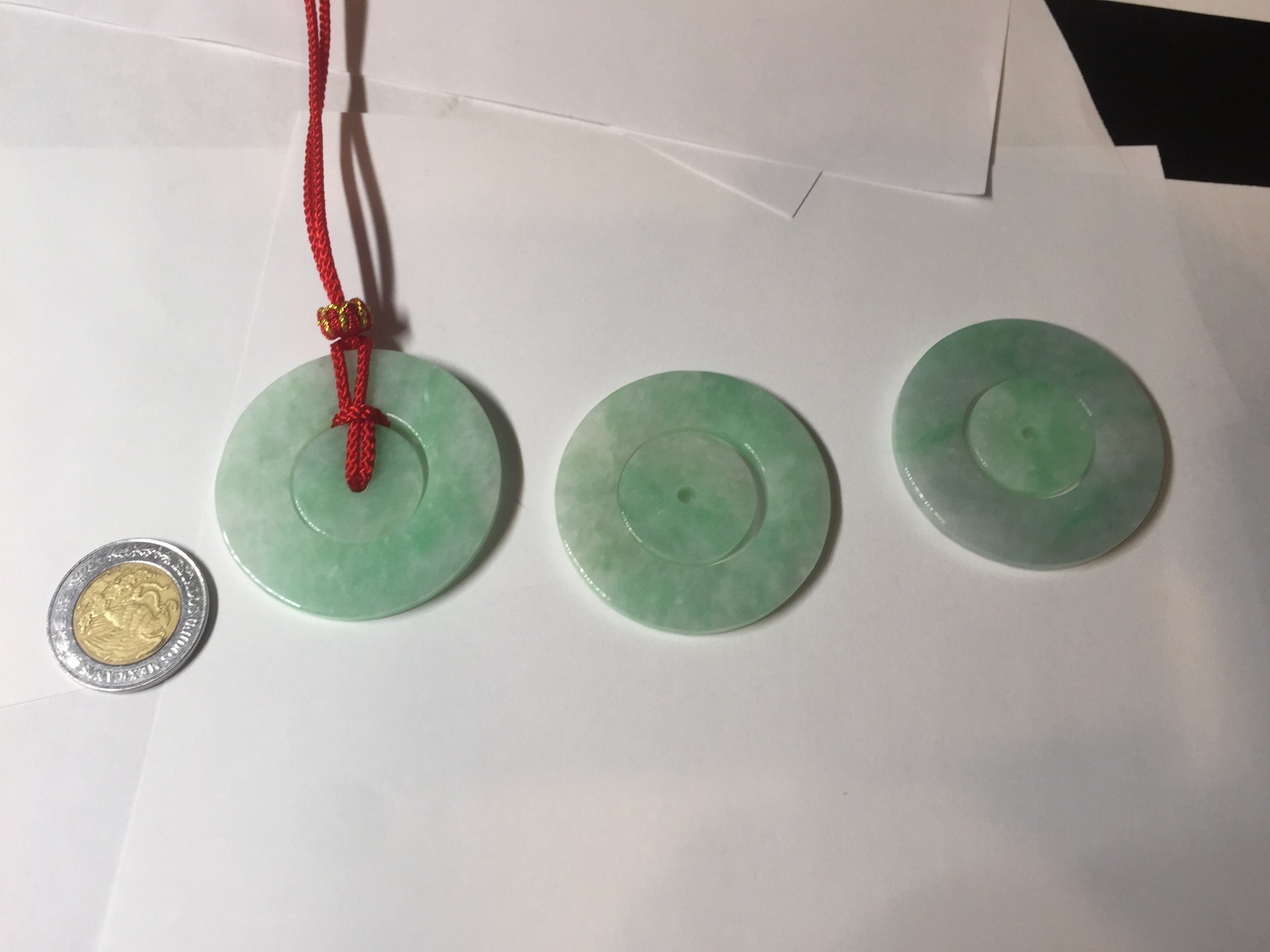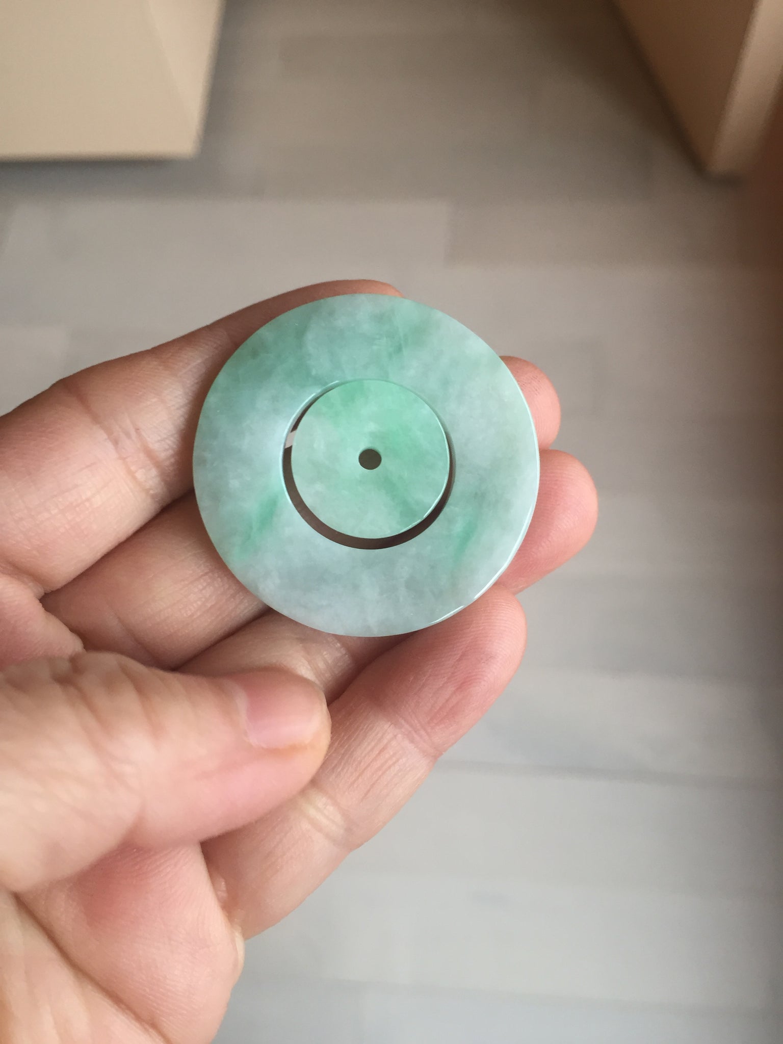 38-39mm Type A 100% Natural sunny green/white Jadeite Jade concentric circle safety Guardian ring Pendant (子母扣,同心环) PC2