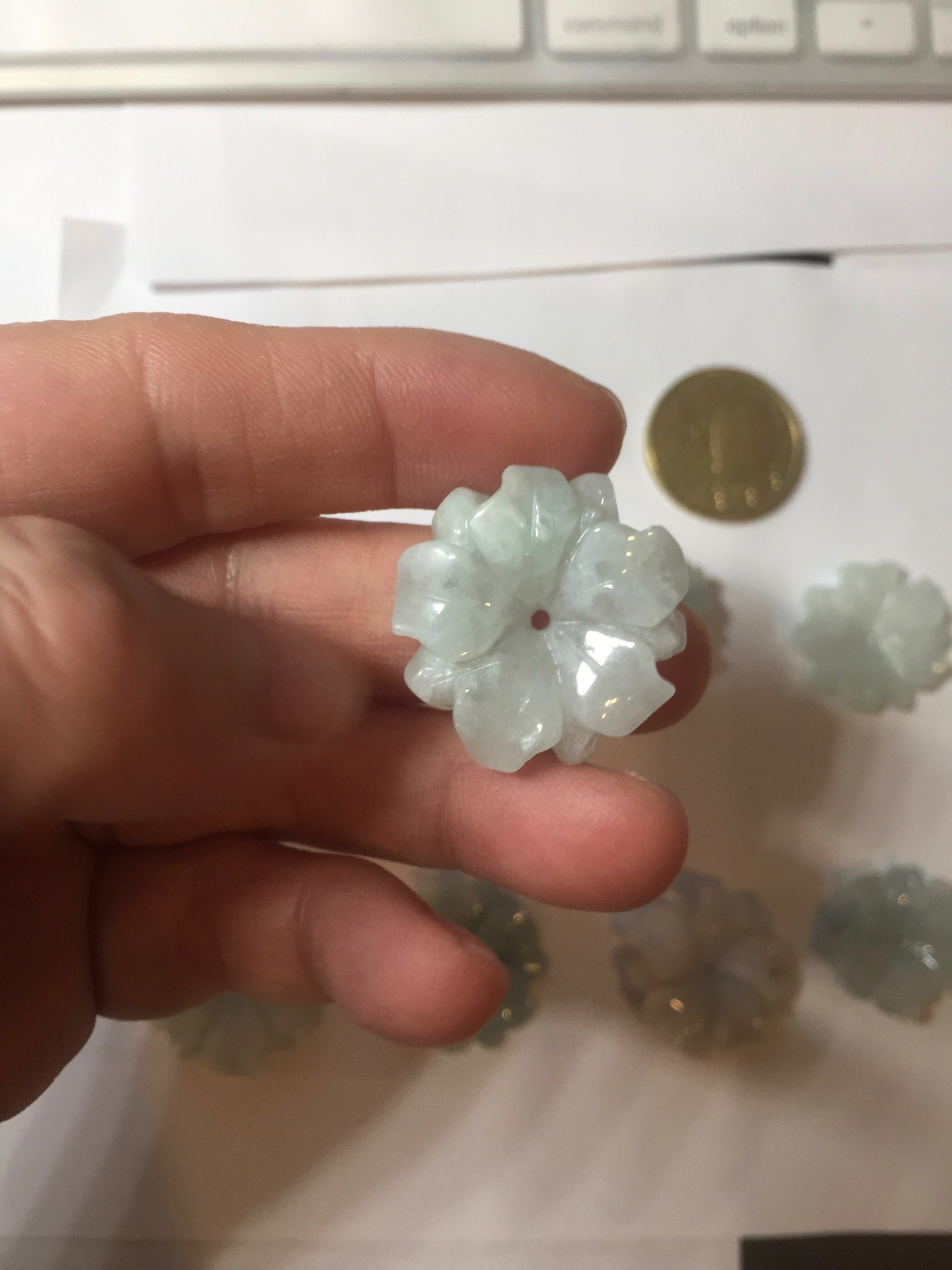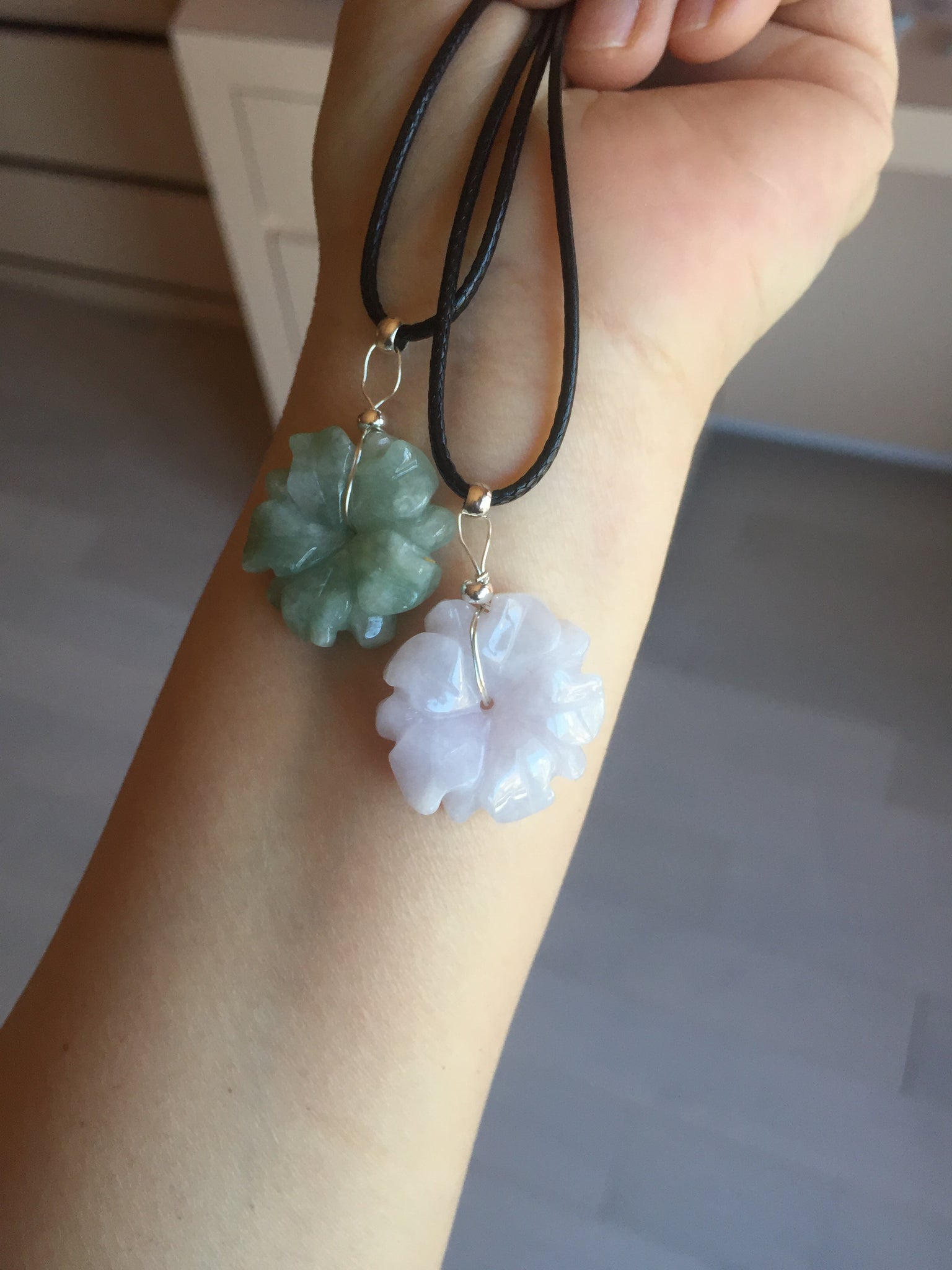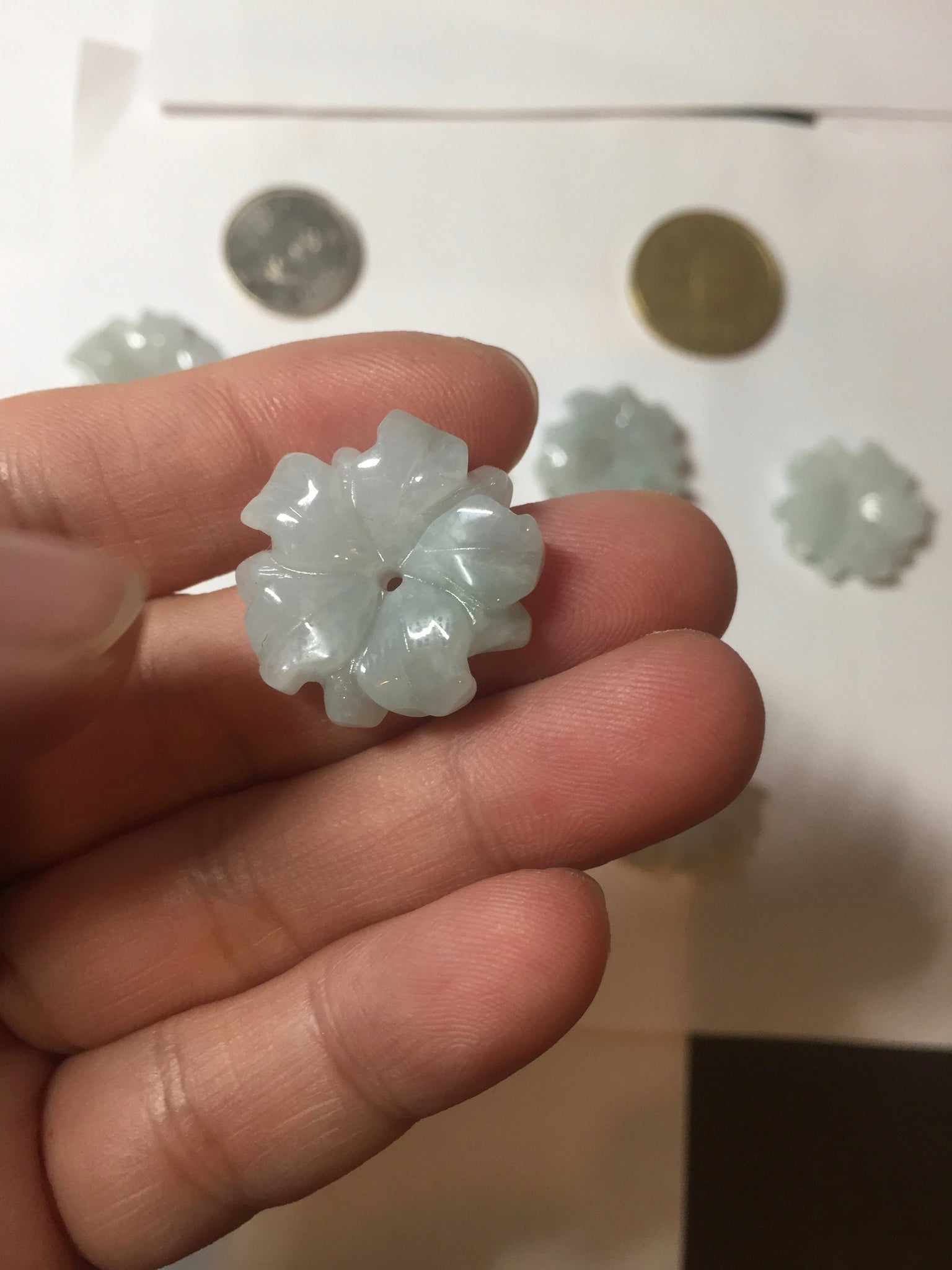 Each flower more or less has some wax residue, mostly around the carved edges and they are just on the surface of it. This is not wax immersed and pressured into the jadeite, but leftover wax used during the polishing process. Due to the intricate details and small size of these pieces, it is hard to completely remove all wax from carving. If you don’t like this, please don’t order. Thank you for your understanding.