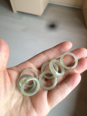 14.5mm/size 3 1/2 100% natural type A icy watery green/blue slim Guatemala jadeite jade band ring BH63