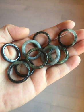 100% natural type A ice watery dark green/gray/black(冰油青) jadeite jade band ring AU83