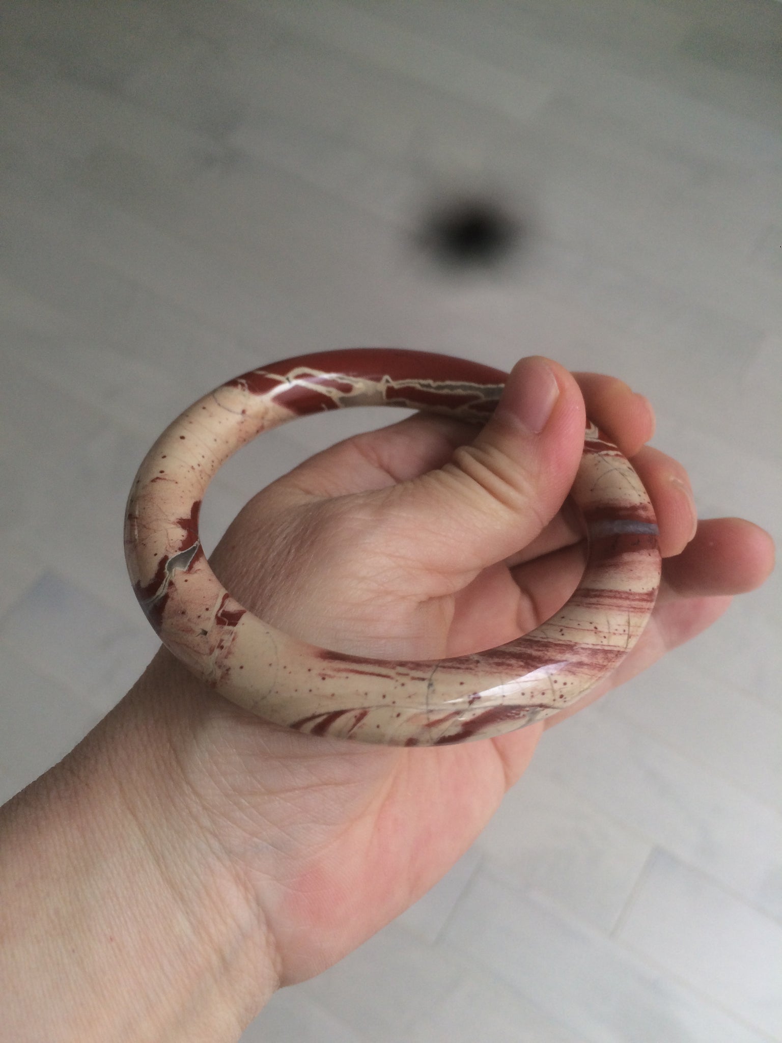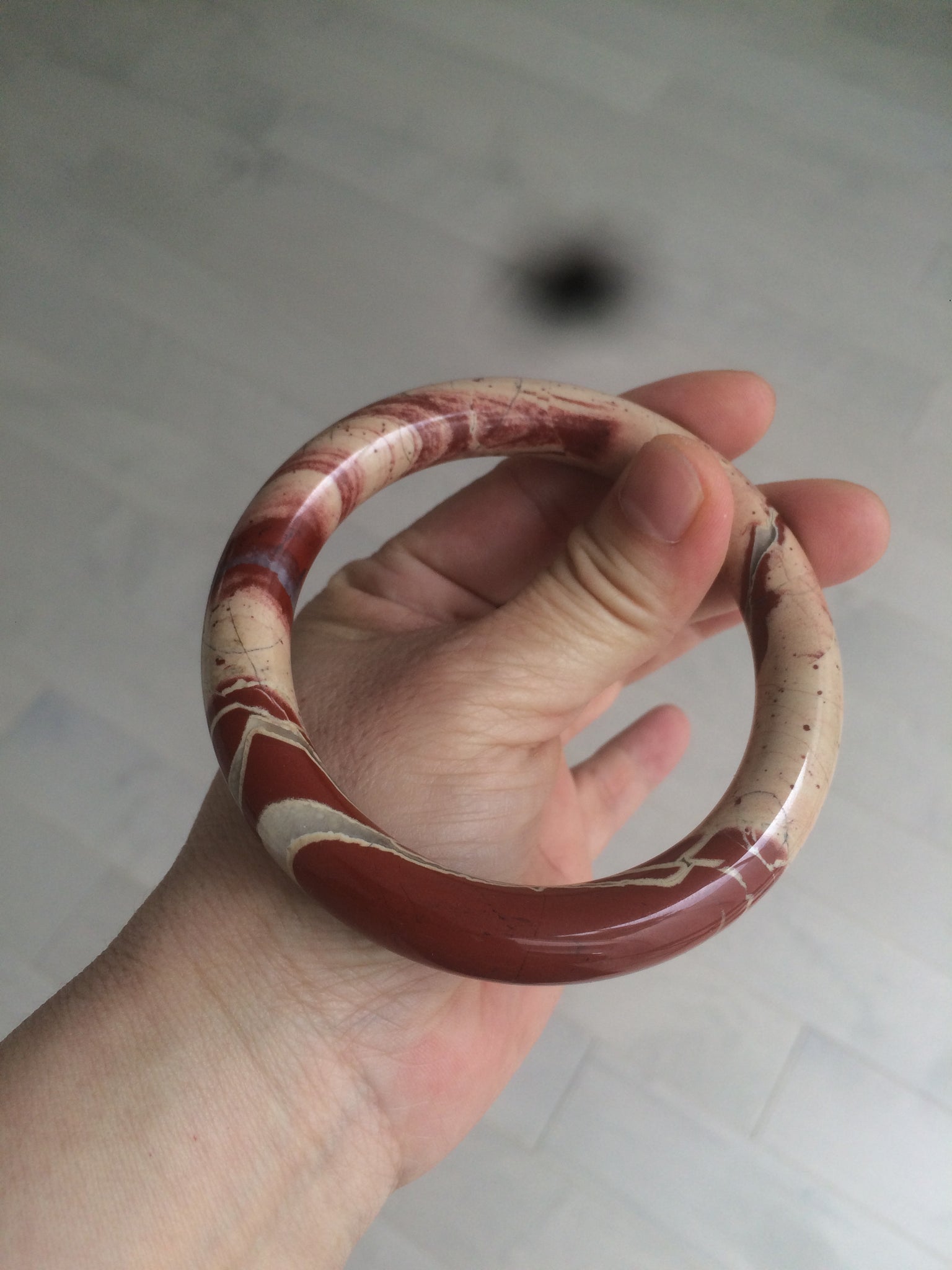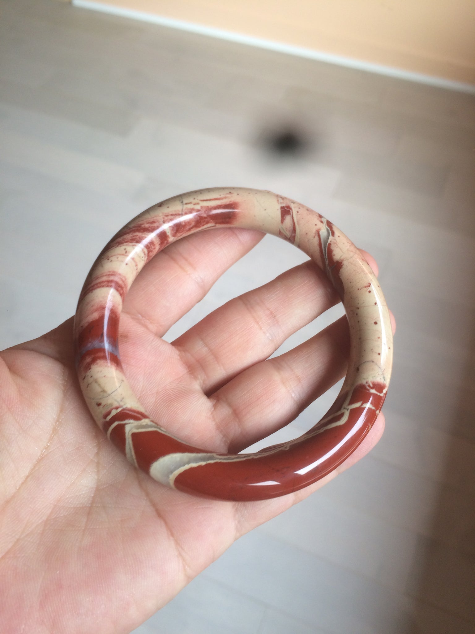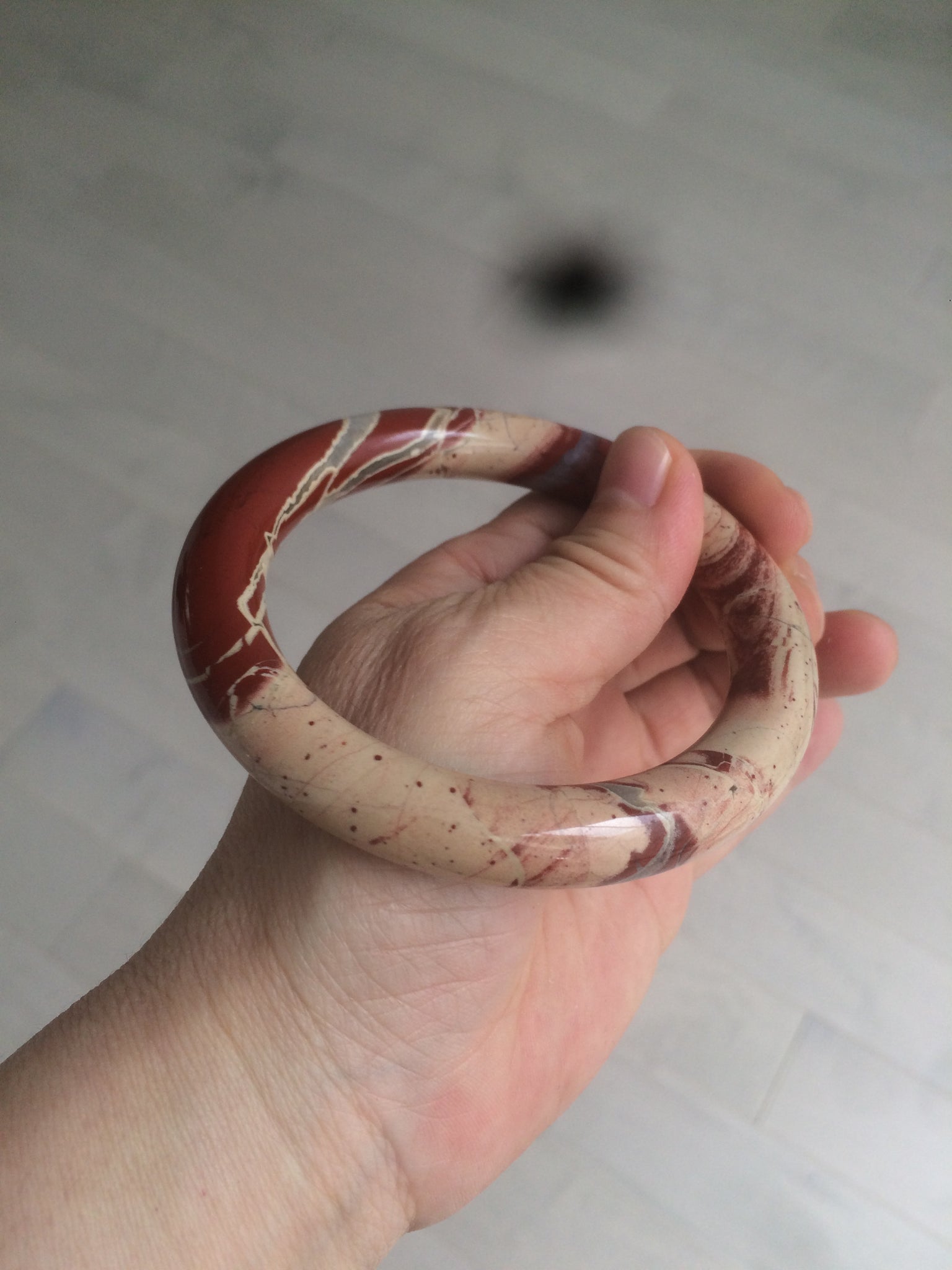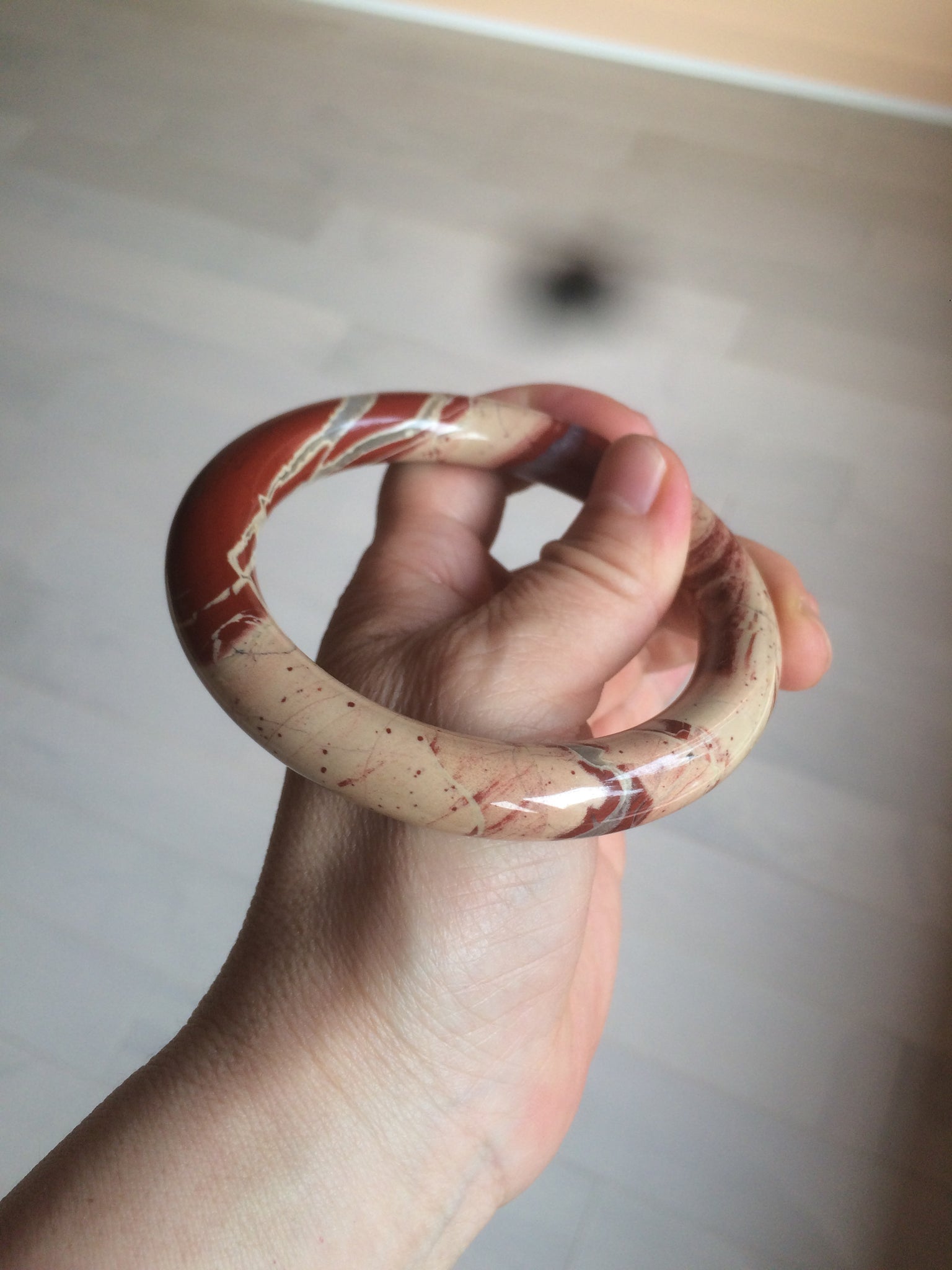 61mm 100% natural red/pink/ round cut red jasper stone bangle CB73