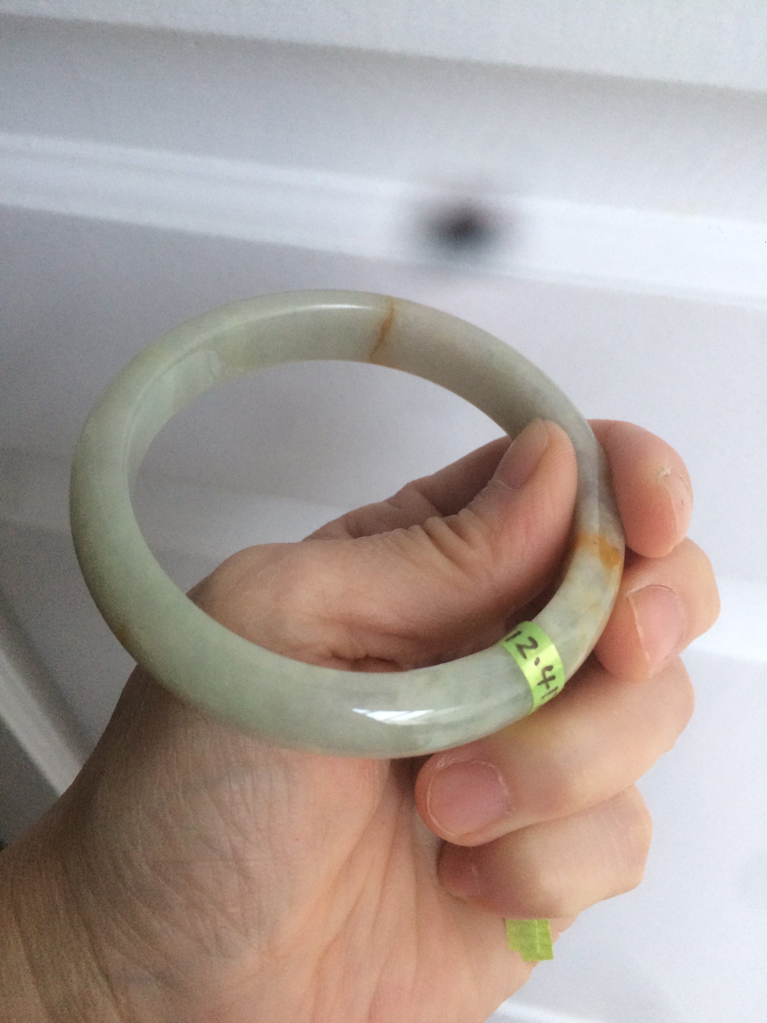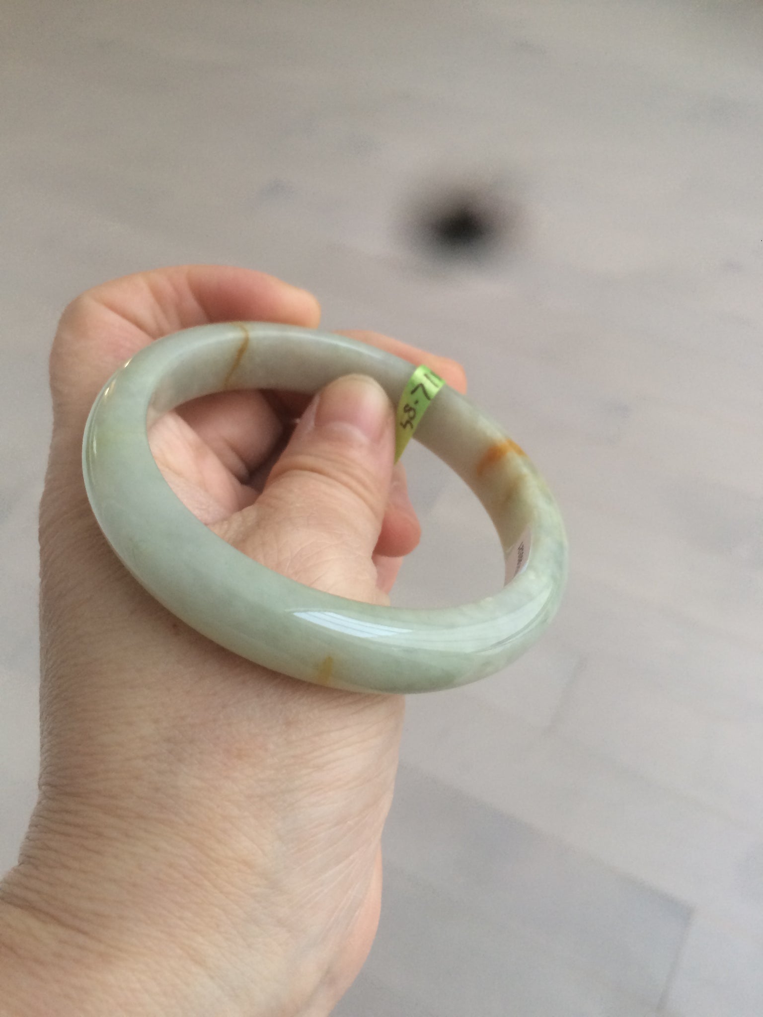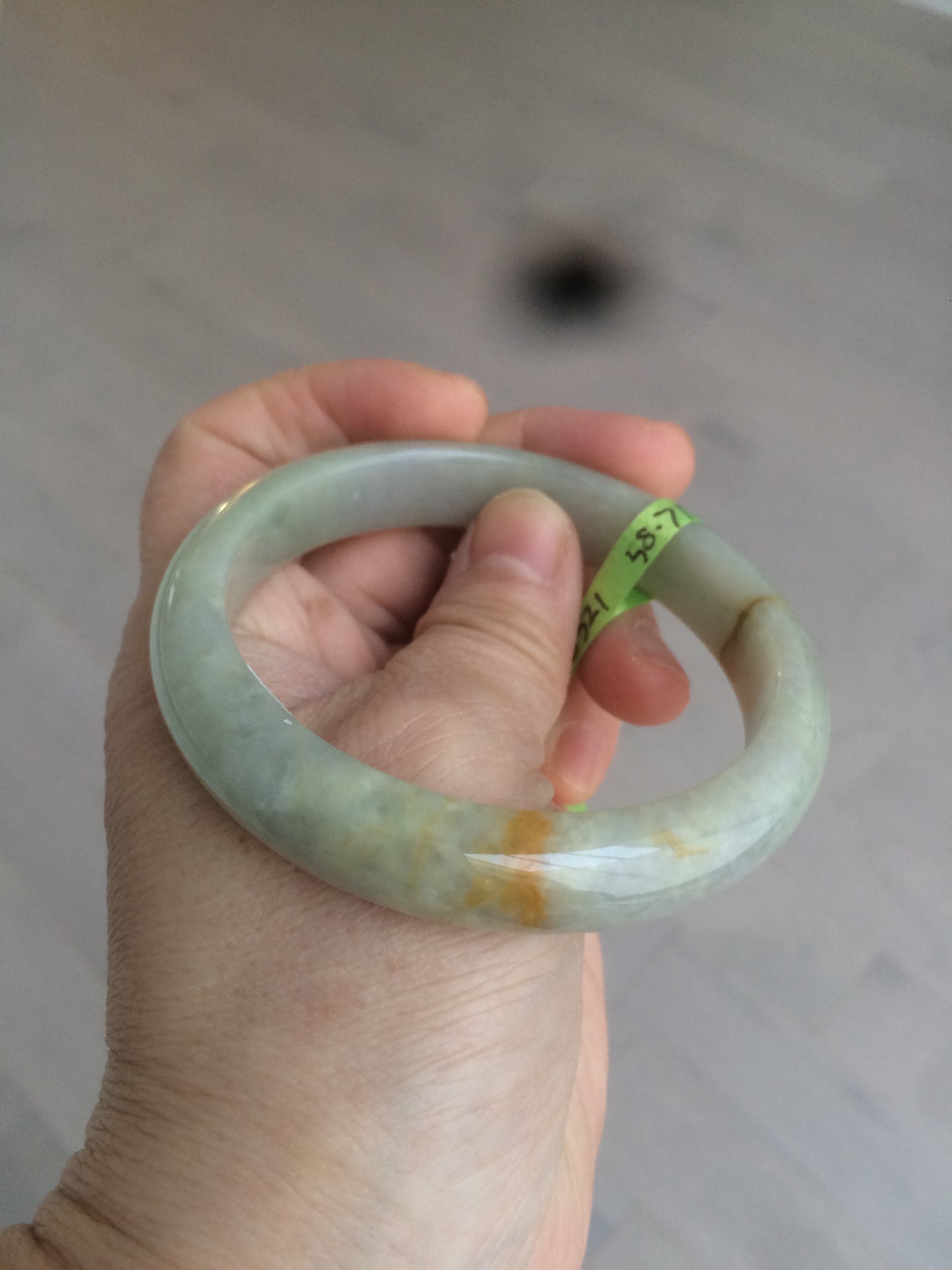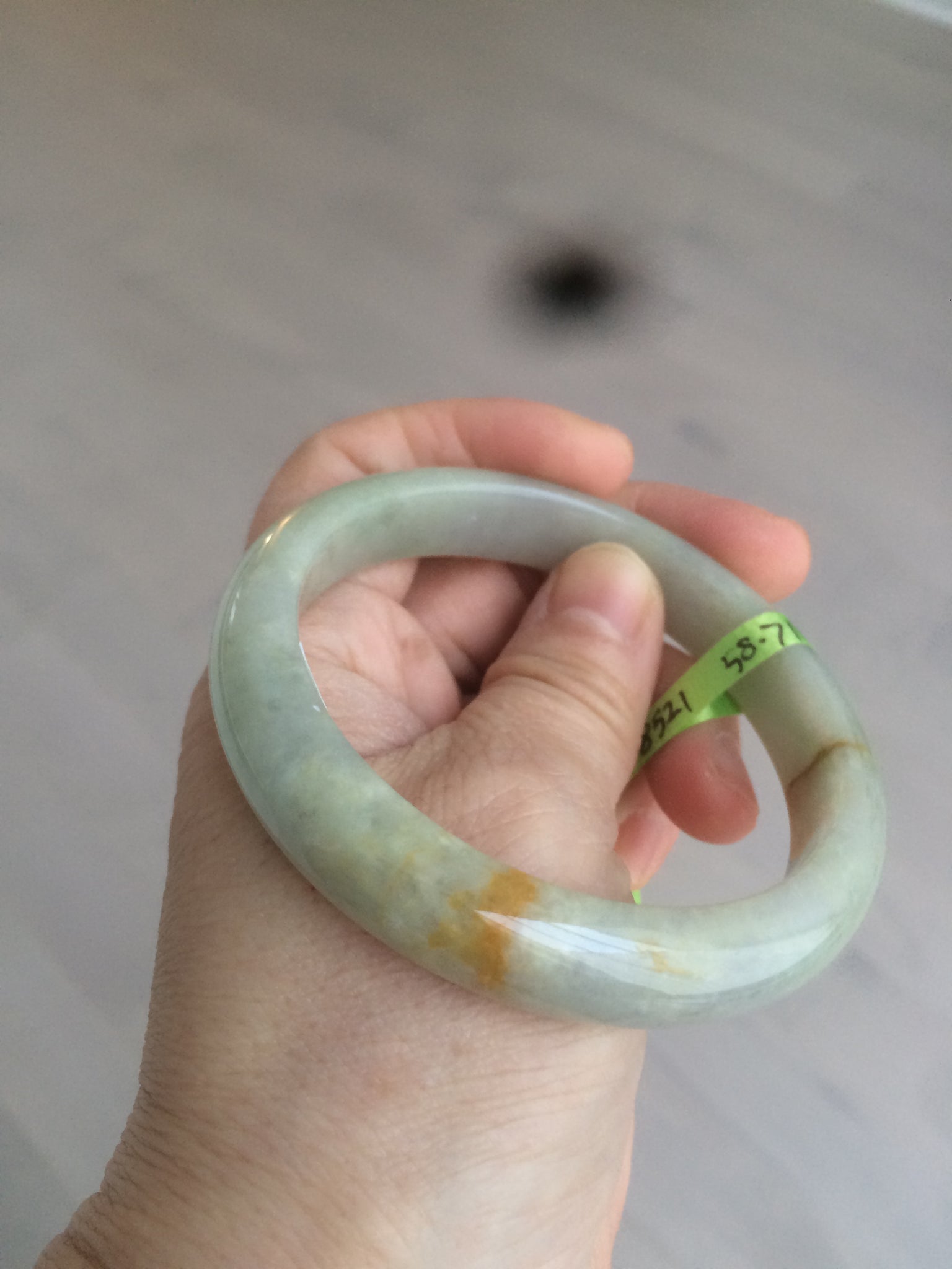 One crack and one color root crack. The root crack didn’t cut through the whole bangle. This bangle is still firm. Cotton spots.