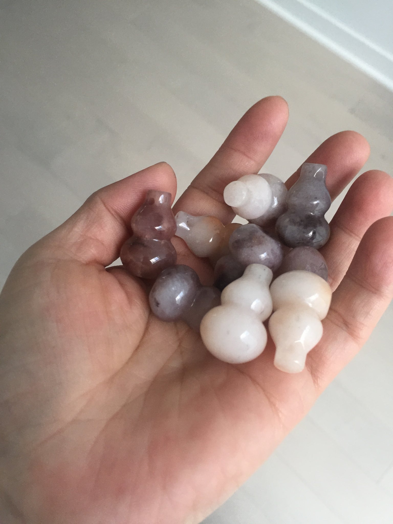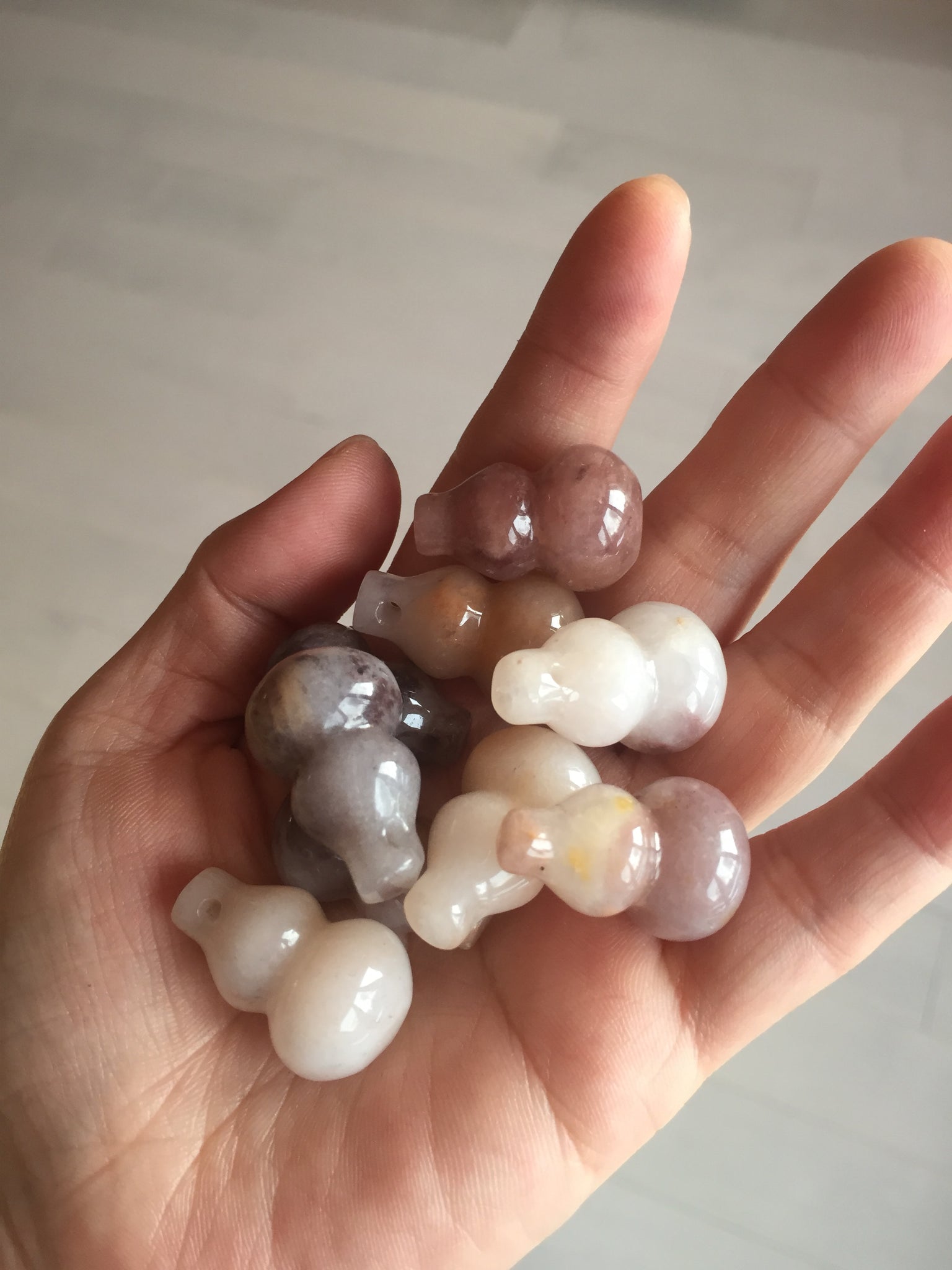 • Load image into Gallery viewer, 100% natural icy purple/brown/red Quartzite (jinsi jade, 金丝玉) Golden Silk Jade gourd ( 葫芦, 福禄) pendant/handhold worry stone/desk decor SY73