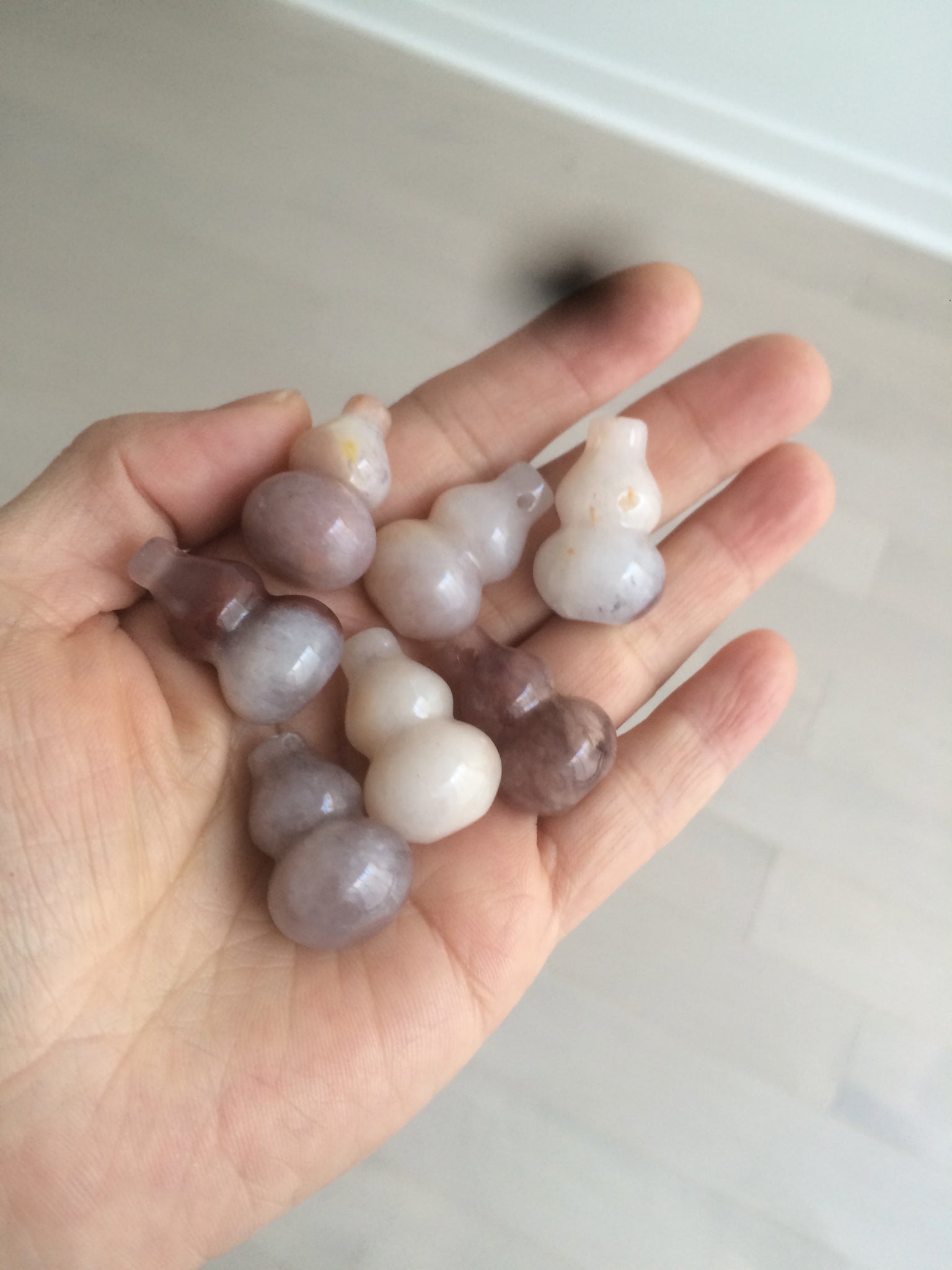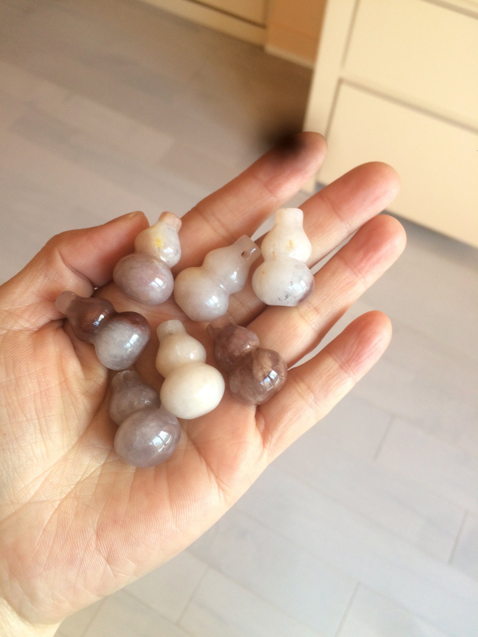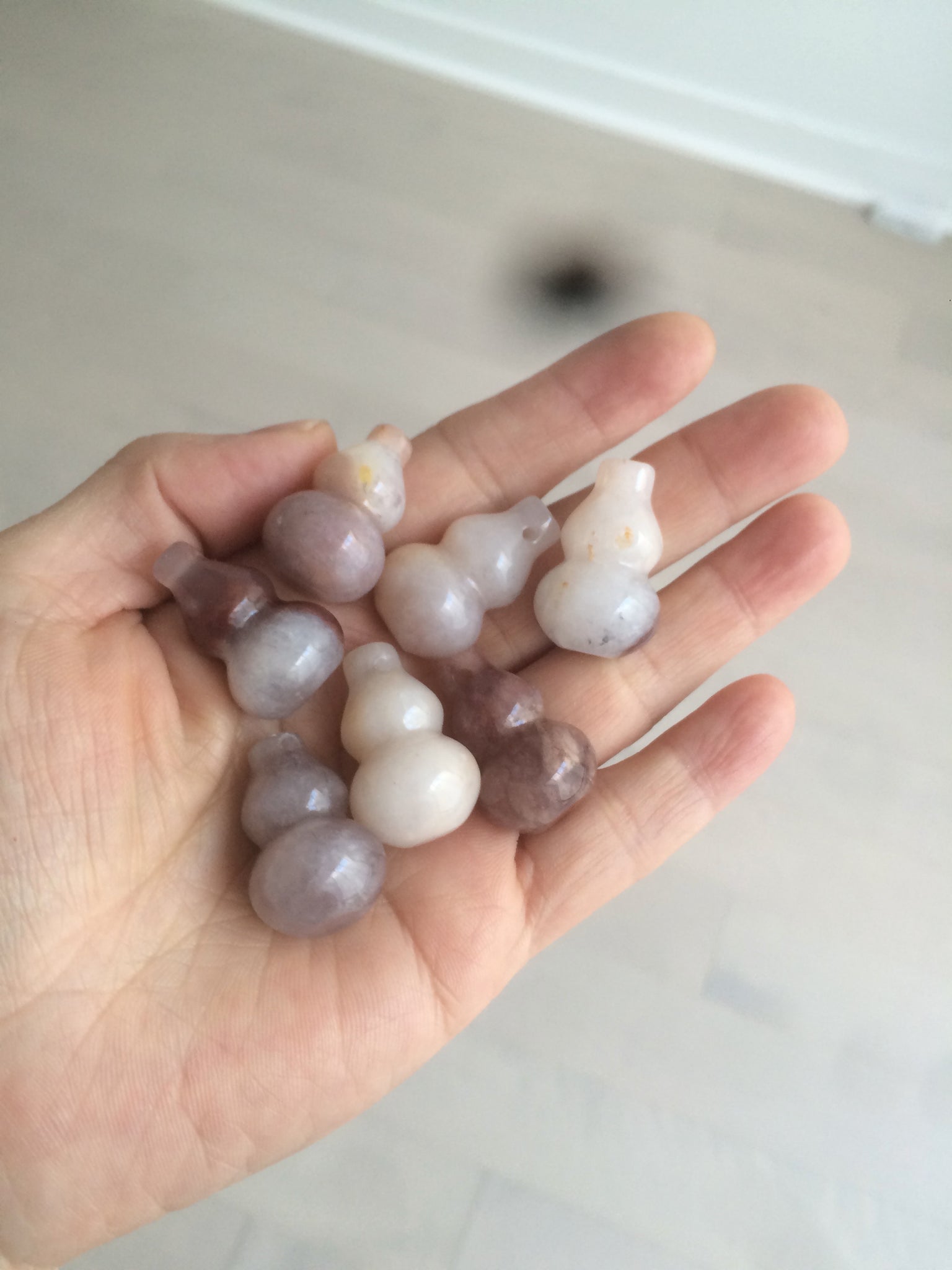 100% natural icy purple/brown/red Quartzite (jinsi jade, 金丝玉) Golden Silk Jade gourd ( 葫芦, 福禄) pendant/handhold worry stone/desk decor SY73
