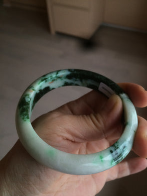 54.6mm Type A 100% Natural white/green/red Jadeite Jade bangle N76