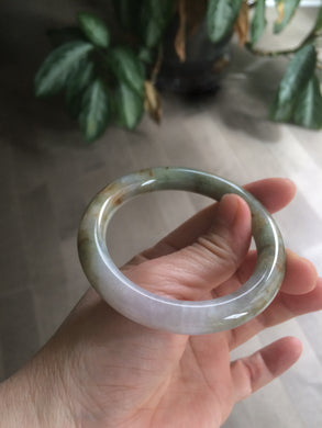 56.8mm certified Type A 100% Natural green/brown round cut Jadeite Jade bangle KS87-1441