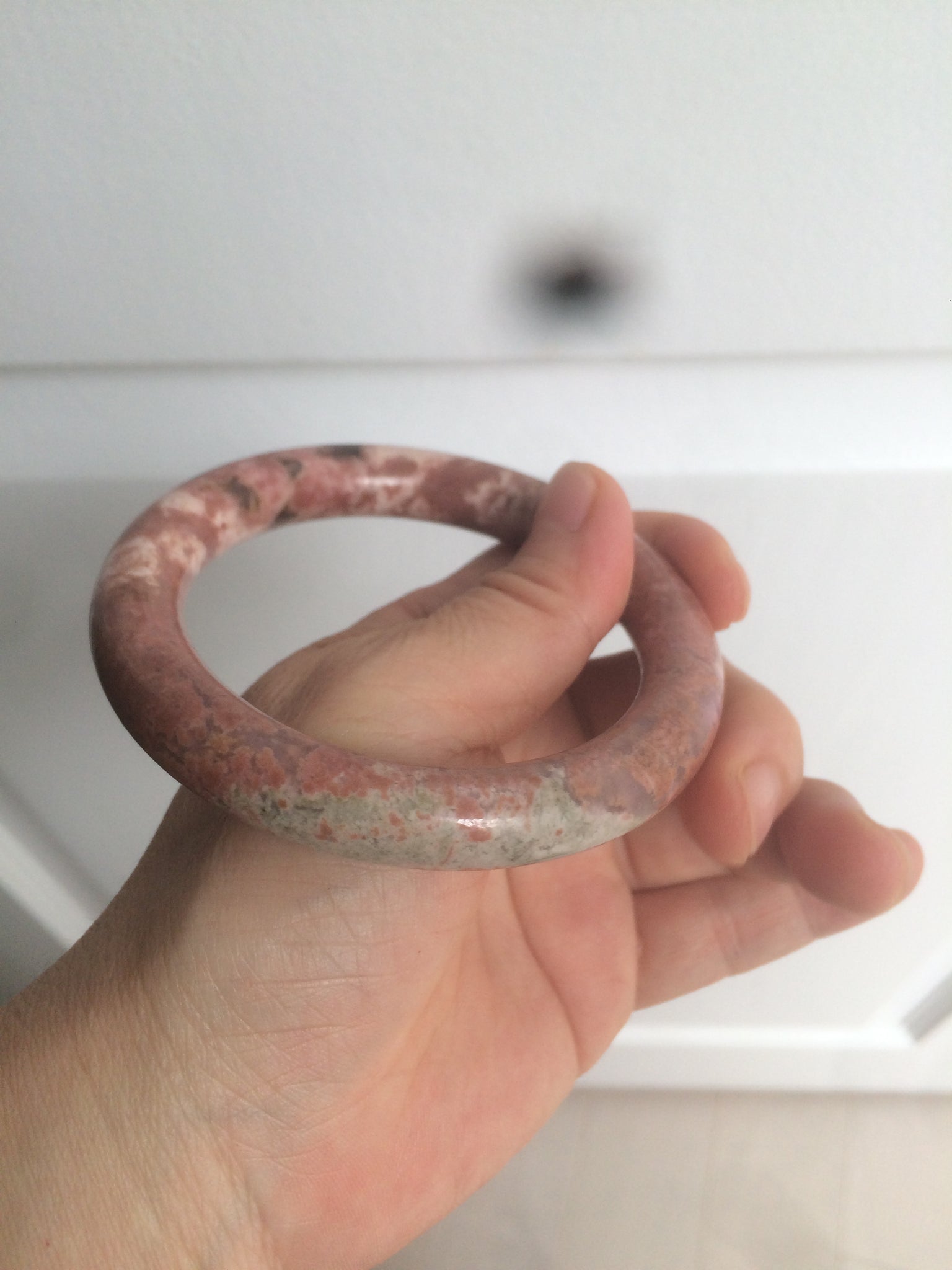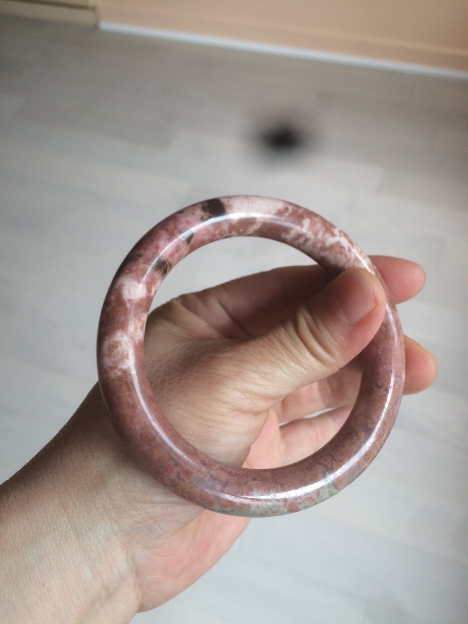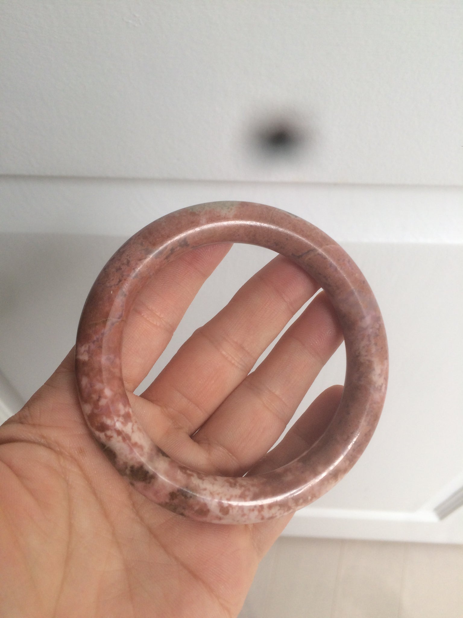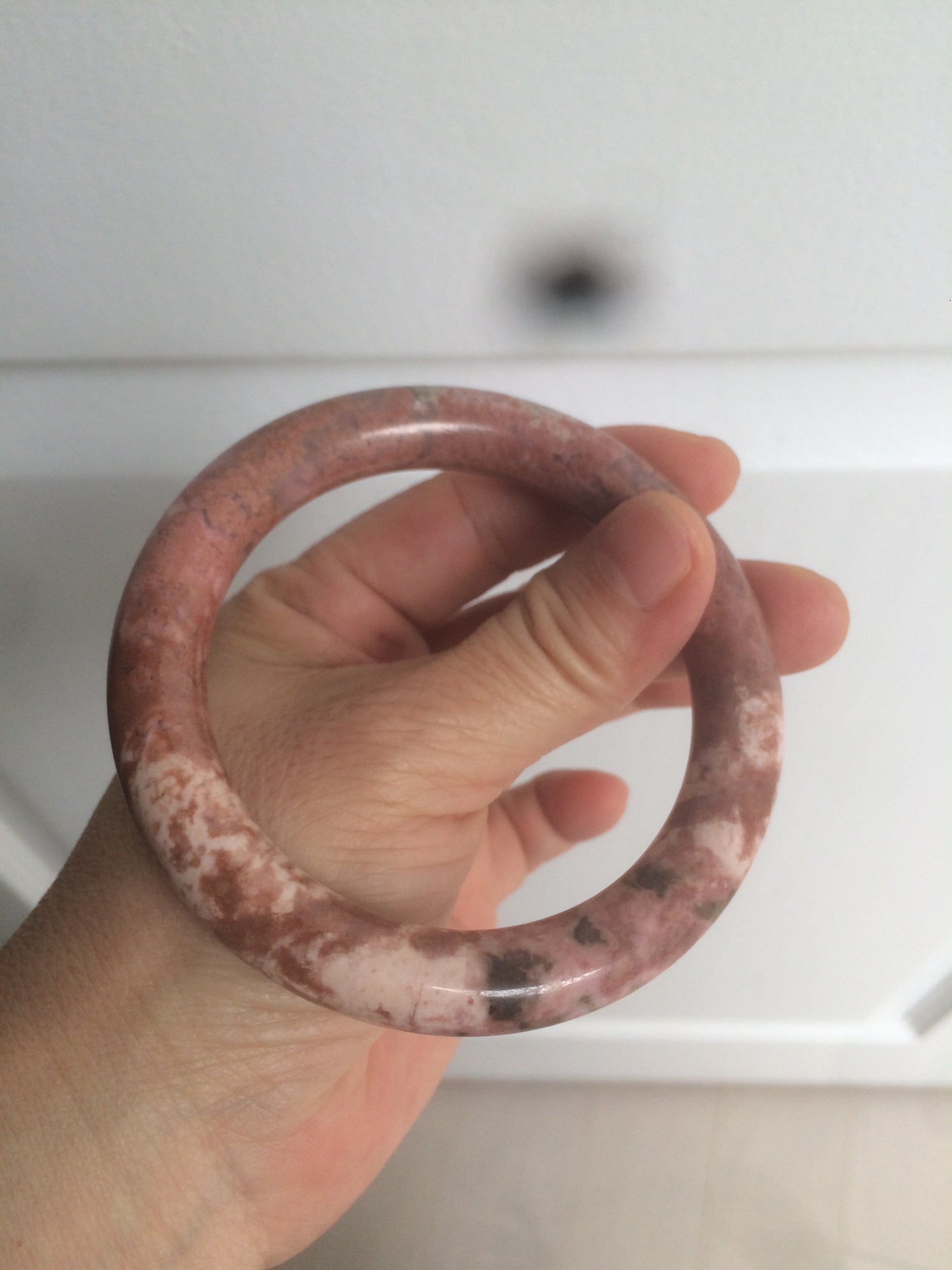 58.9mm 100% natural Etruscan earth red round cut rose stone (Rhodonite)bangle XY76