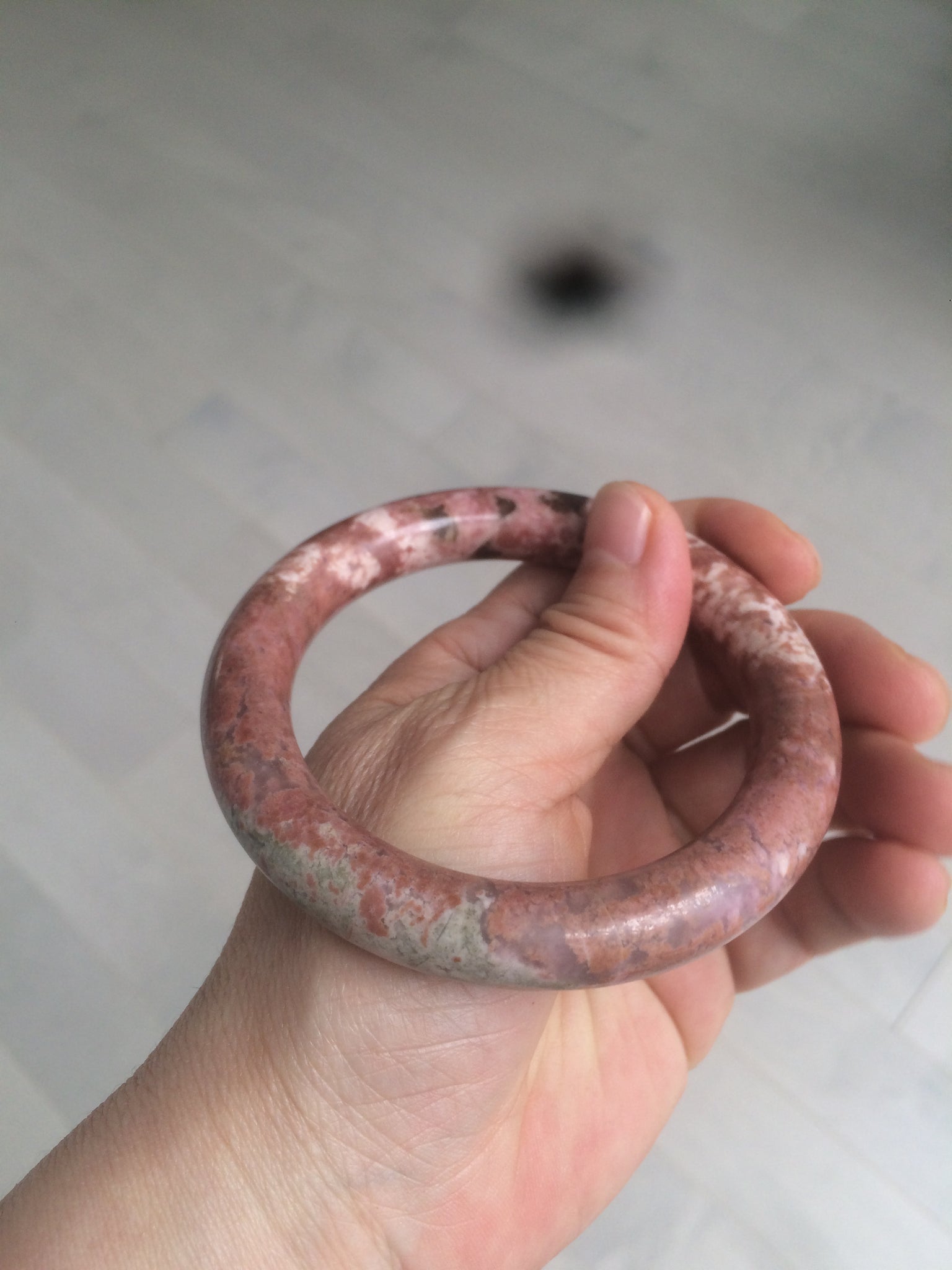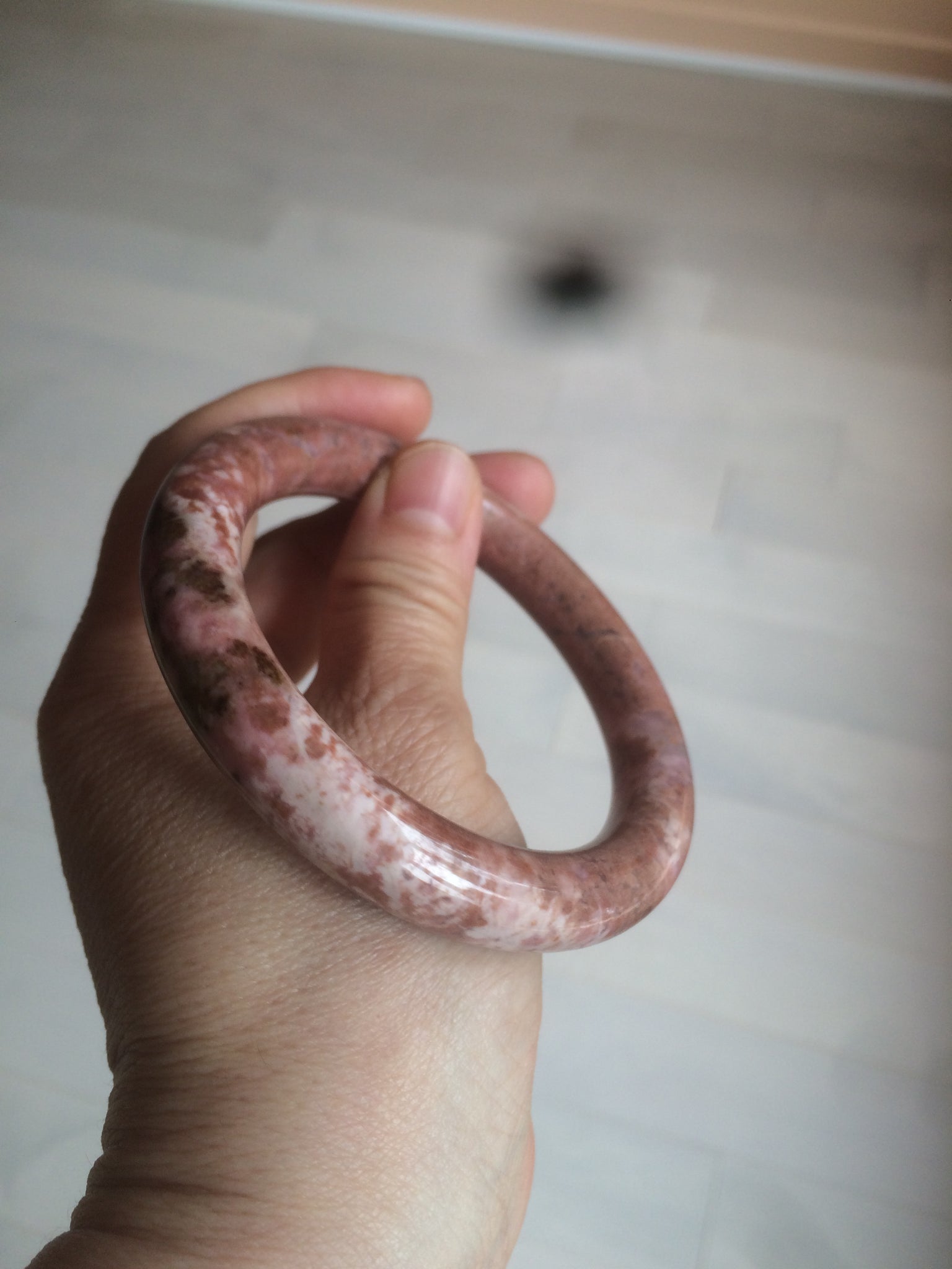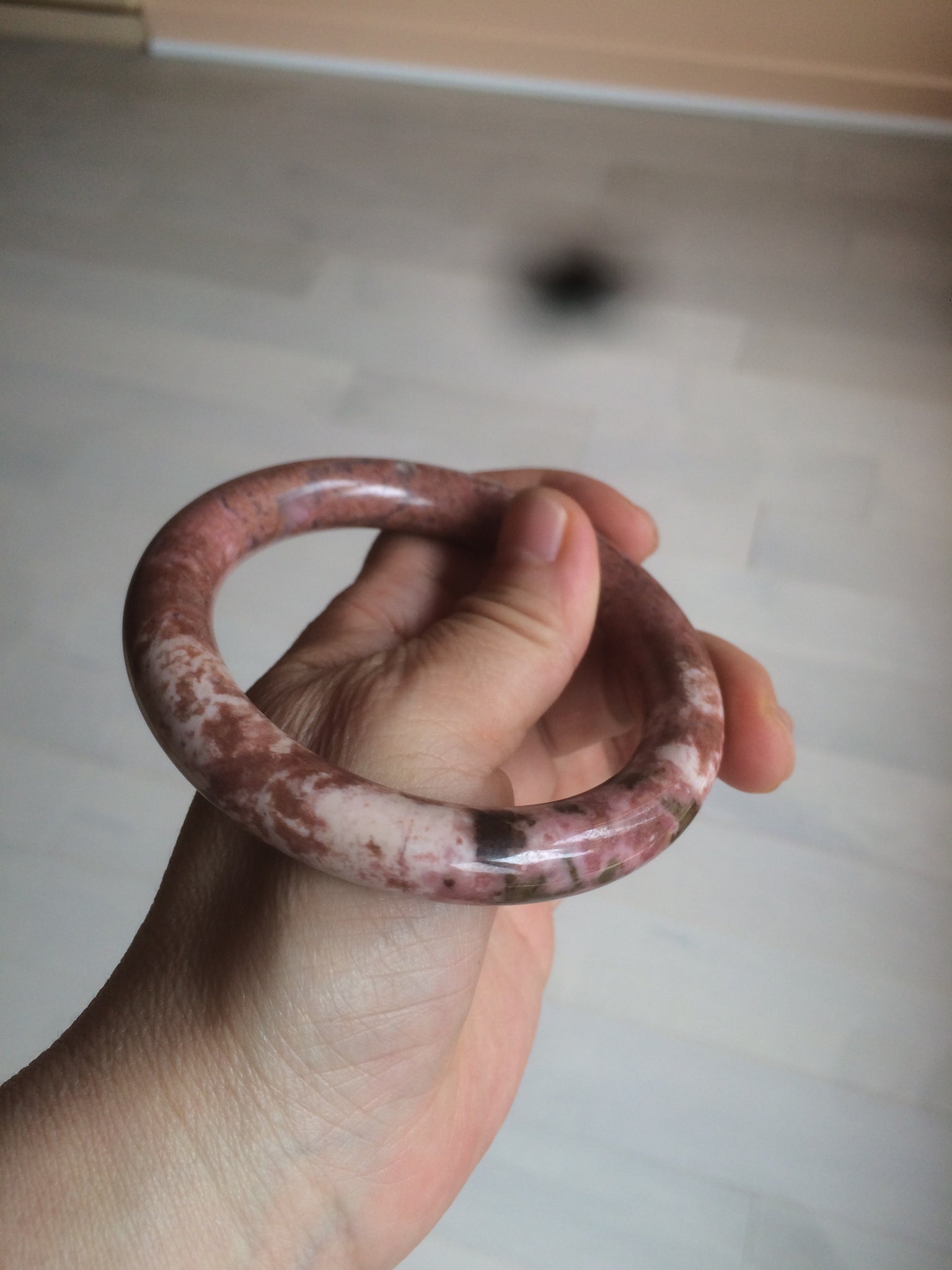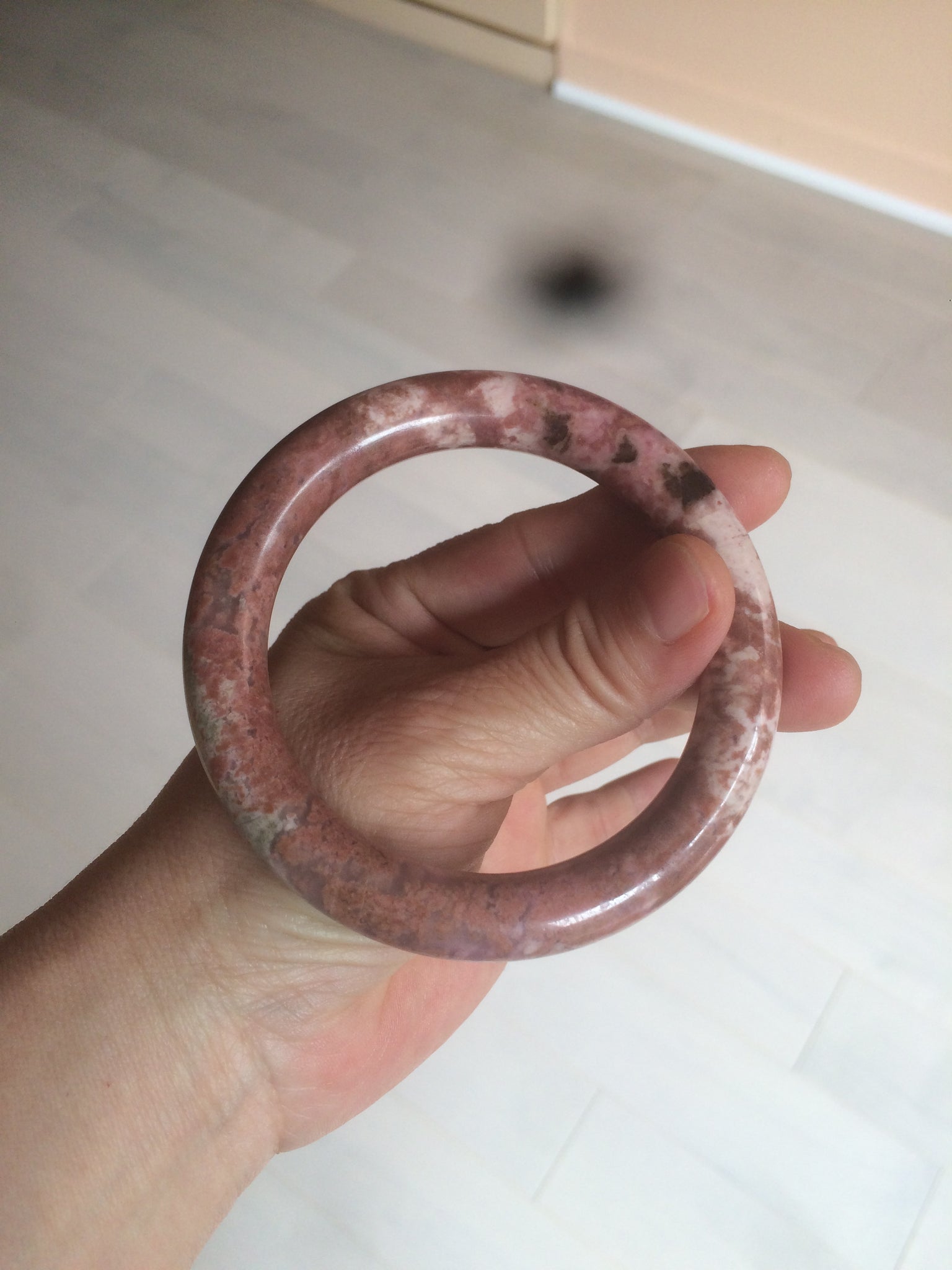 58.9mm 100% natural Etruscan earth red round cut rose stone (Rhodonite)bangle XY76