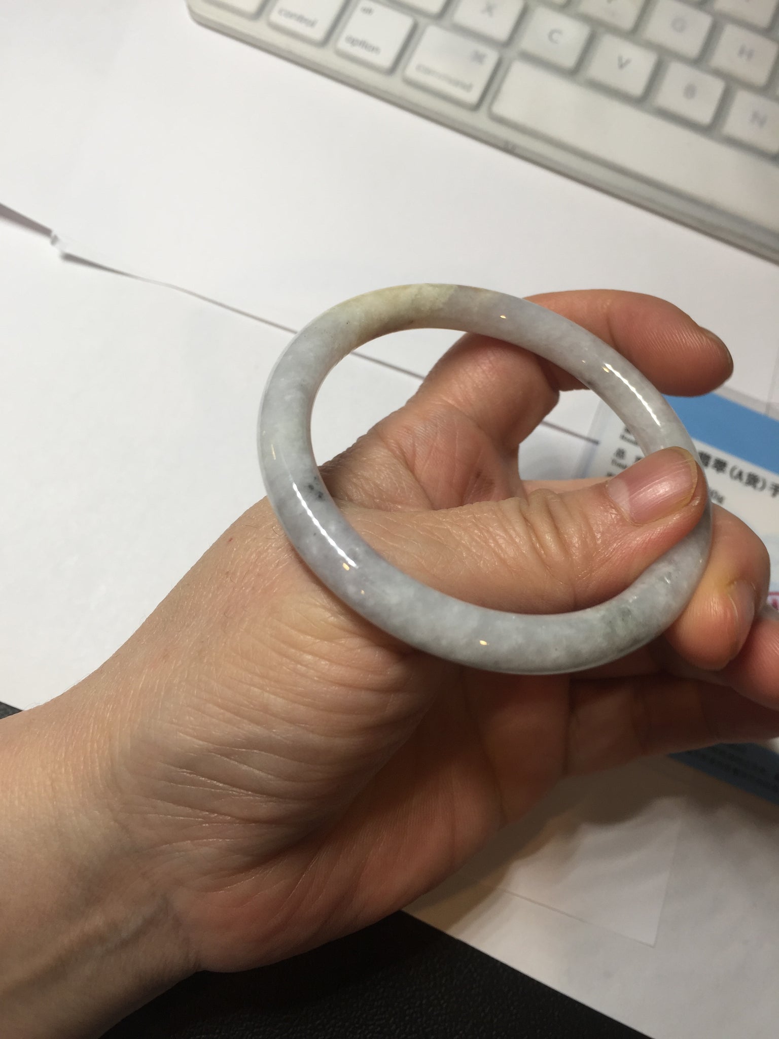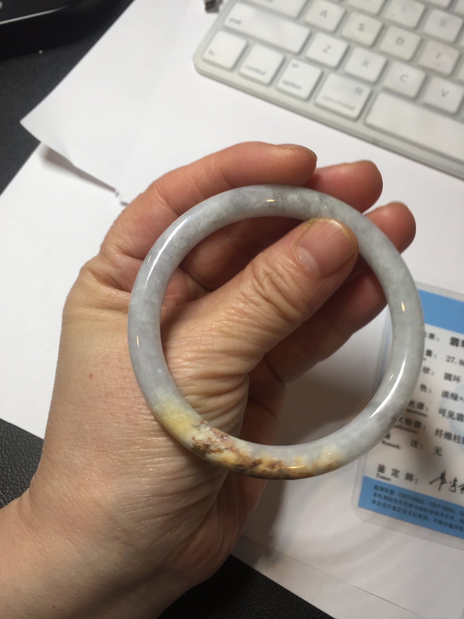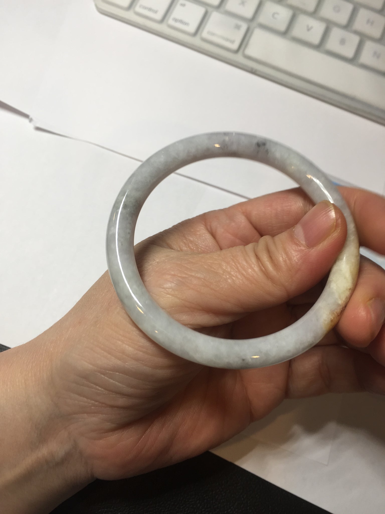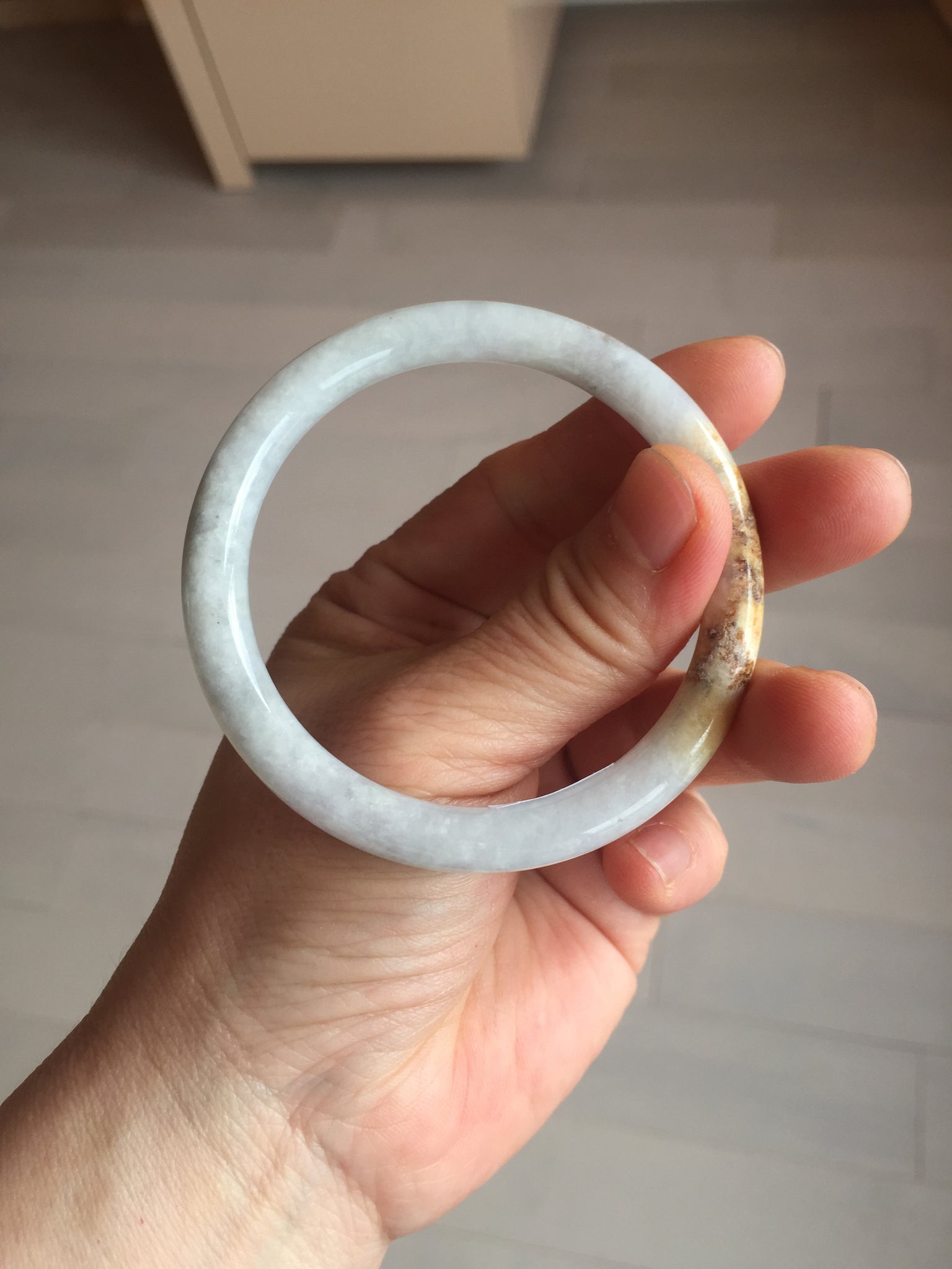 One yellow rough surface. Some hairlines or cotton lines. Some black spots. Not transparent or watery. The purple is lighter than in the photos due to the purple color always being more camera-friendly.