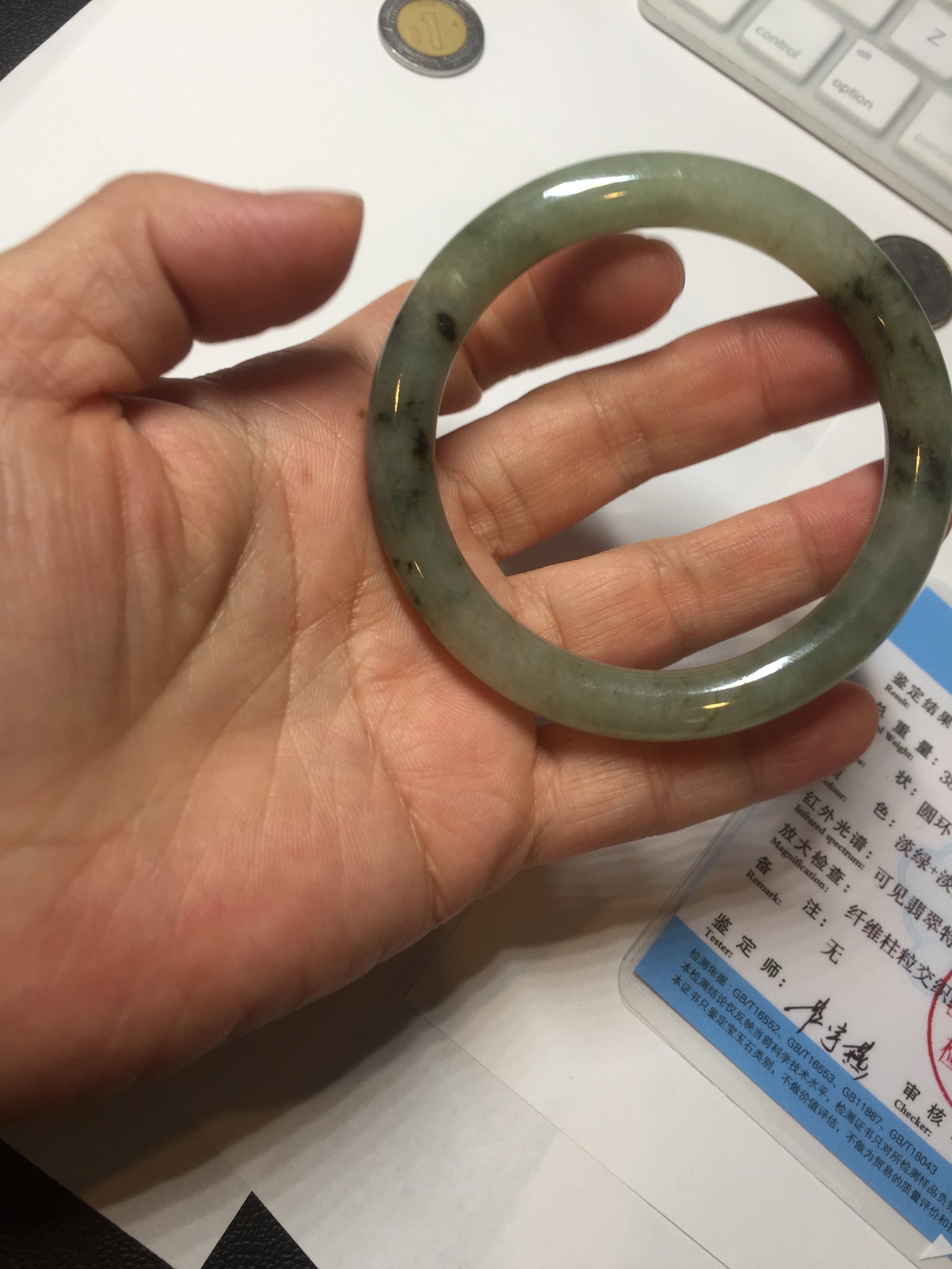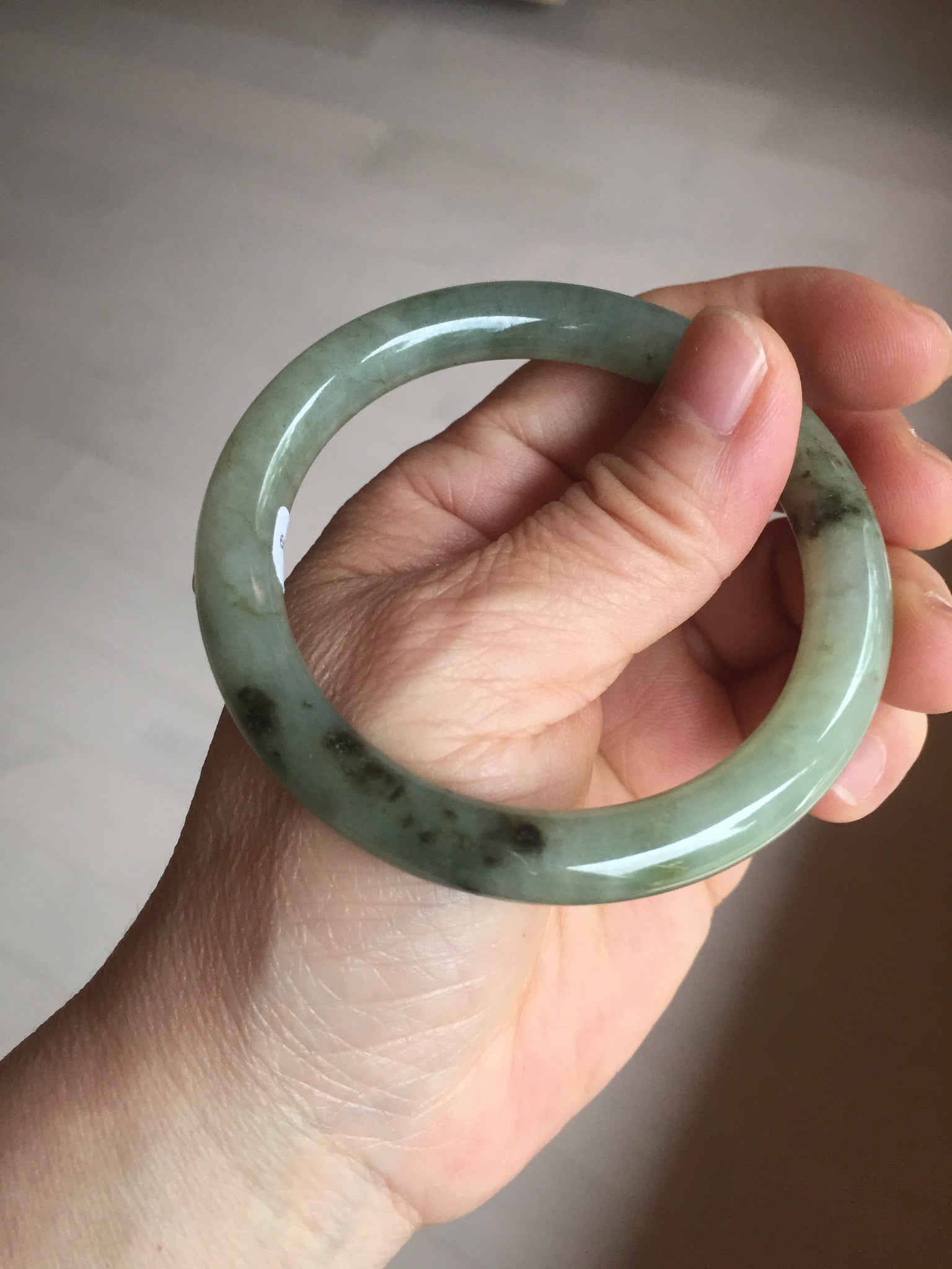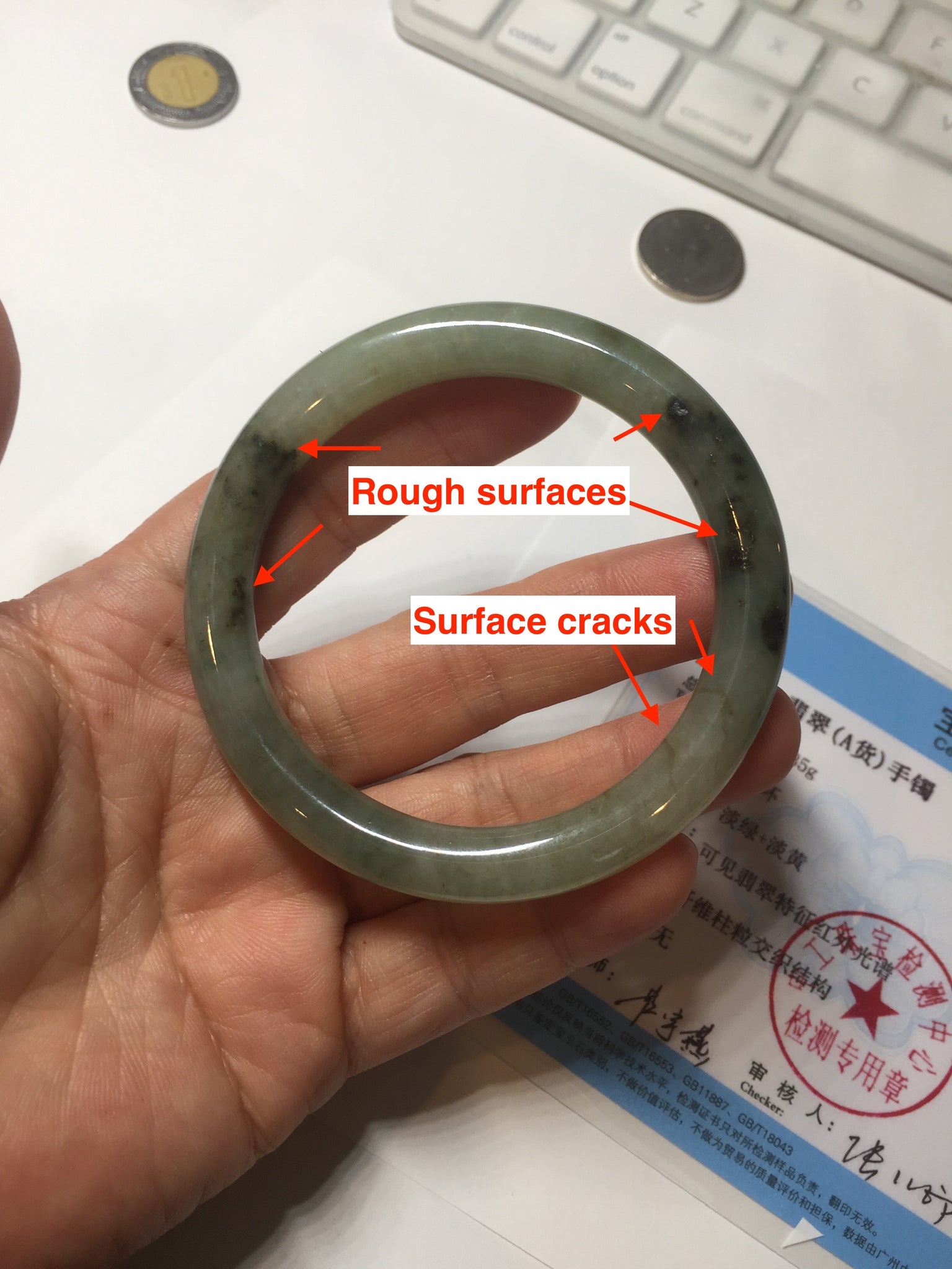 Some color root cracks or hairlines. Some dark green/black color root rough surfaces due to the texture difference. Some cotton lines, cotton spots. Has some gray color.
