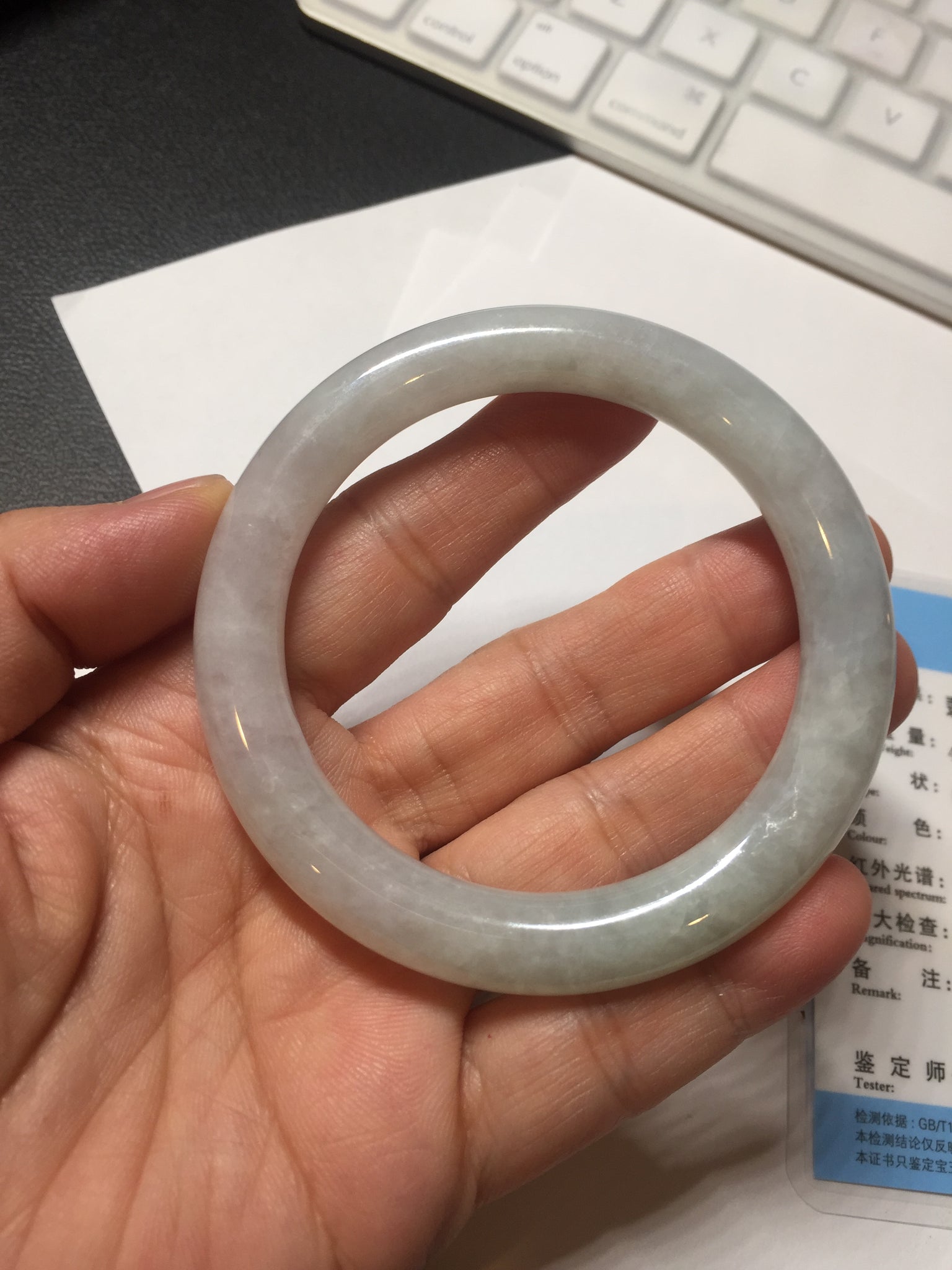 54.5mm Certified Type A 100% Natural light green/purple round cut Jadeite Jade bangle AM98-2799