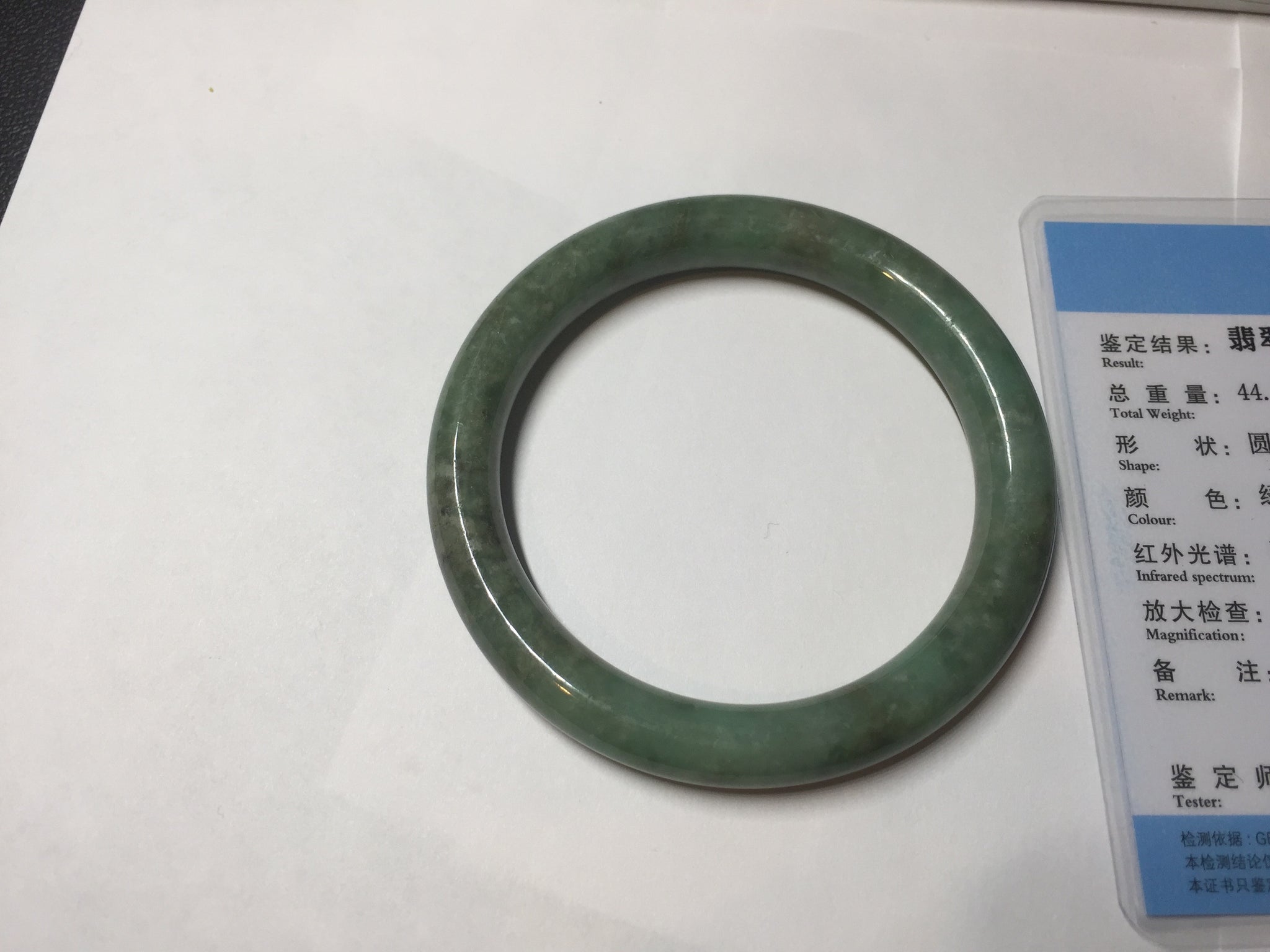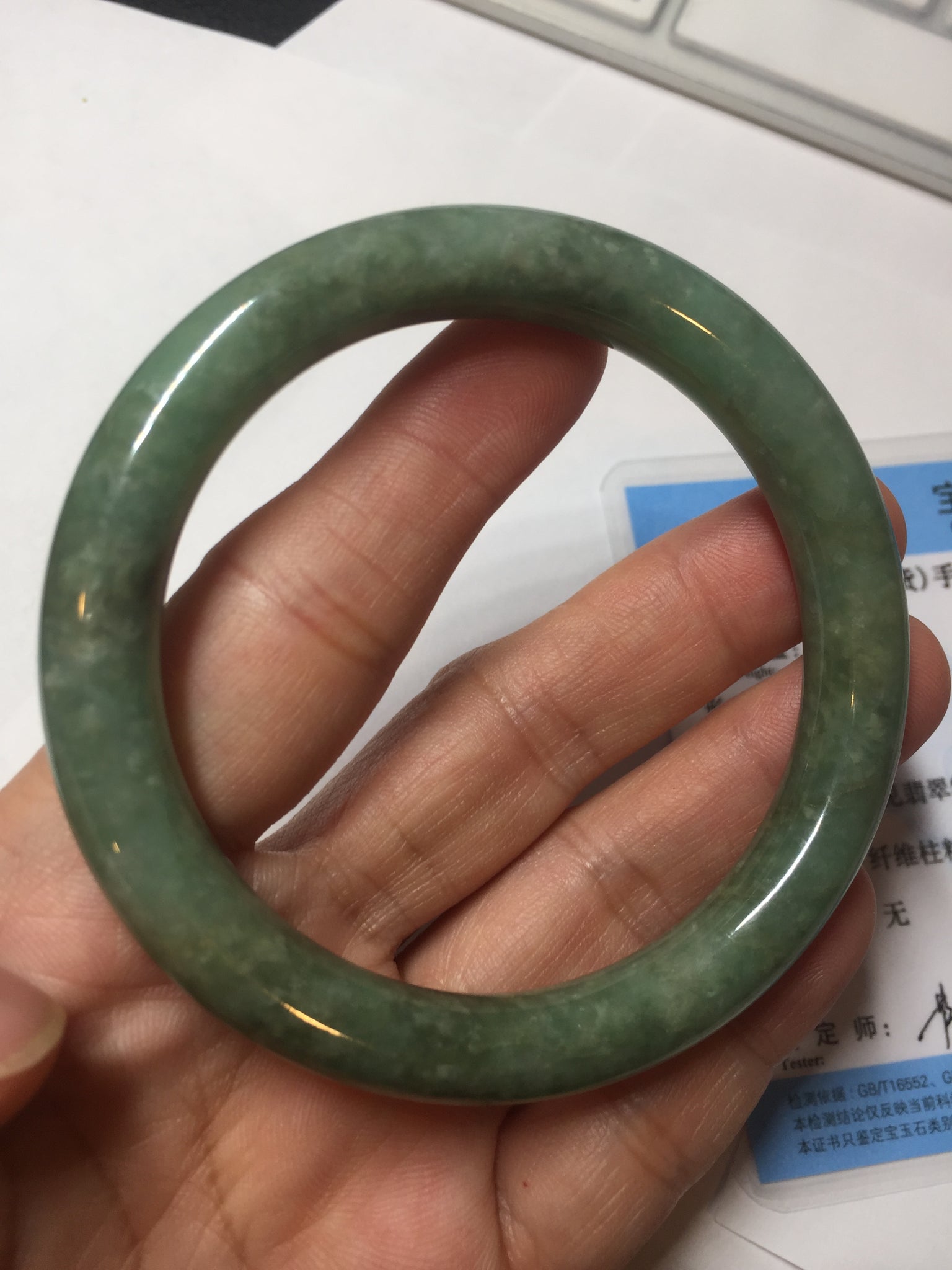 55.5mm Certified Type A 100% Natural  dark green/gray round cut Jadeite Jade bangle D155-5370