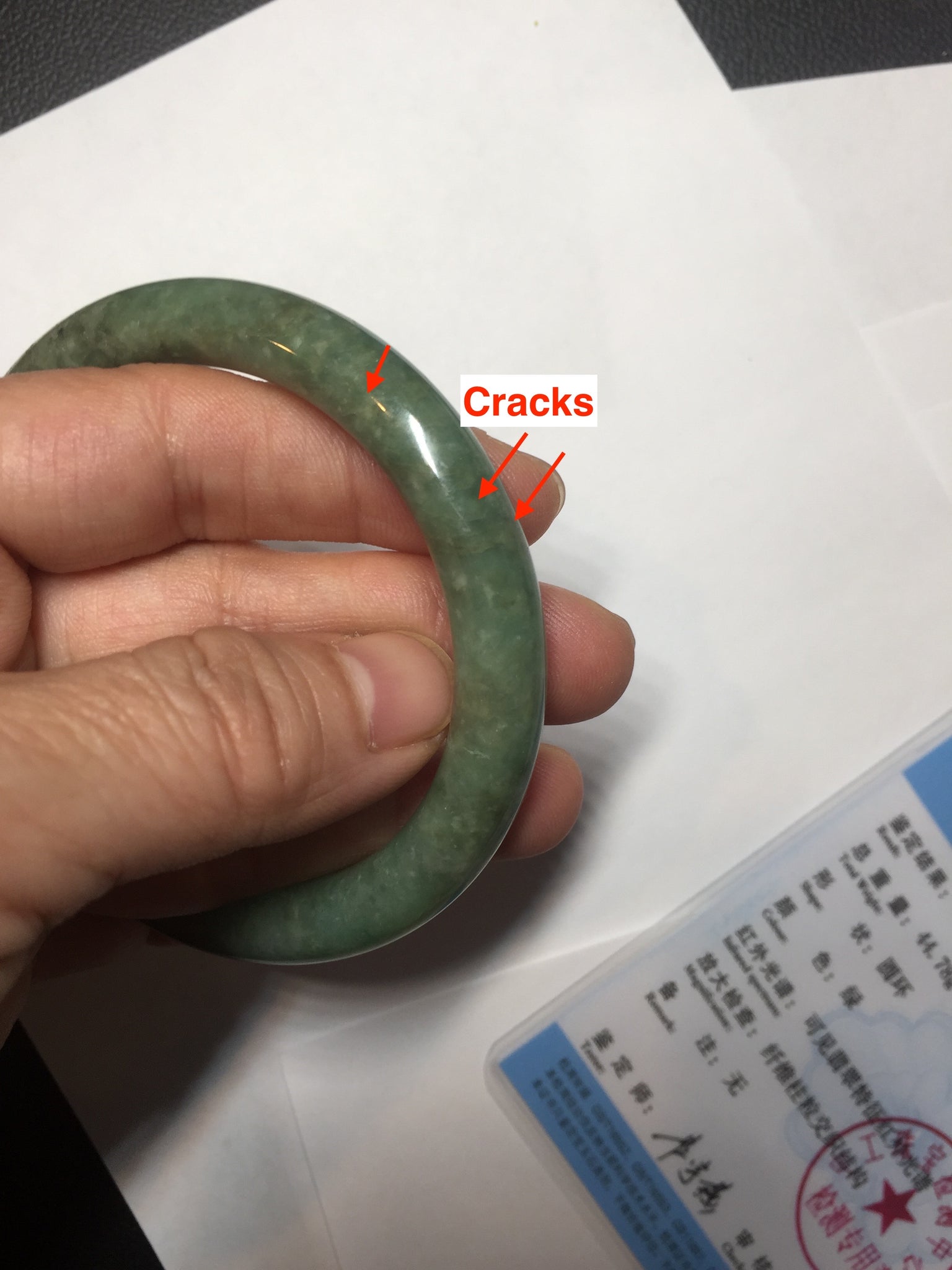 Some surface cracks. The bangle is solid (Guaranteed!). Some tiny rough surfaces, hairlines, cotton areas, cotton lines, and gray/black colors. Not transplant.