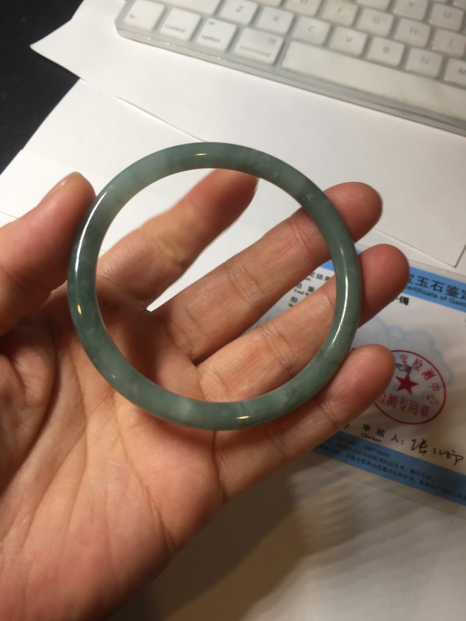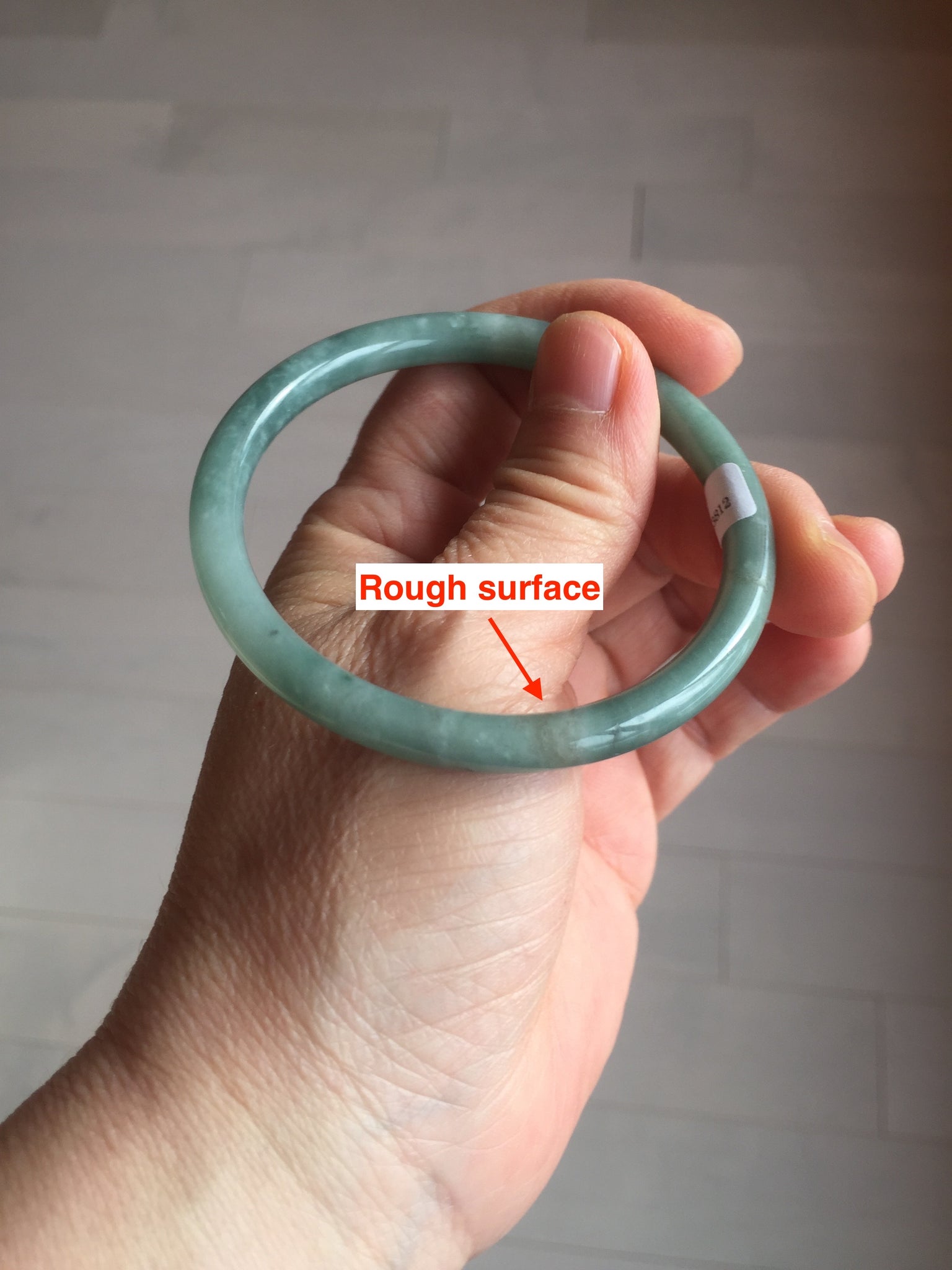 No crack. No hairlines. One rough surface. Some cotton lines, cotton areas, or spots. The bangle has some gray/black color. Not transparent. Not watery.