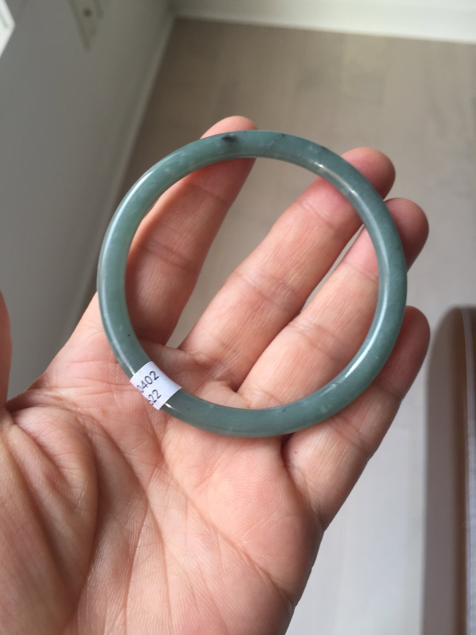 • Load image into Gallery viewer, 55mm Certified Type A 100% Natural light green/blue slim round cut Guatemala Jadeite bangle BS59-4622