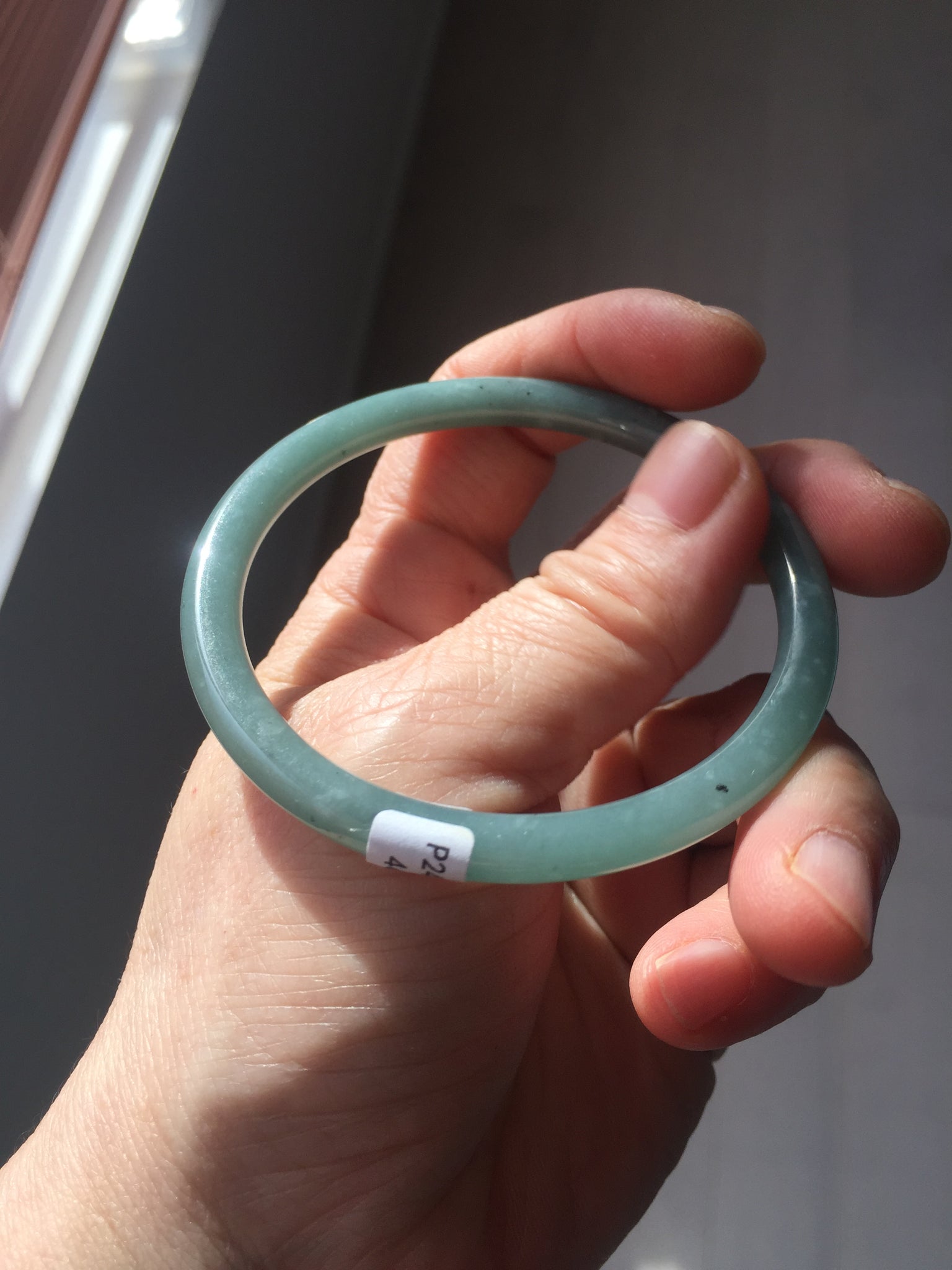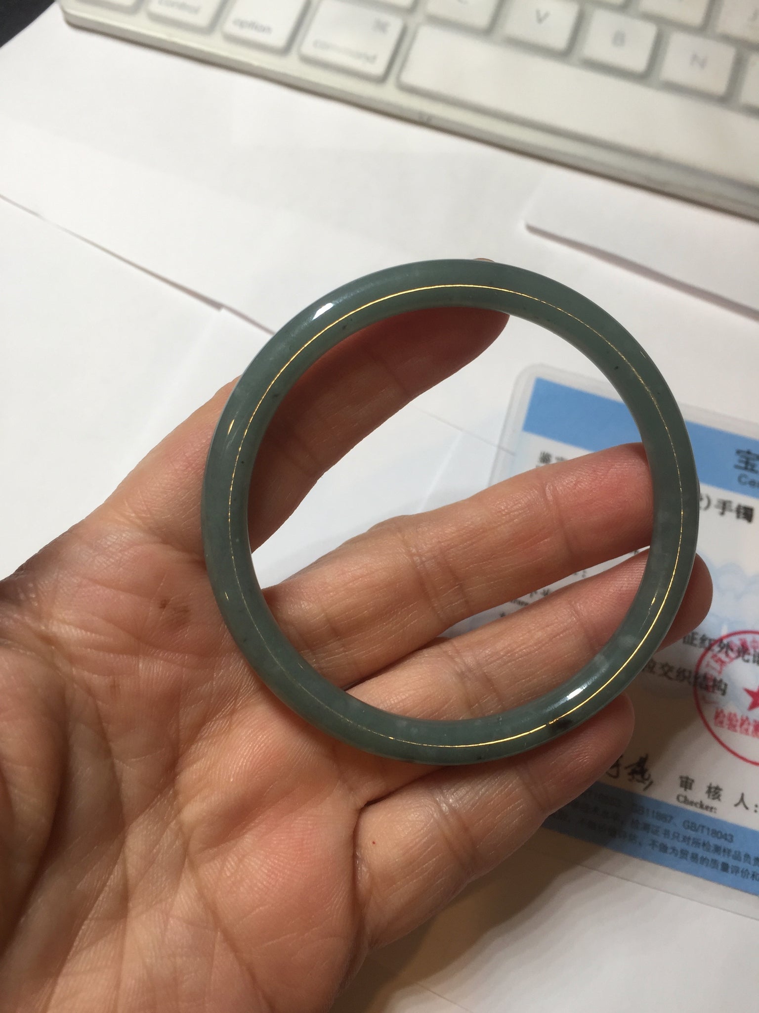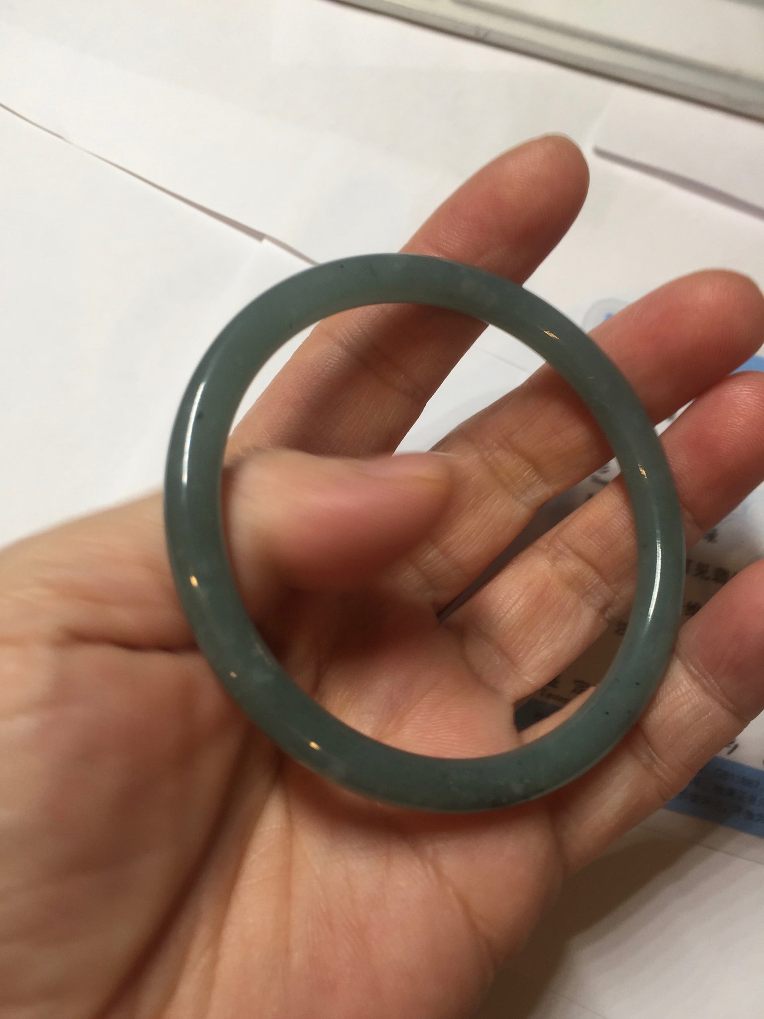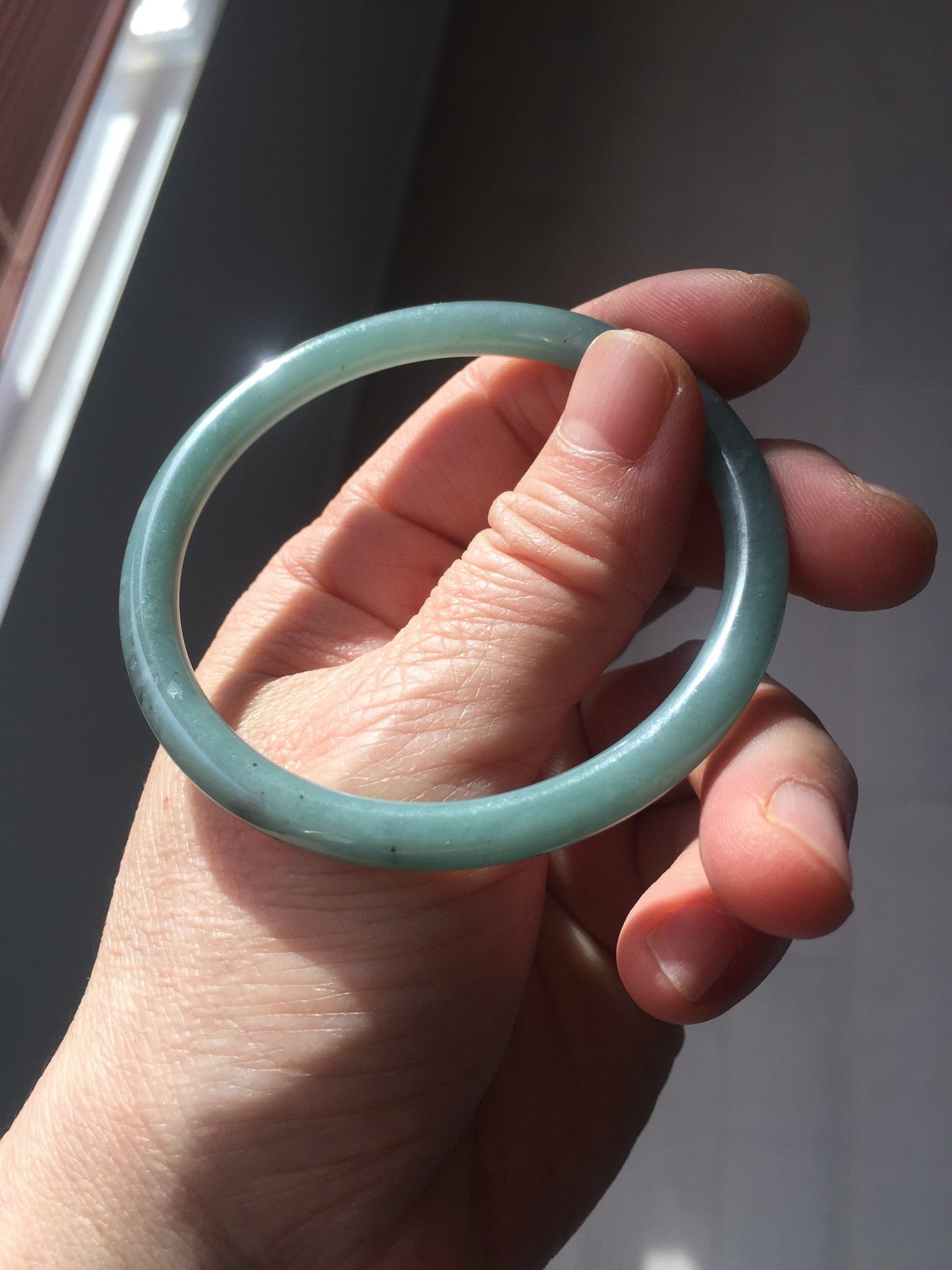 55mm Certified Type A 100% Natural light green/blue slim round cut Guatemala Jadeite bangle BS59-4622