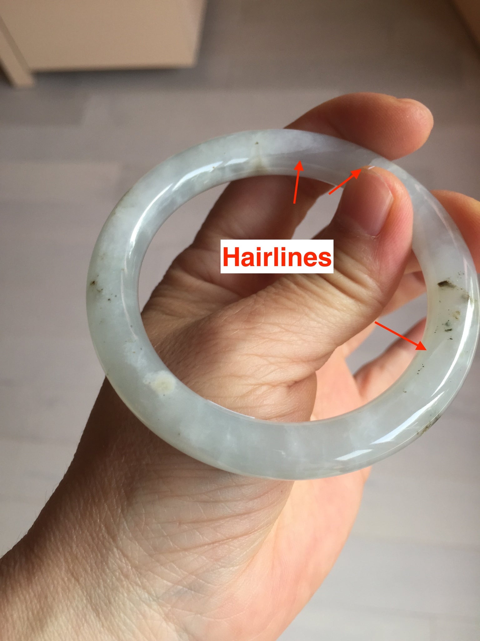 One long crack. Some hairlines and cotton lines, brown/ black rough surfaces and spots, cotton areas, and cotton spots.