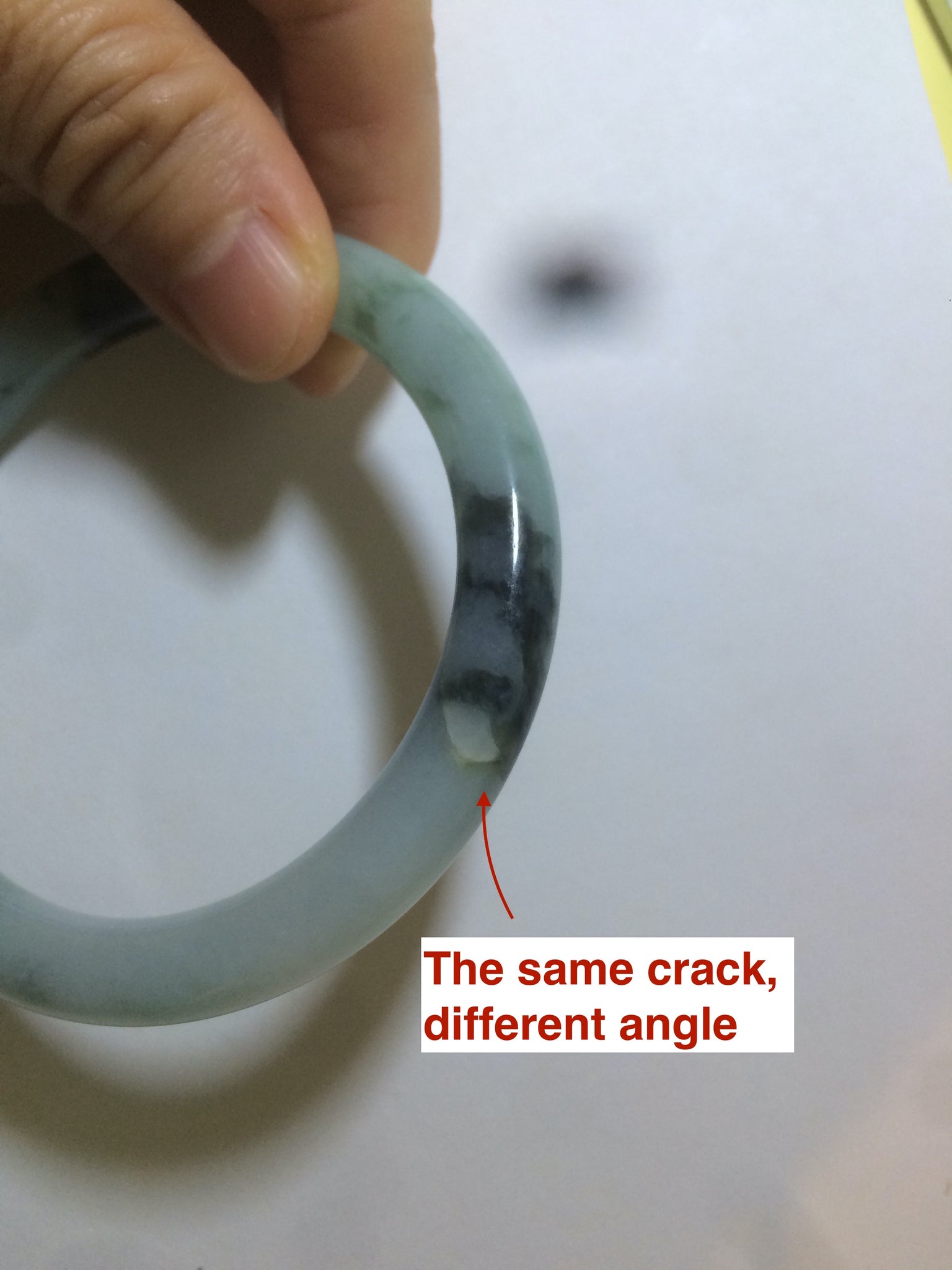 2 cracks with a tiny amount of wax residues. Quite a lot of white hairlines(白根纹). Almost invisible. Won't influence the firmness. The surface of the dark green area may not so smooth.