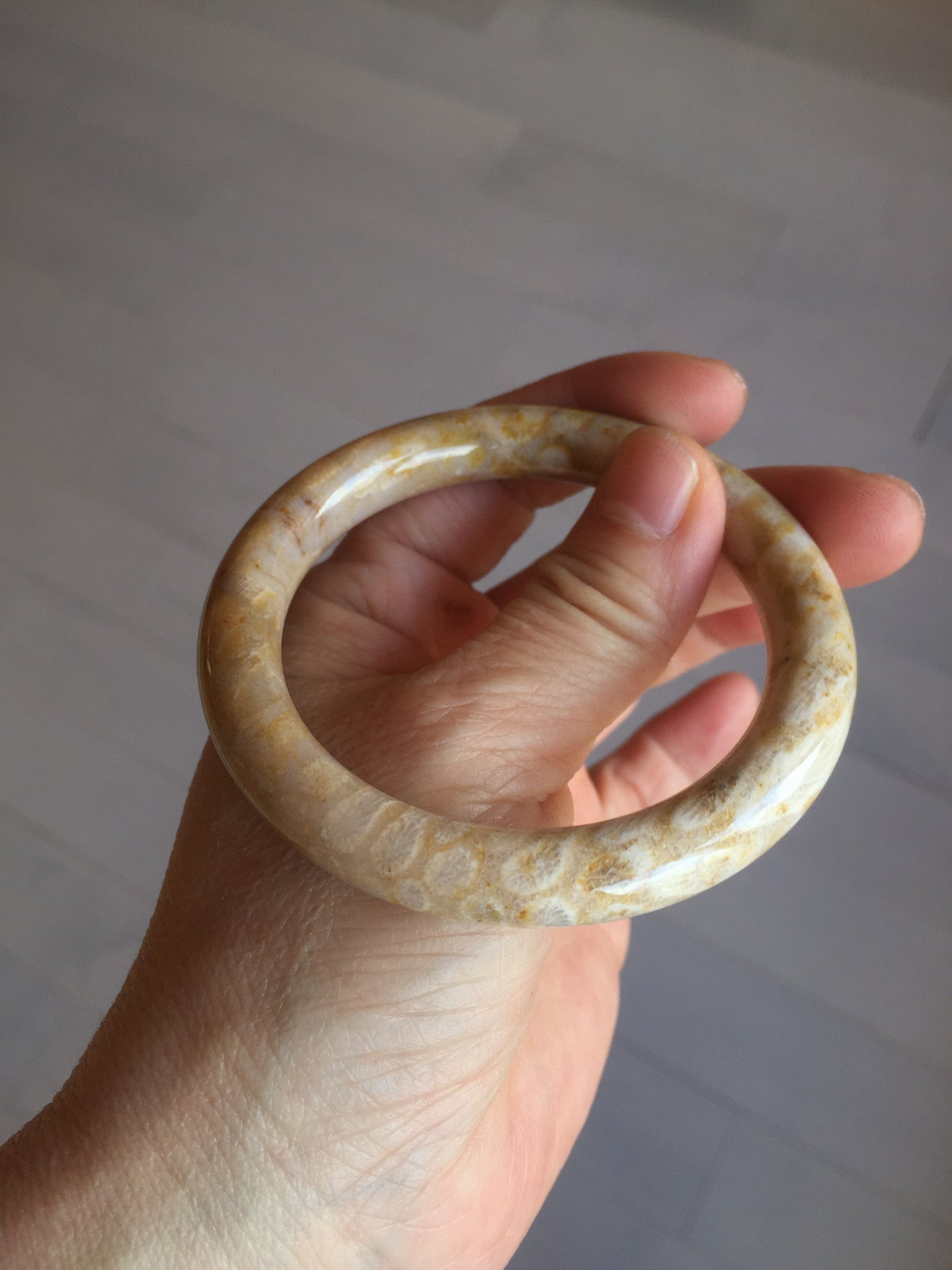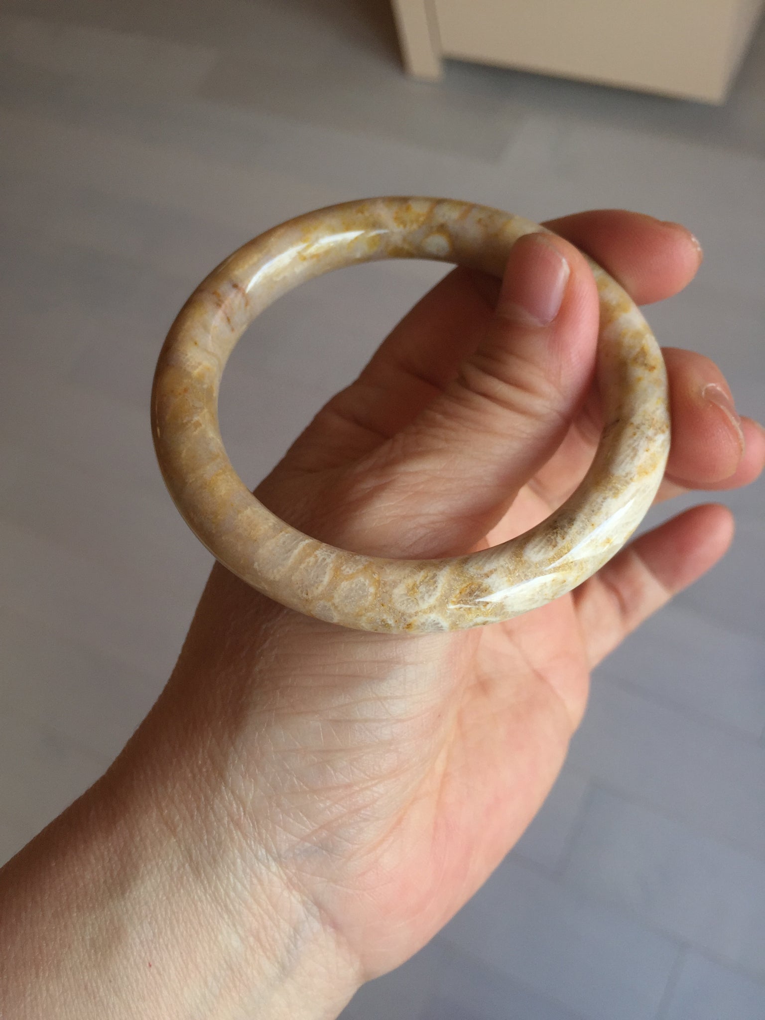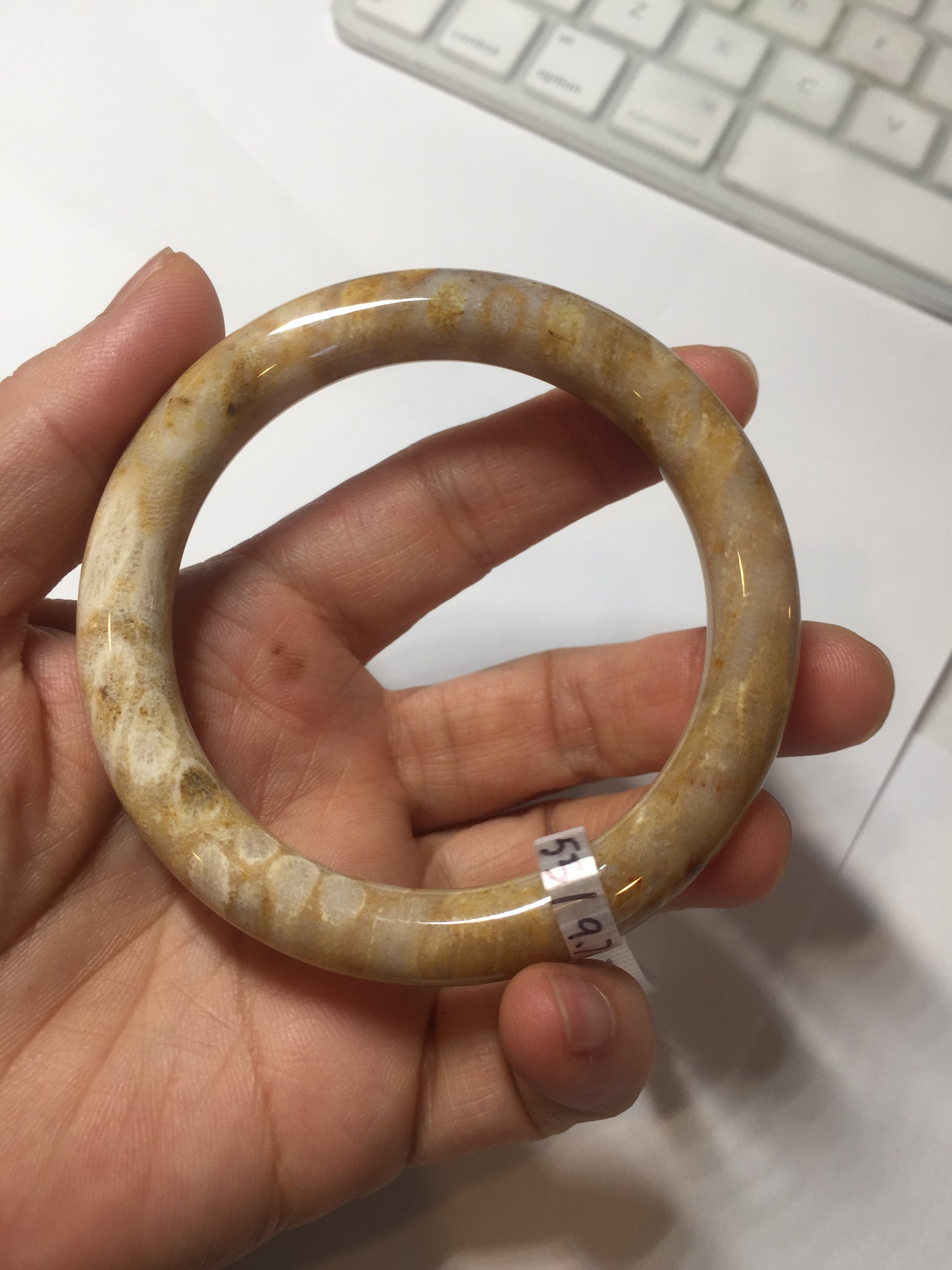 55mm 100% natural light brown yellow round cut Coral Jade (珊瑚玉) bangle SY120
