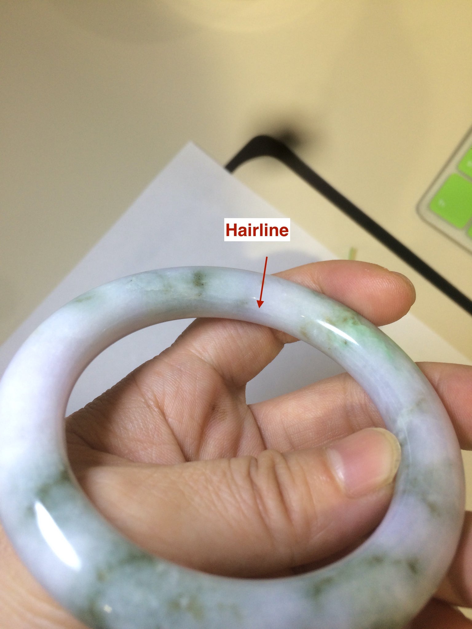 No crack. Some hairlines (photos may not show all). One hairline is long. One rough surface. The purple is extremely light. Lighter than photos.