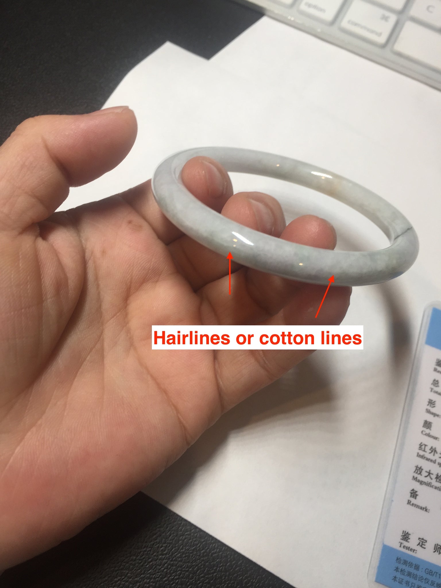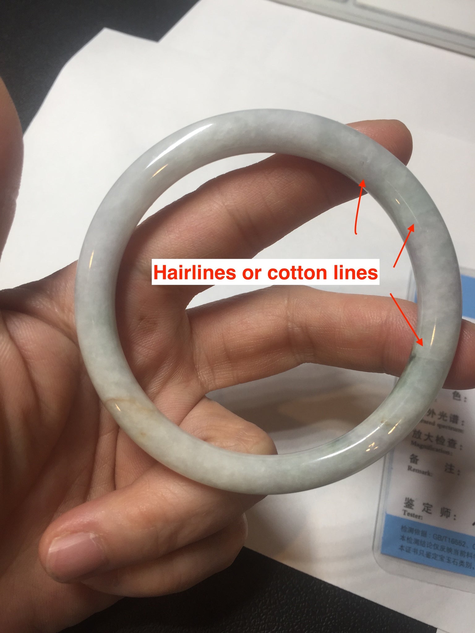 Some cotton lines and hairlines (Photos may not show all of them), and cotton areas. The purple is really light, lighter than in the photos.