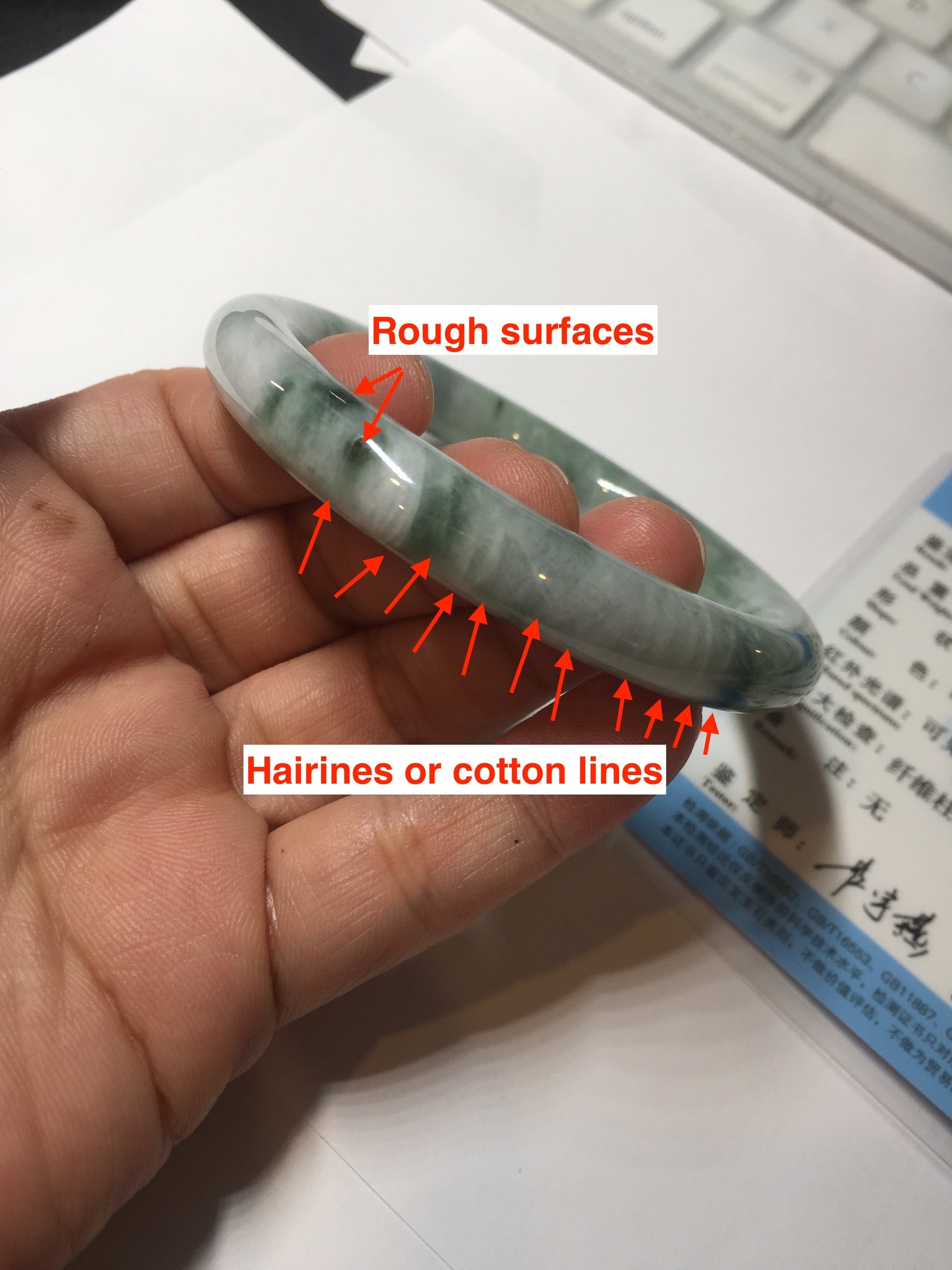 No crack. Quite a lot of hairlines or cotton lines. Some small rough surfaces. Some small rough surfaces make come across with hairline or cotton lines. They are not cracks. Some cotton areas, and cotton spots. Not transparent.