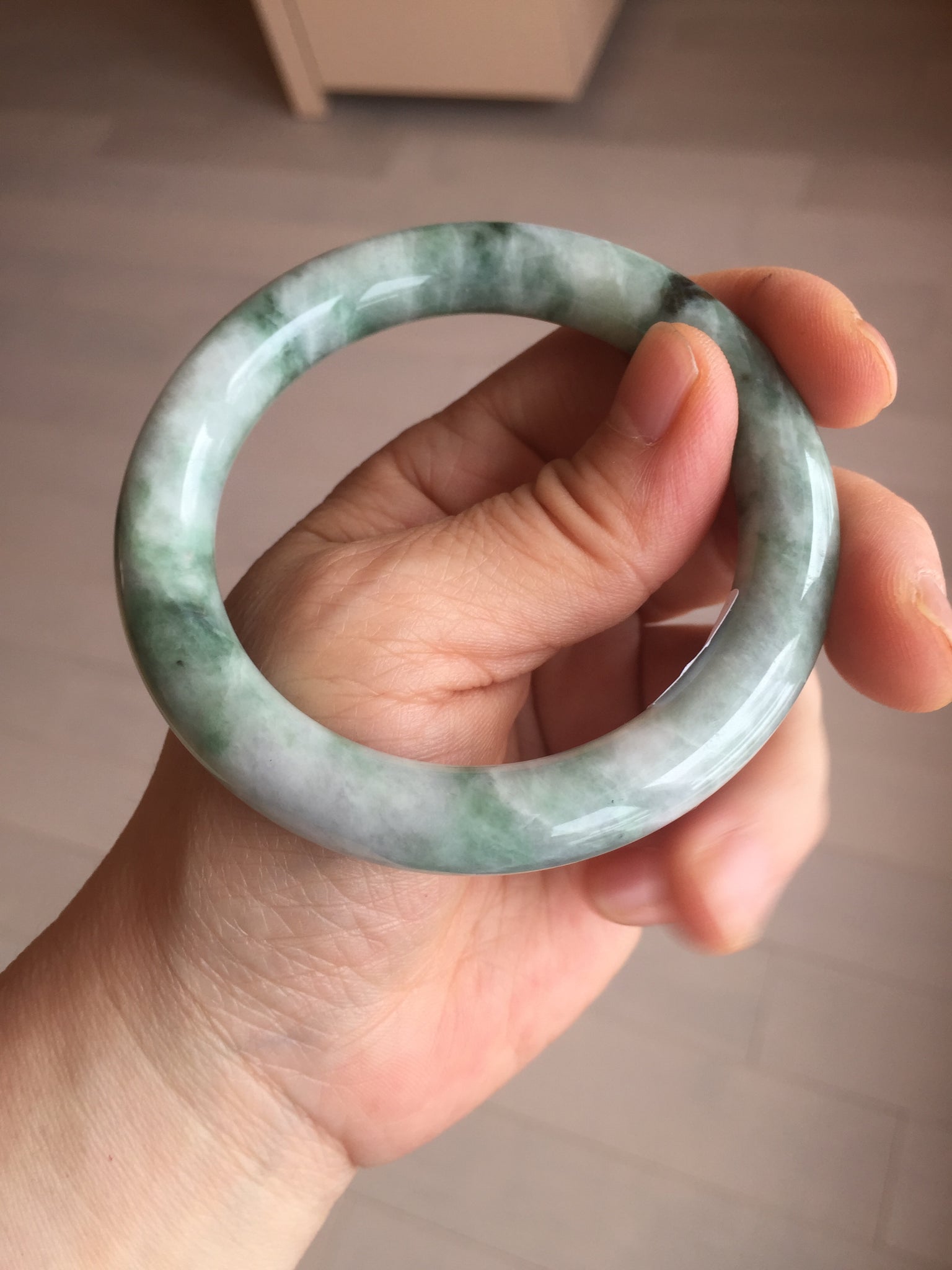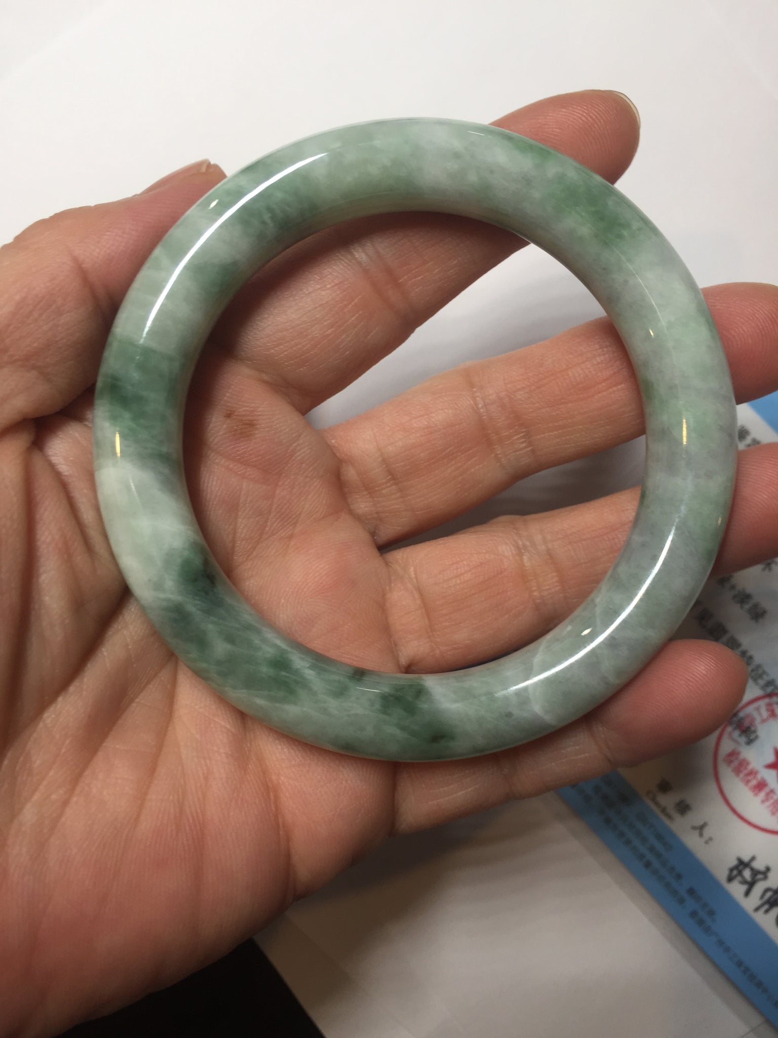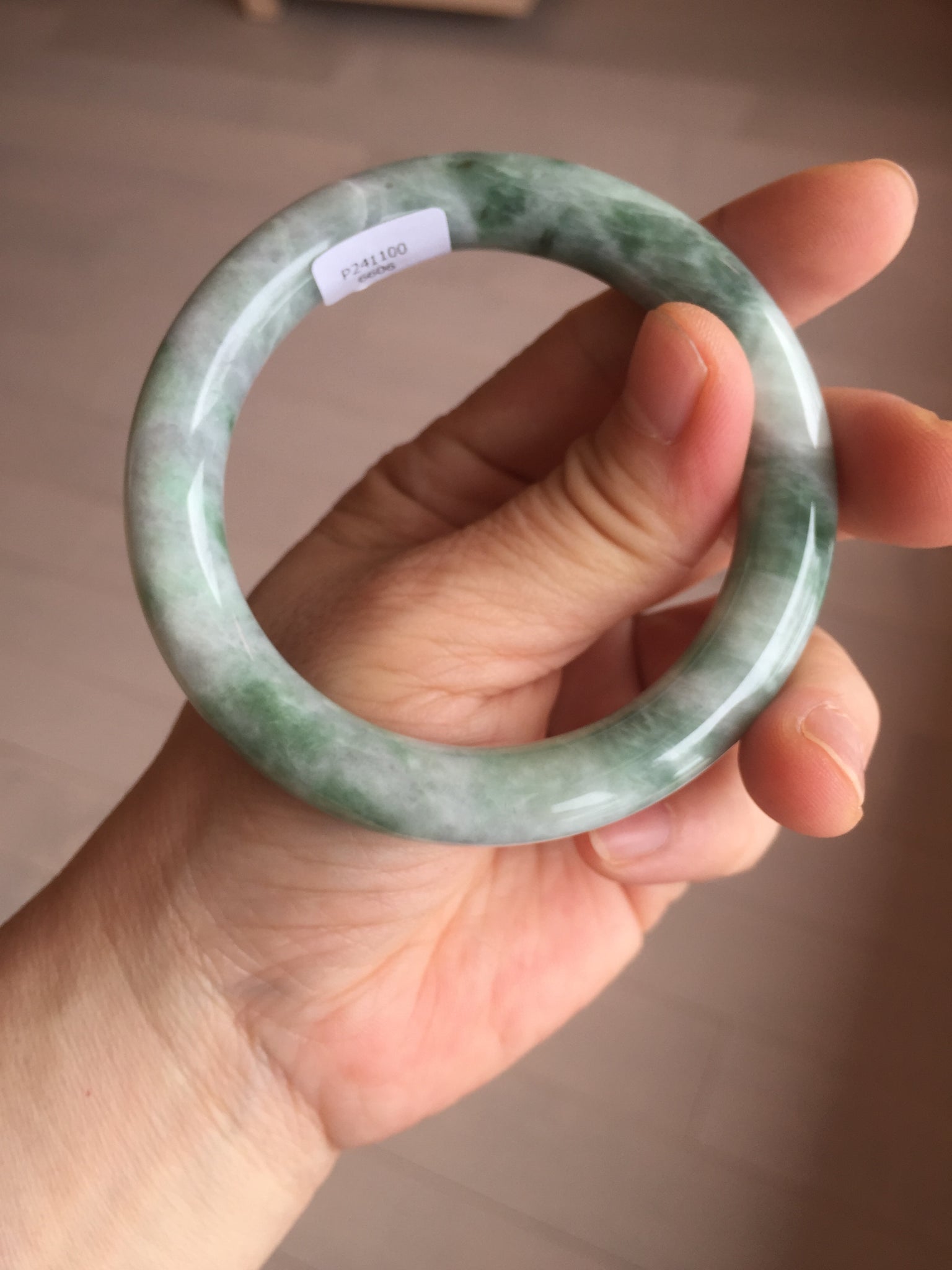 May have surface fissures. Quite a lot of hairlines or cotton lines. The bangle is solid. Some small rough surfaces. Some small rough surfaces may come across hairlines or cotton lines. They are not cracks. Some cotton areas, and cotton spots. Not transparent.