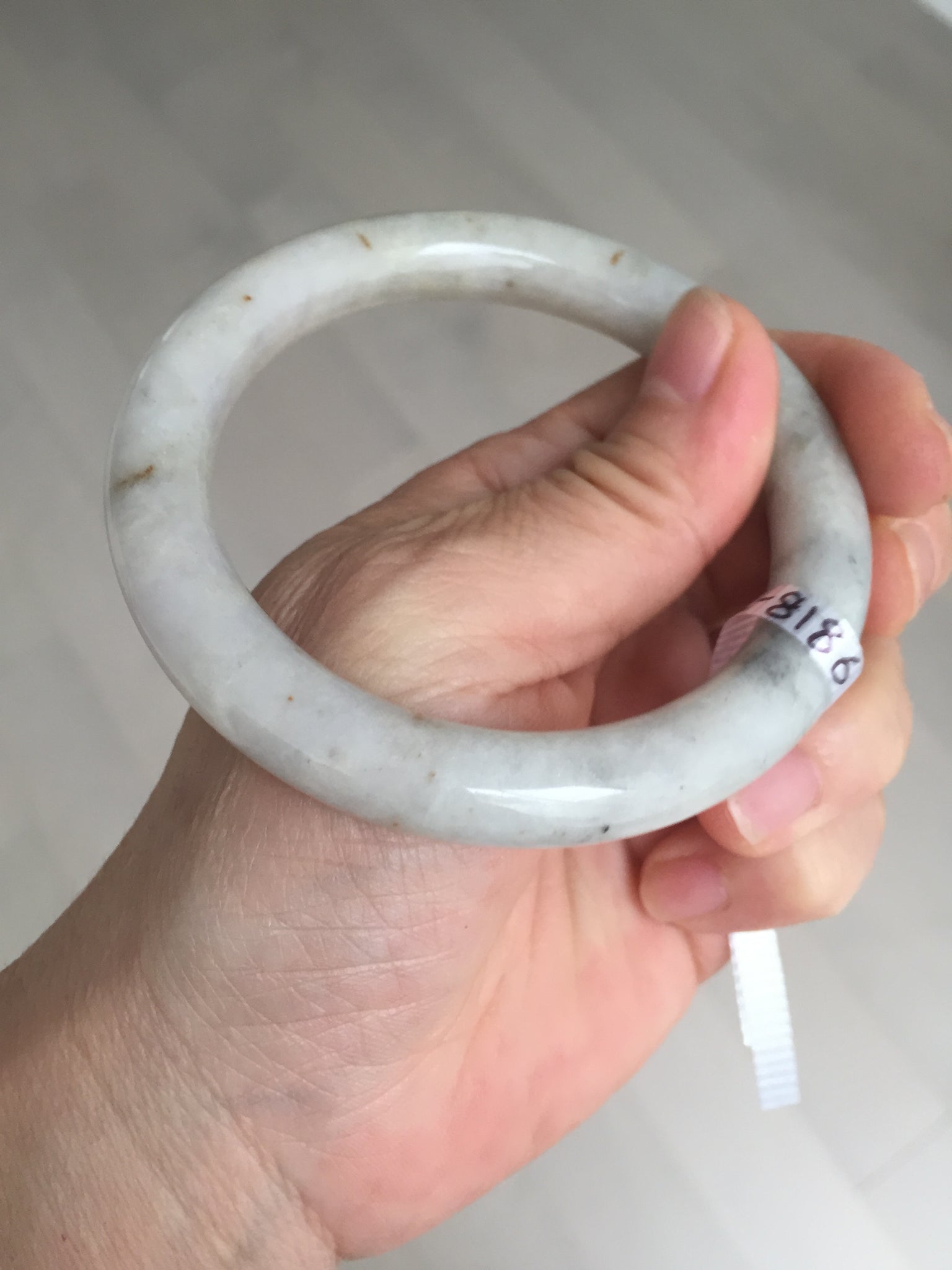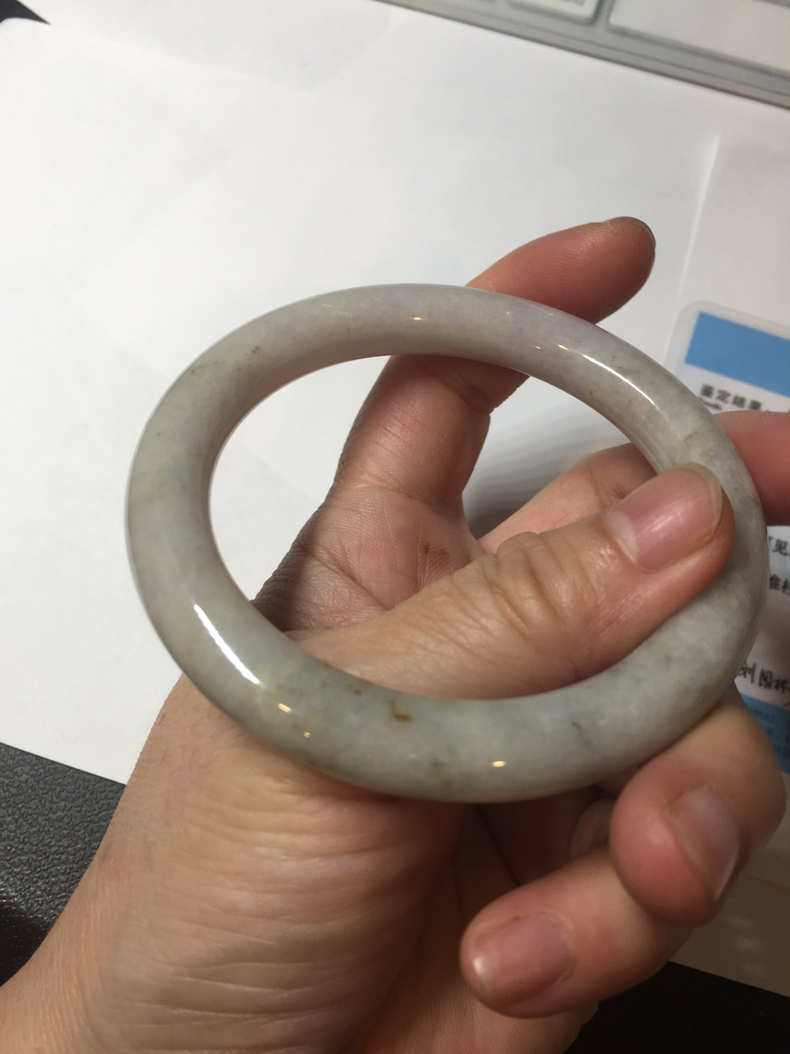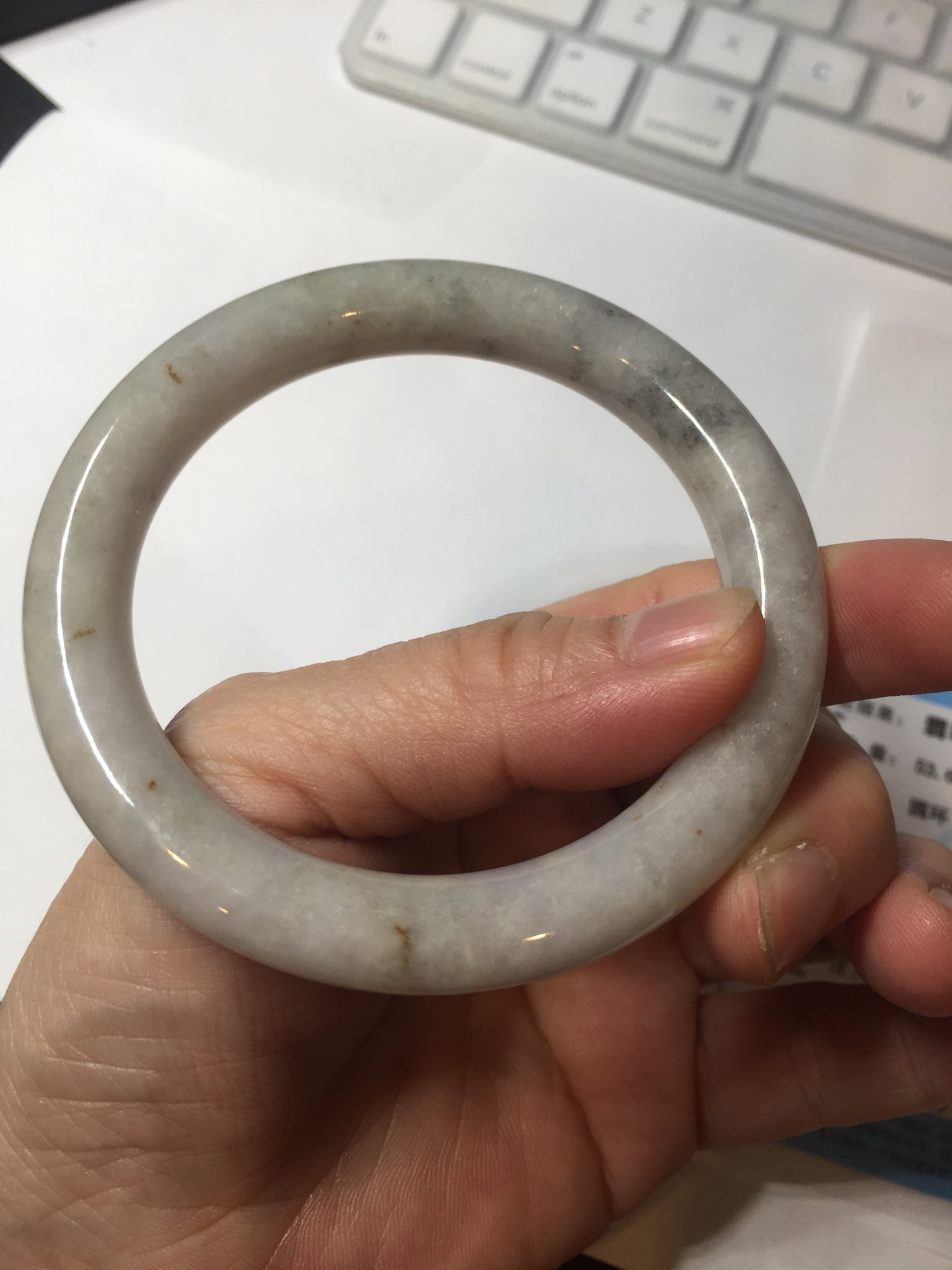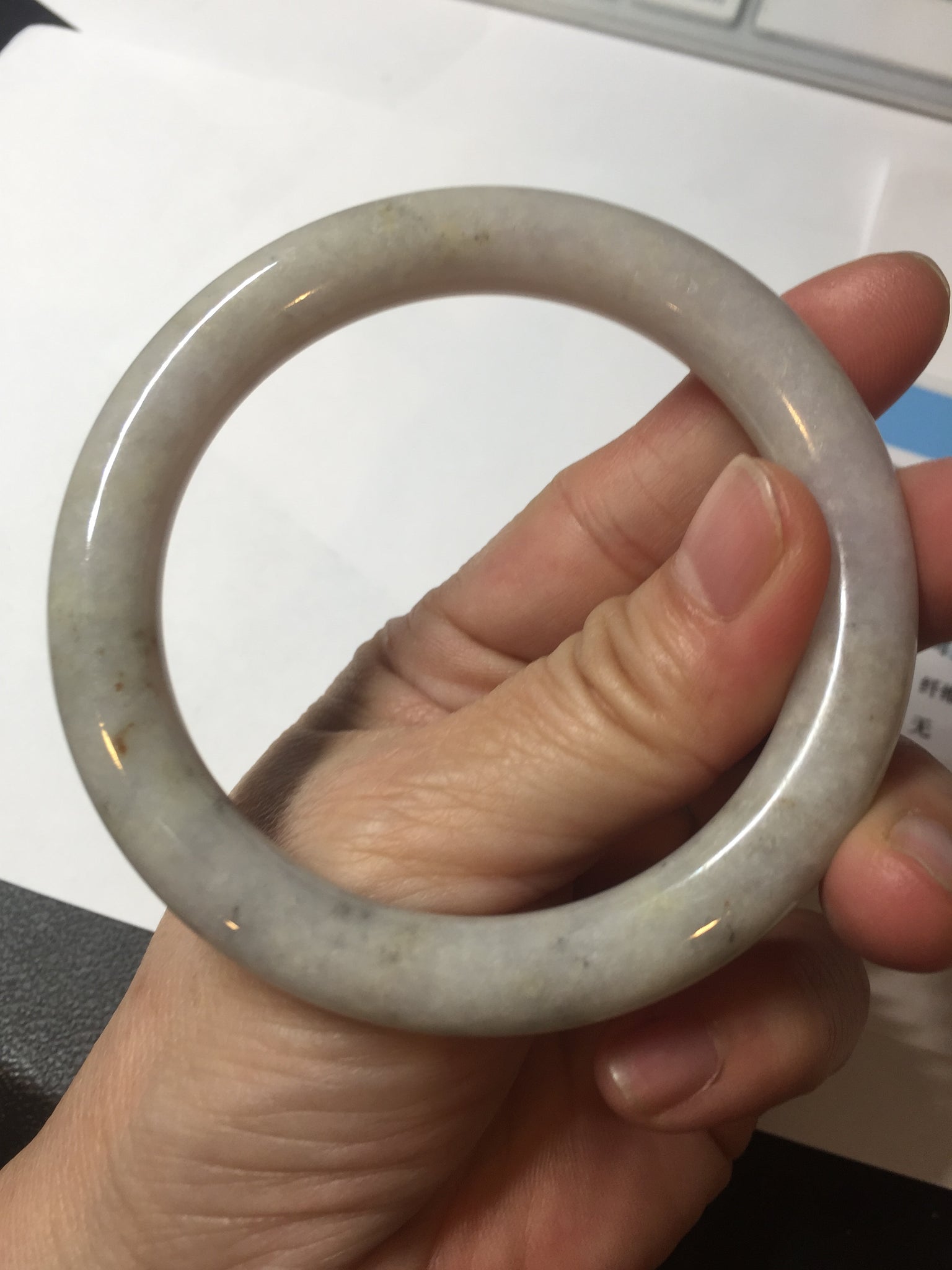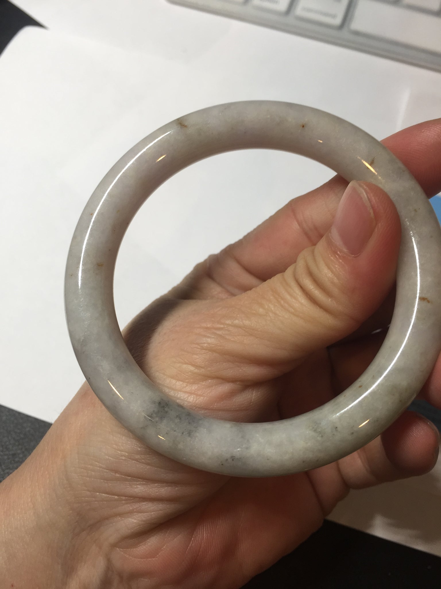 No cracks or hairlines. Some cotton areas, spots, and black/ dark areas. The purple is super light, way lighter than in the photos.