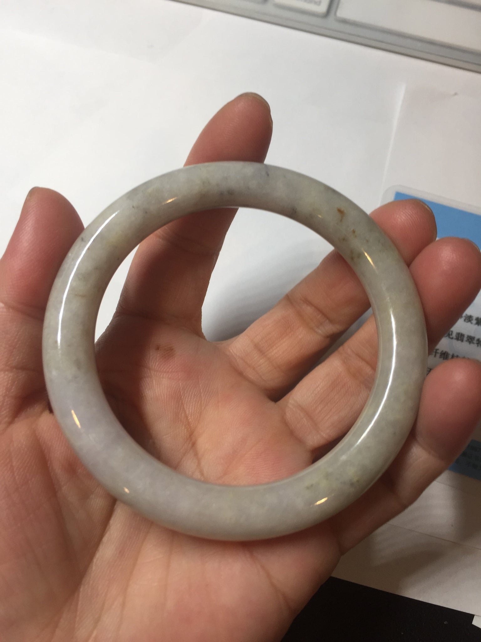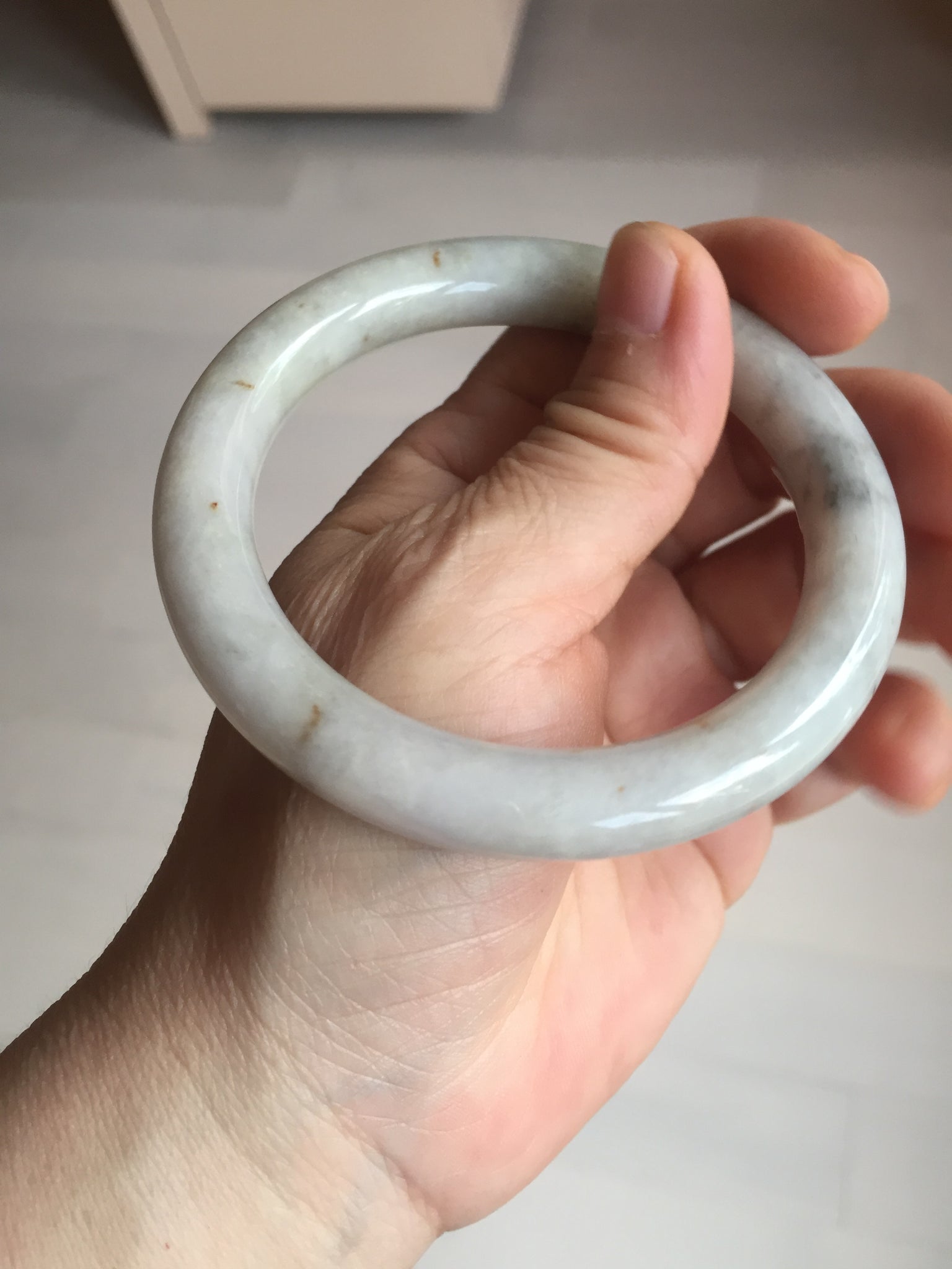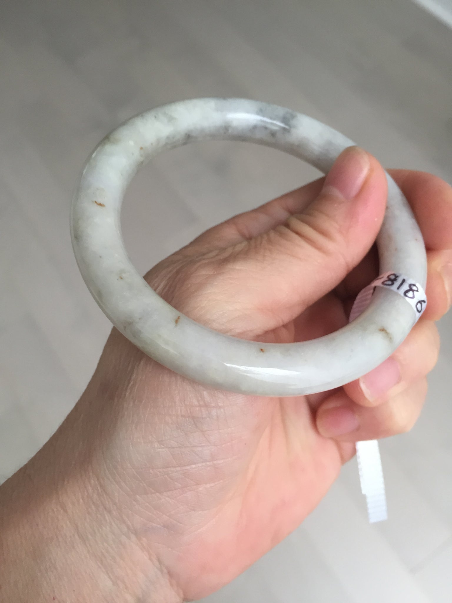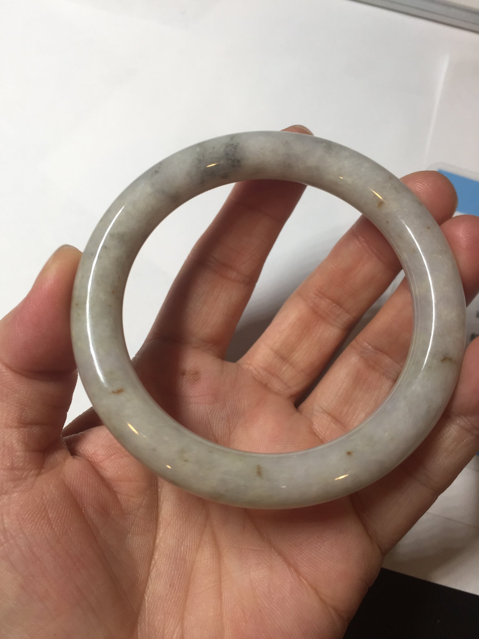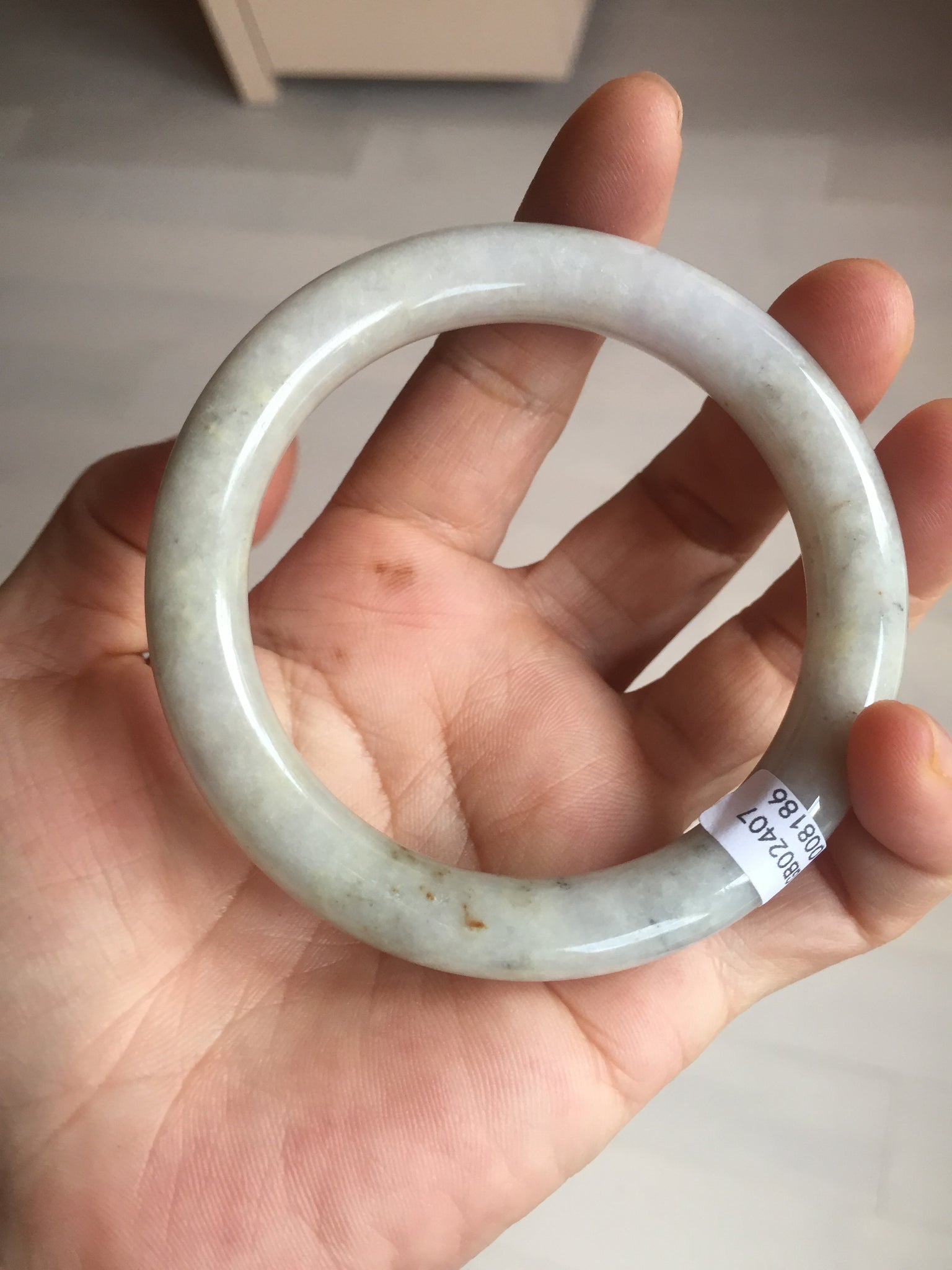 No cracks or hairlines. Some cotton areas, spots, and black/ dark areas. The purple is super light, way lighter than in the photos.