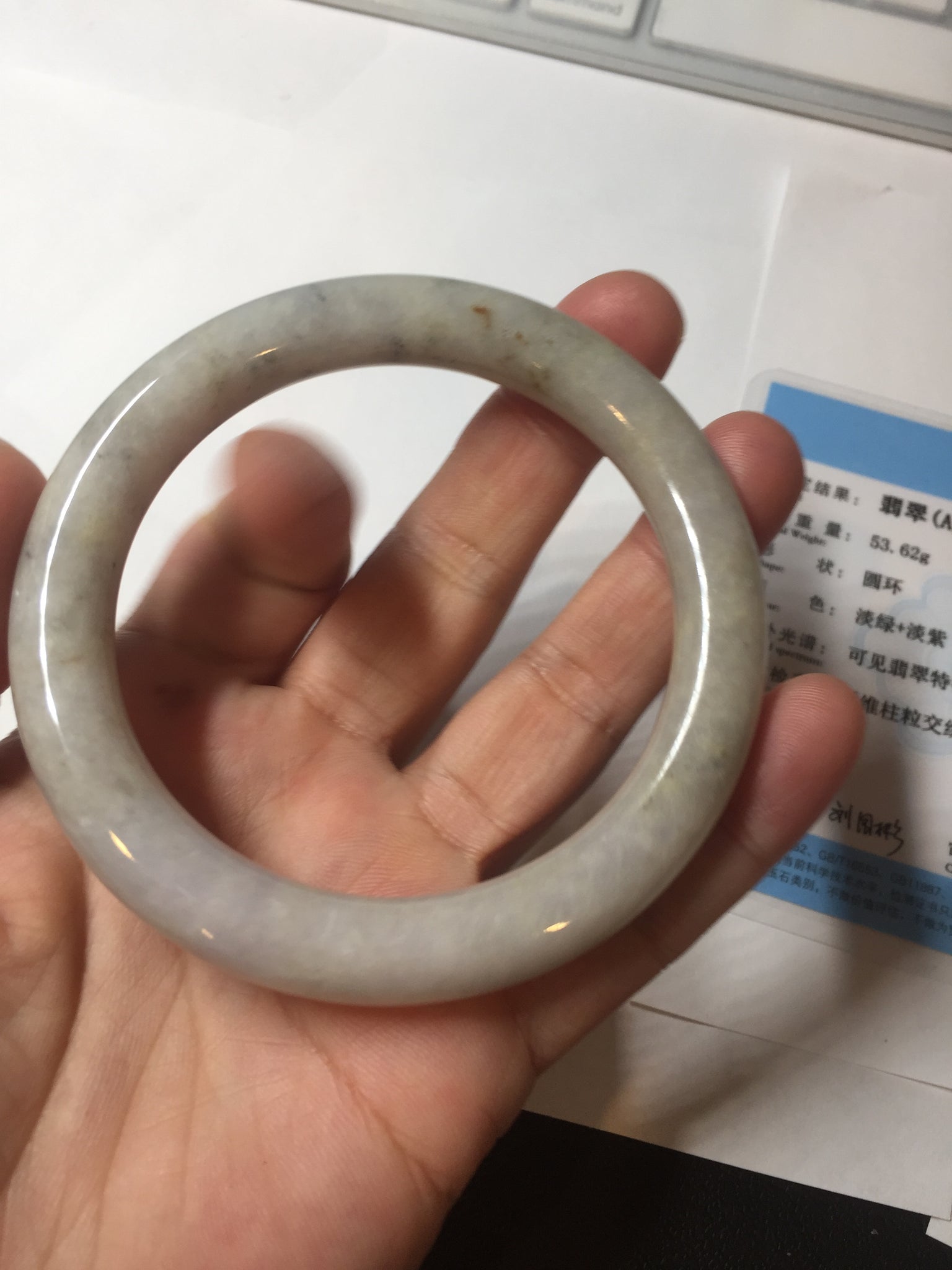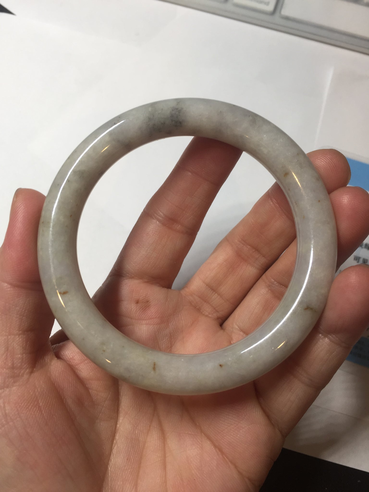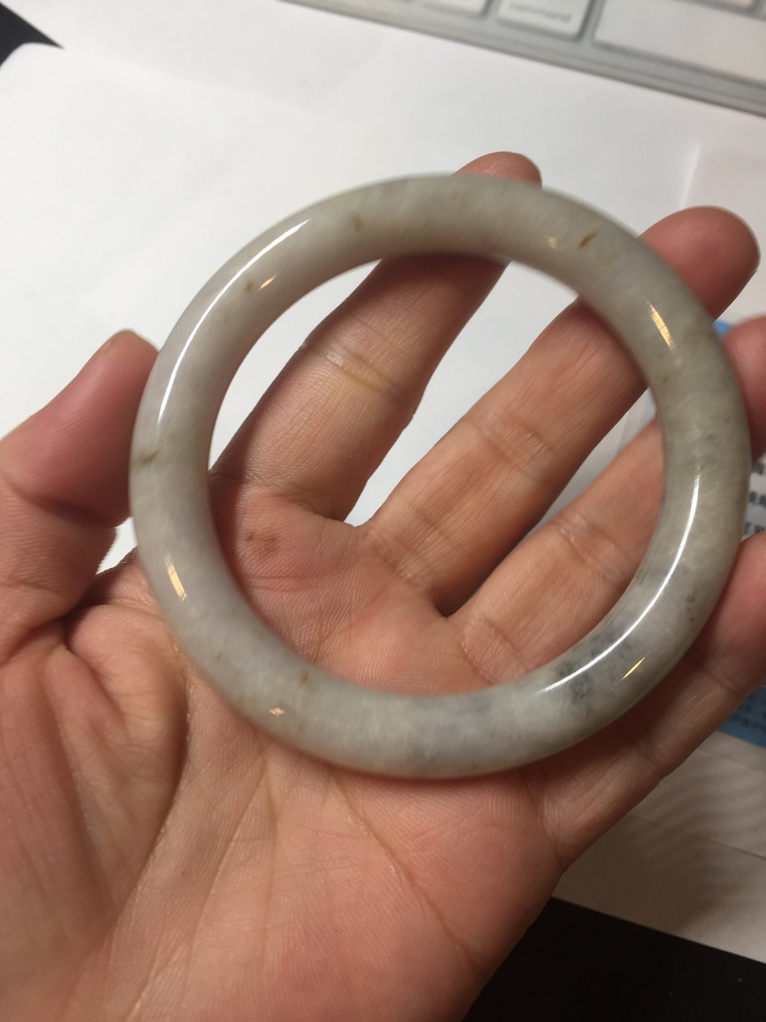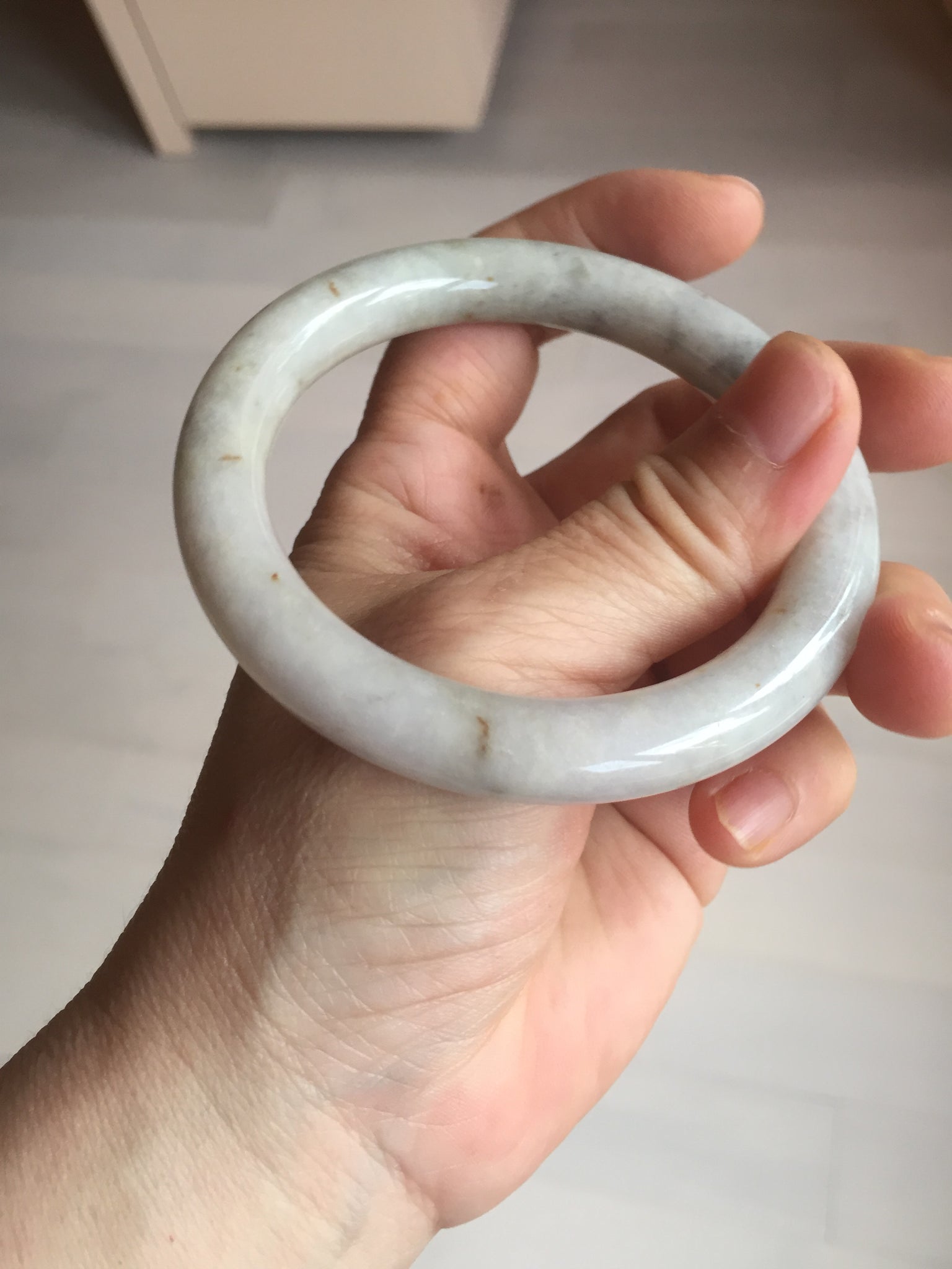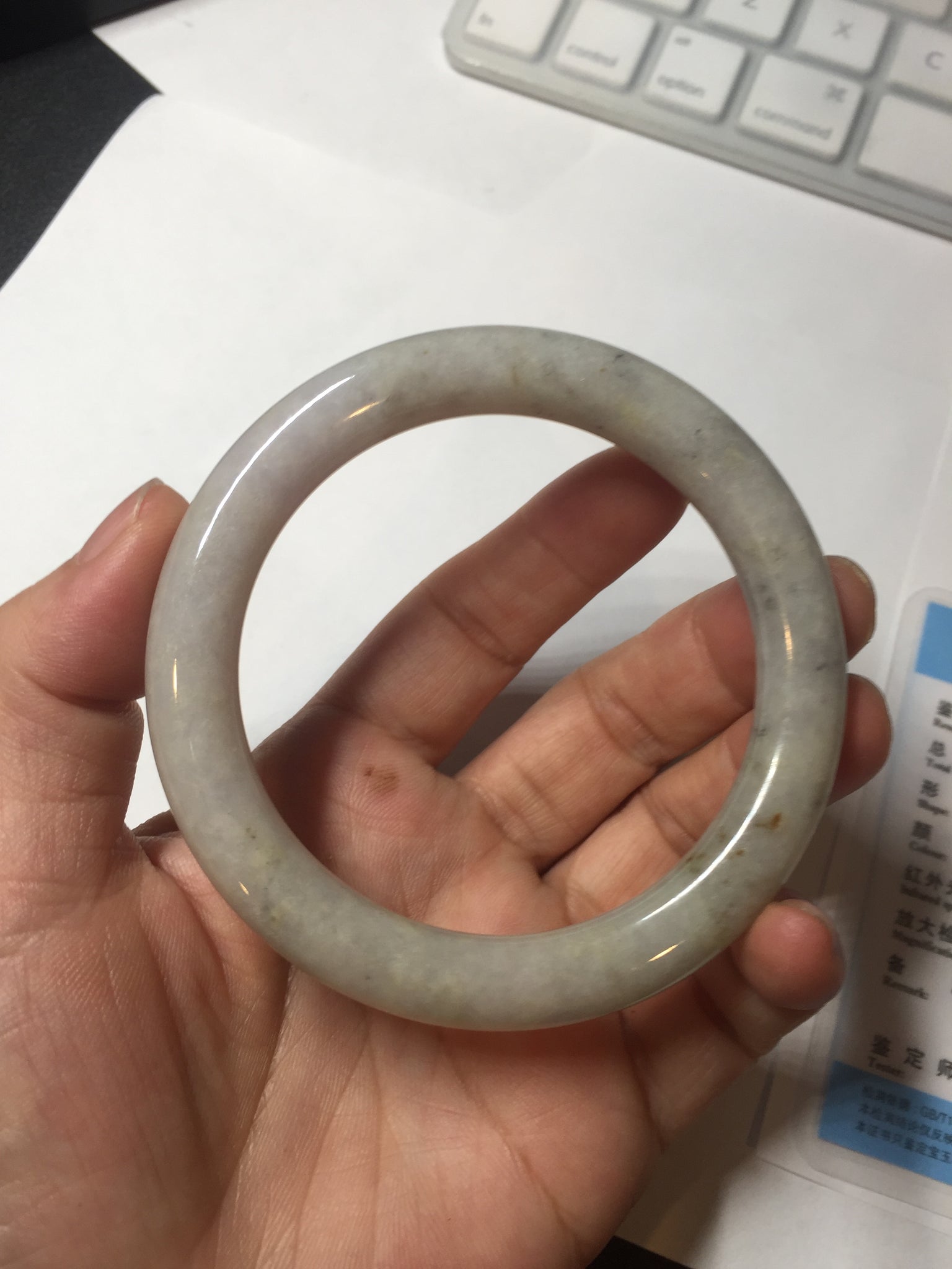 No cracks or hairlines. Some cotton areas, spots, and black/ dark areas. The purple is super light, way lighter than in the photos.
