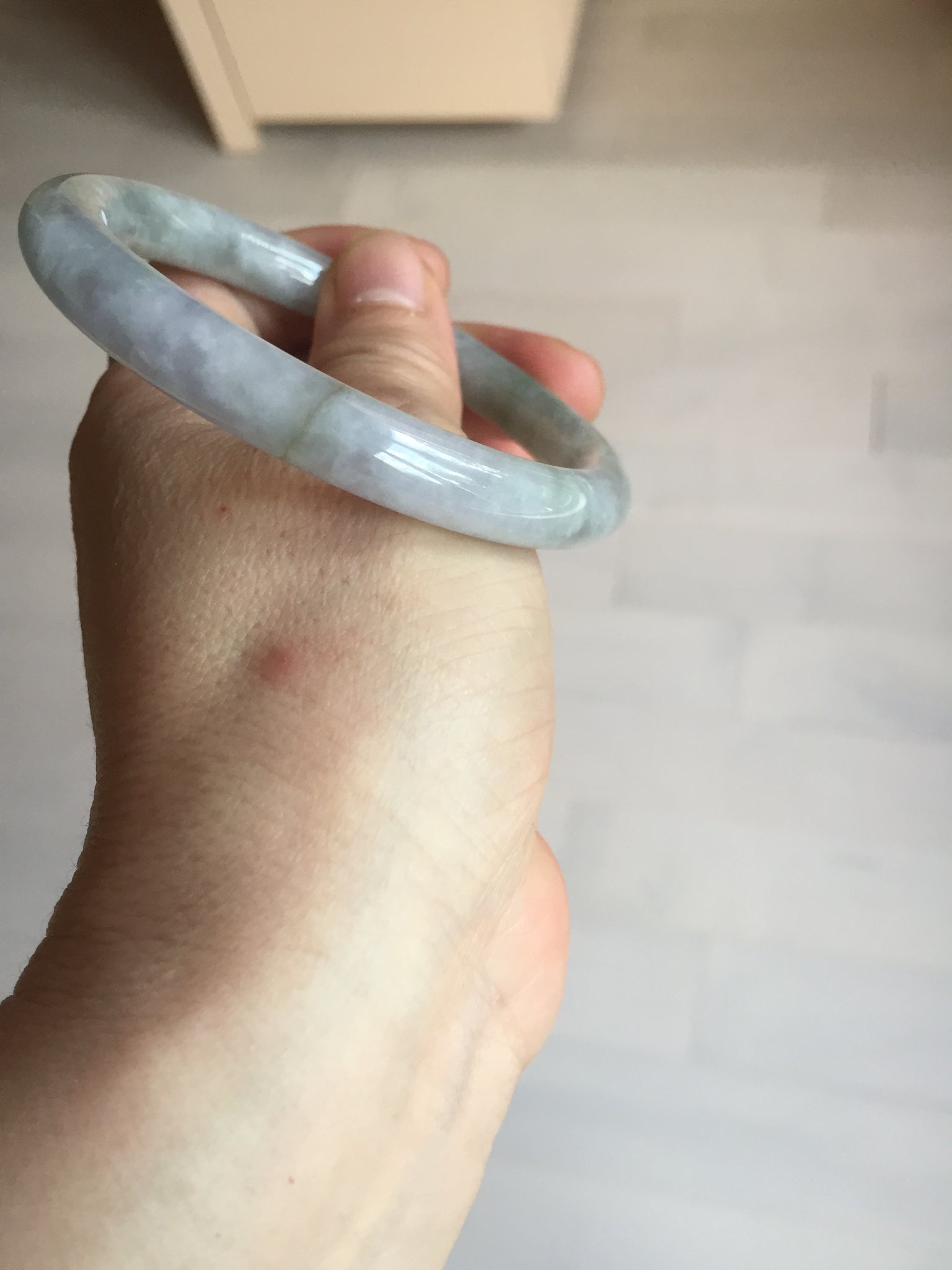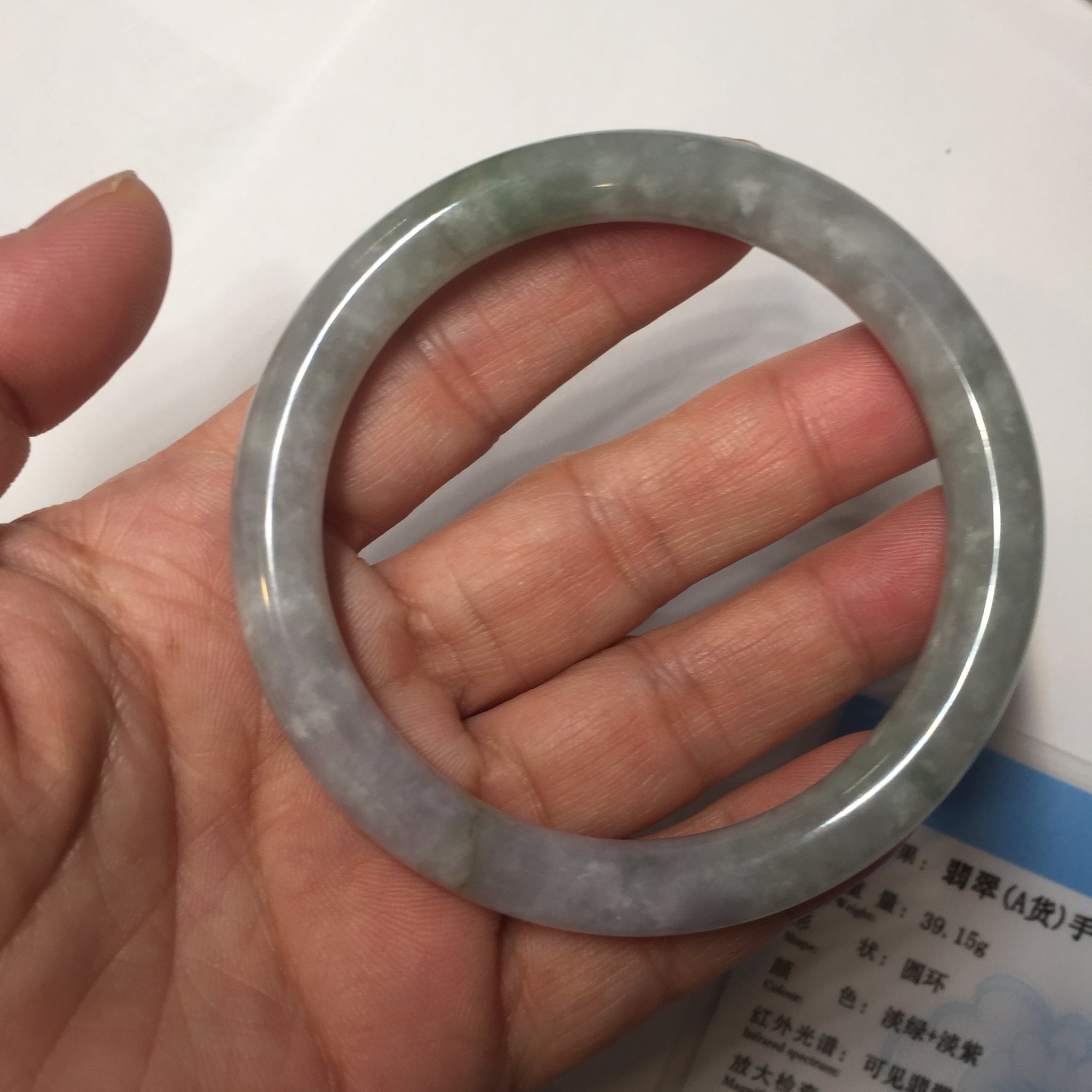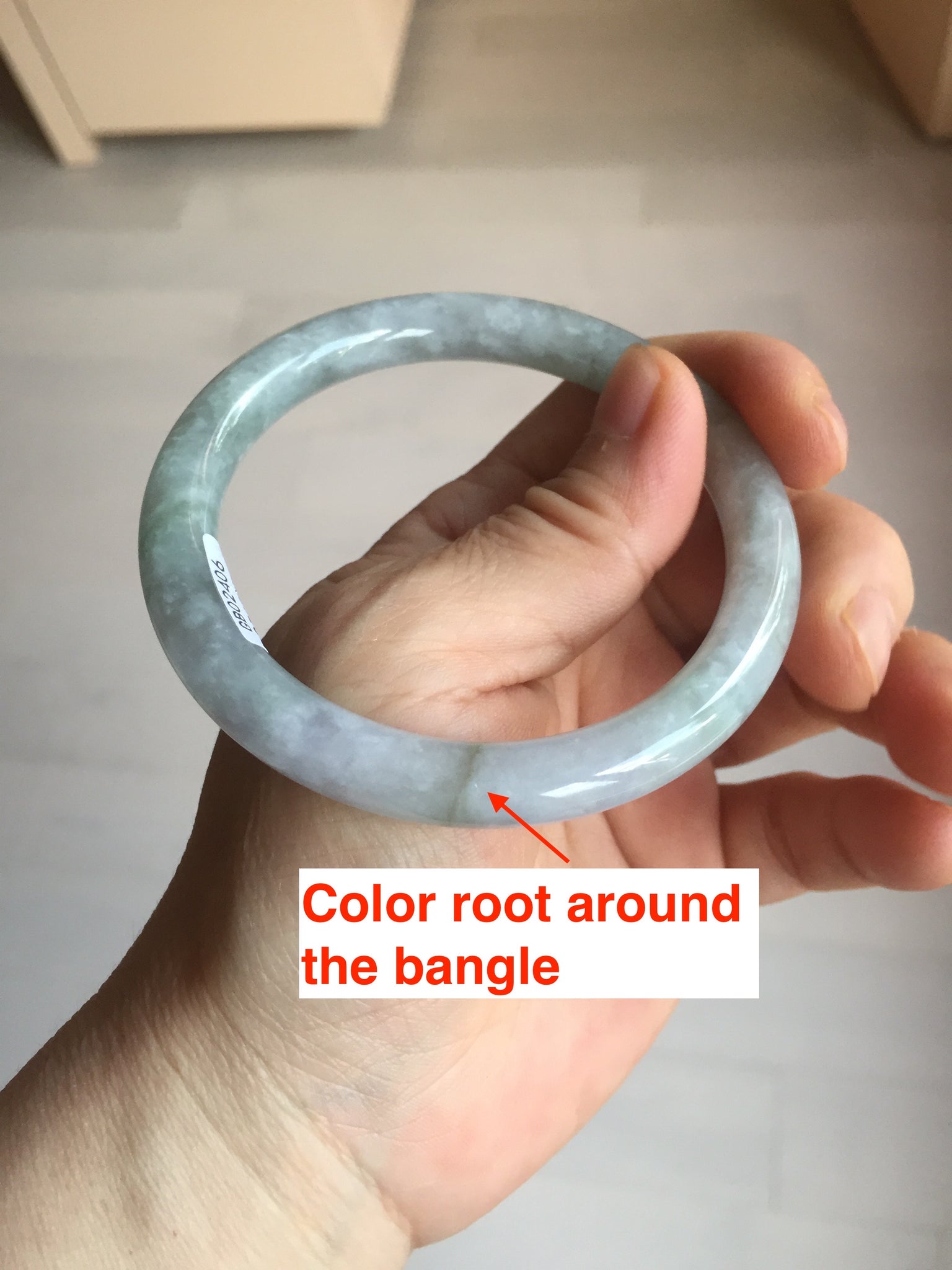 No crack. No hairline. One around the bangle color root. The bangle is solid. Quite a lot of cotton areas and spots. The purple is lighter than in the photos. Has some gray color.