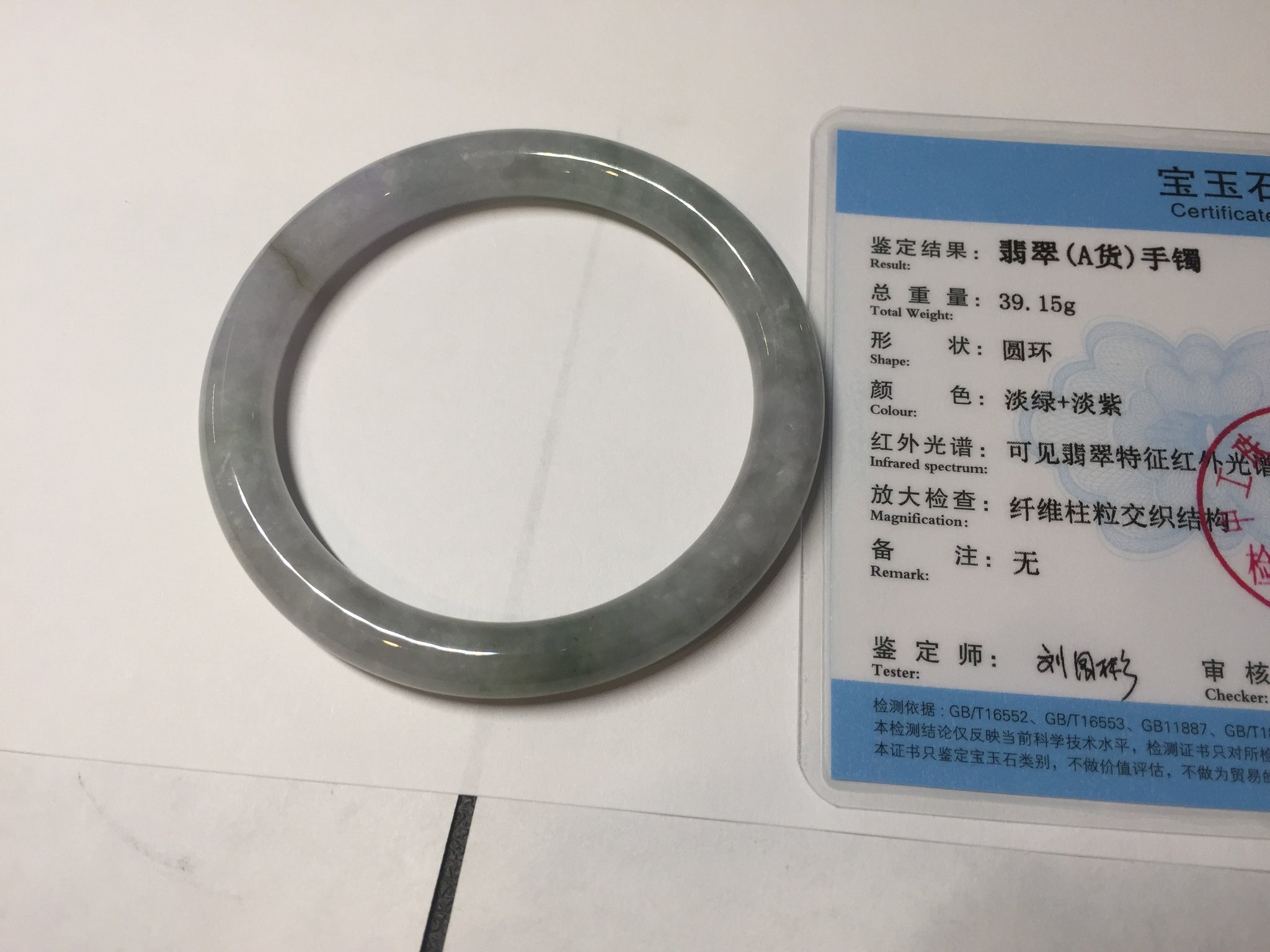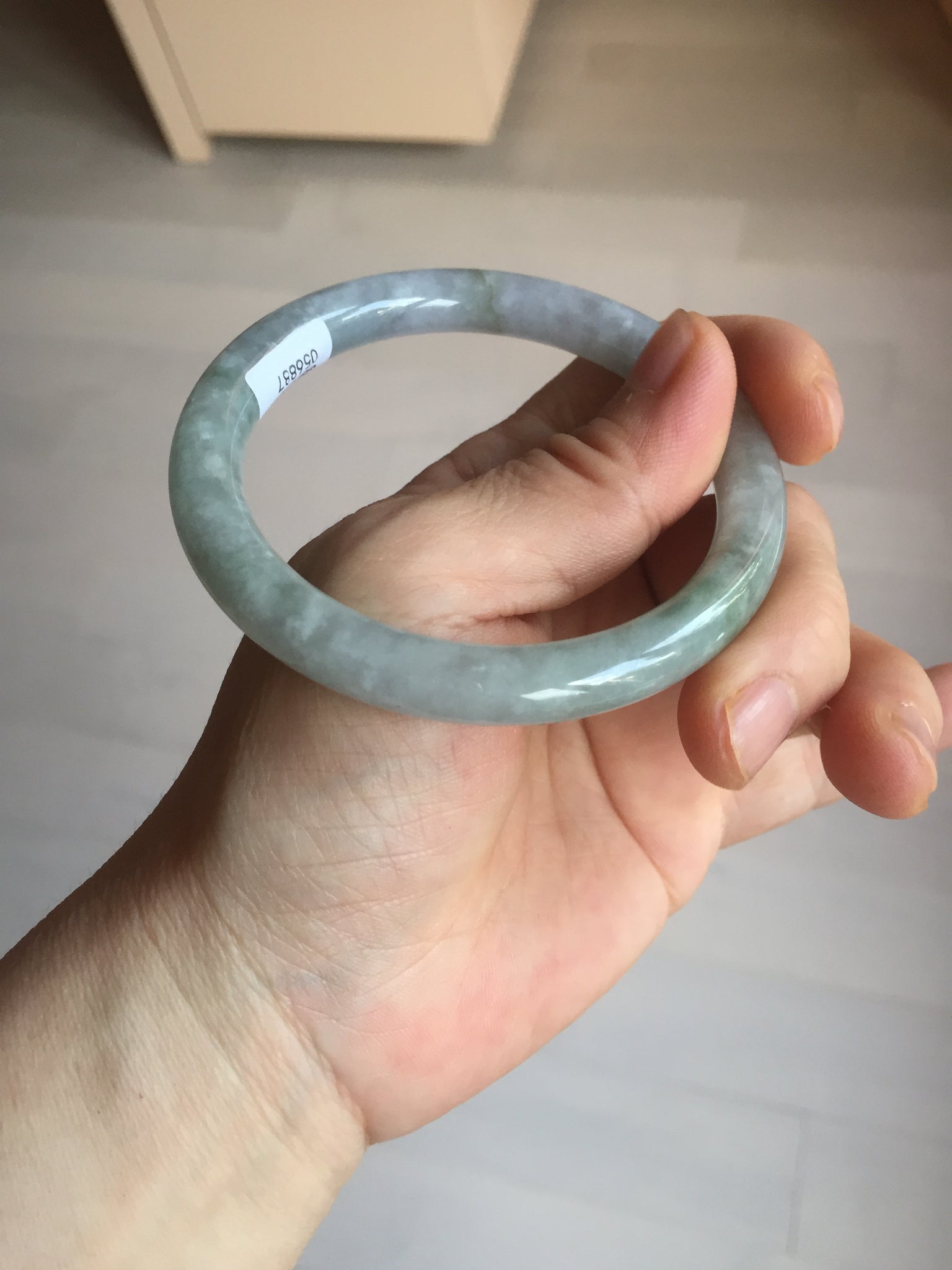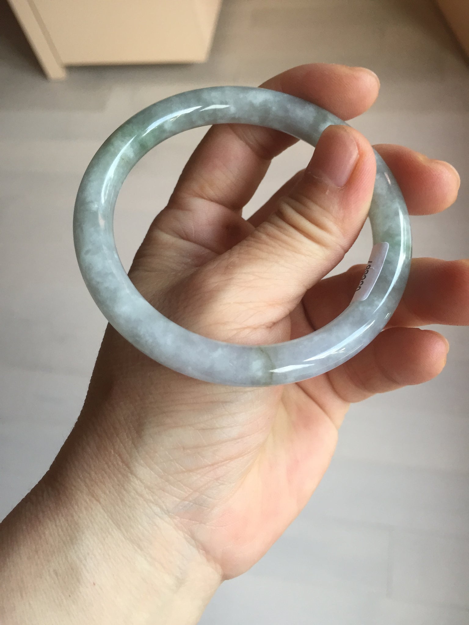 No crack. No hairline. One around the bangle color root. The bangle is solid. Quite a lot of cotton areas and spots. The purple is lighter than in the photos. Has some gray color.