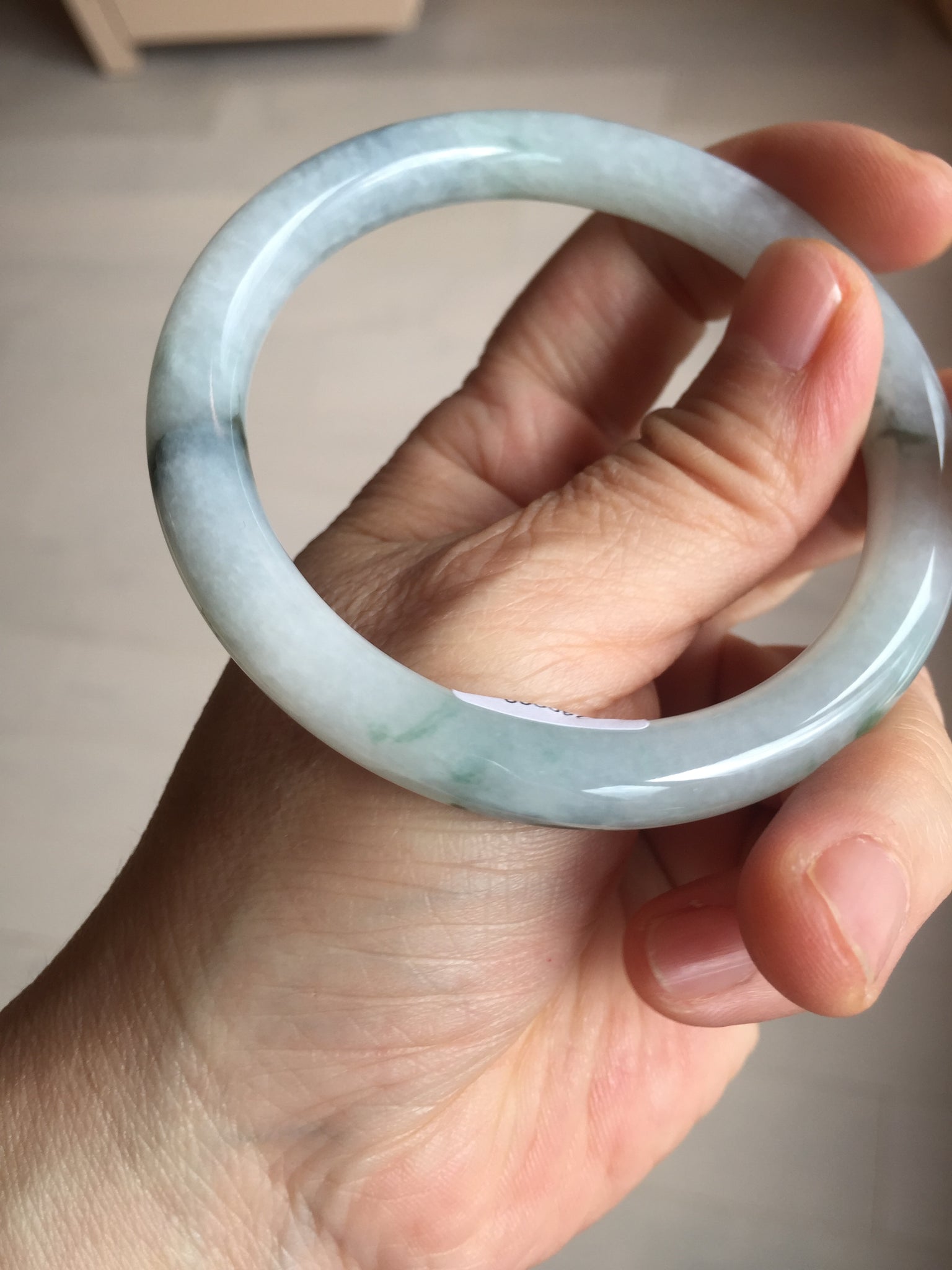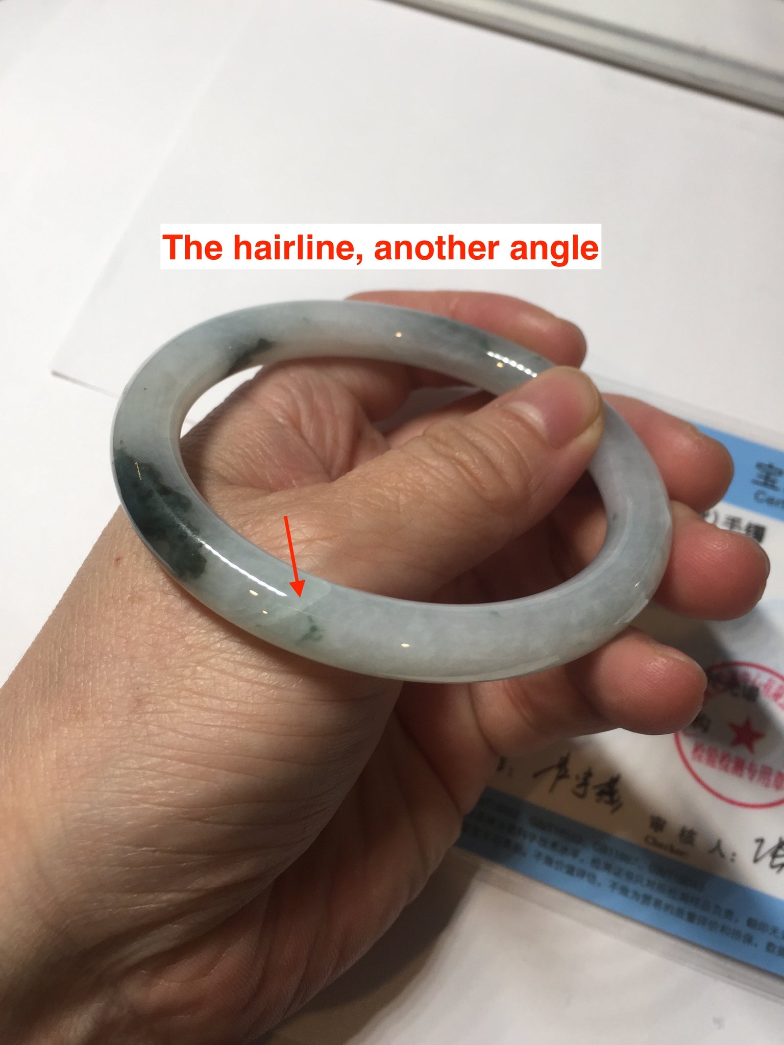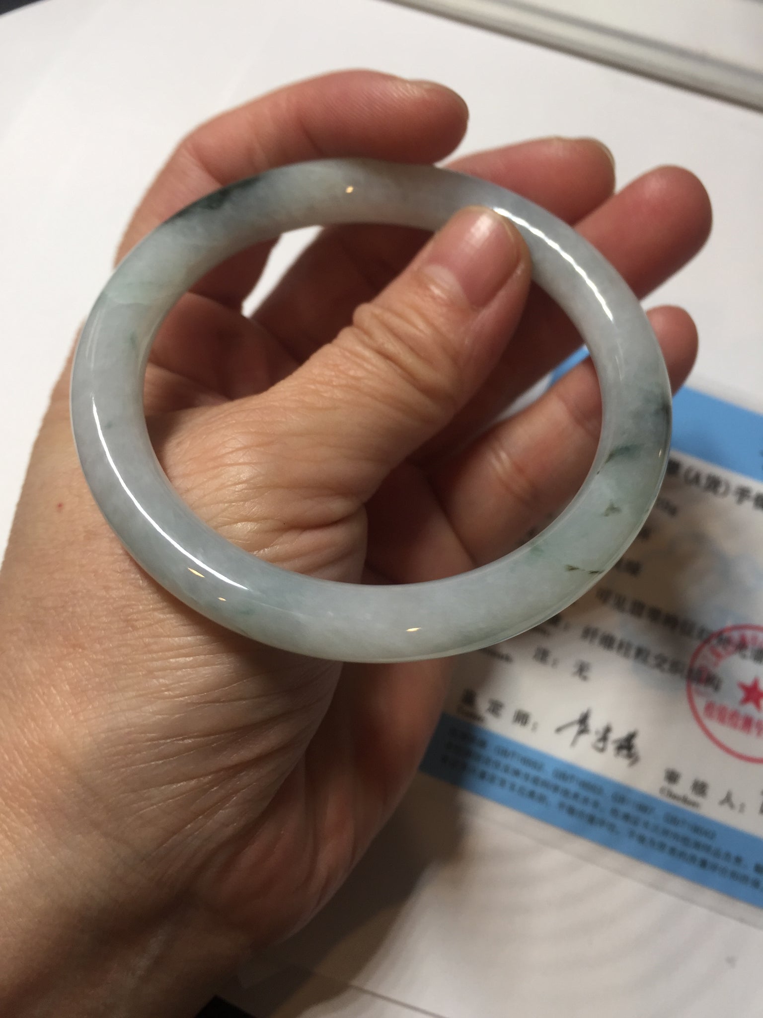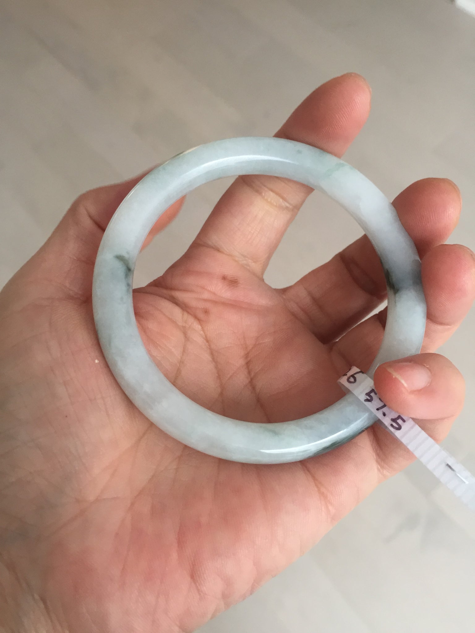 57.5mm Certified Type A 100% Natural icy watery light green with green floating flowers round cut Jadeite Jade bangle AM95-2726